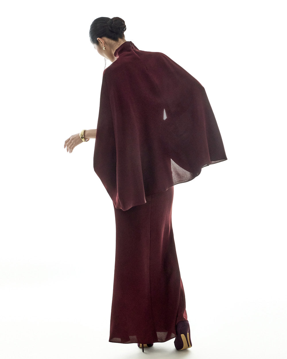 Model is 173cm tall and wearing size S in the BURGUNDY color.