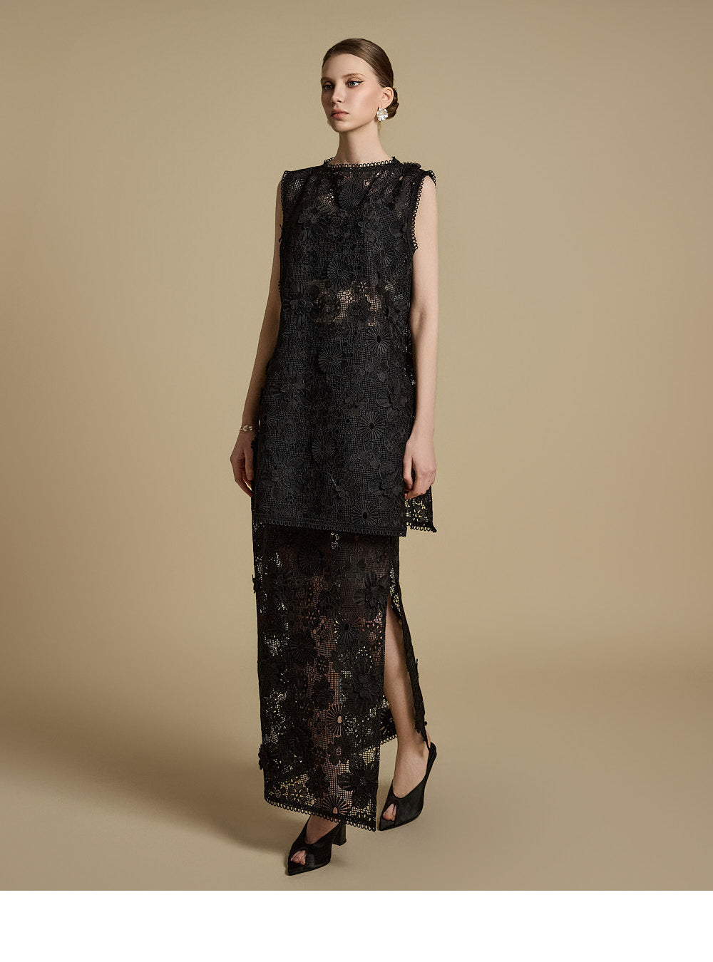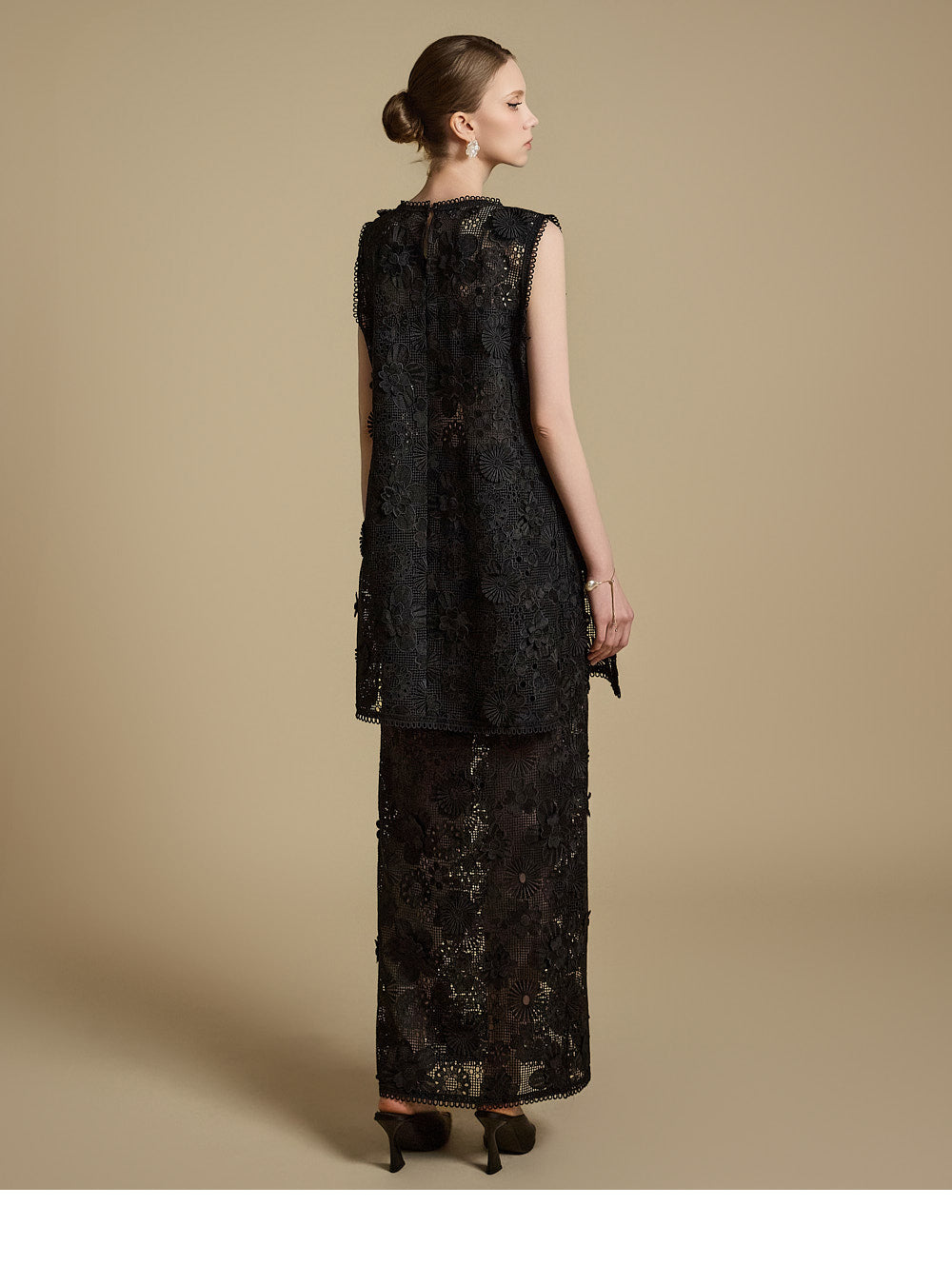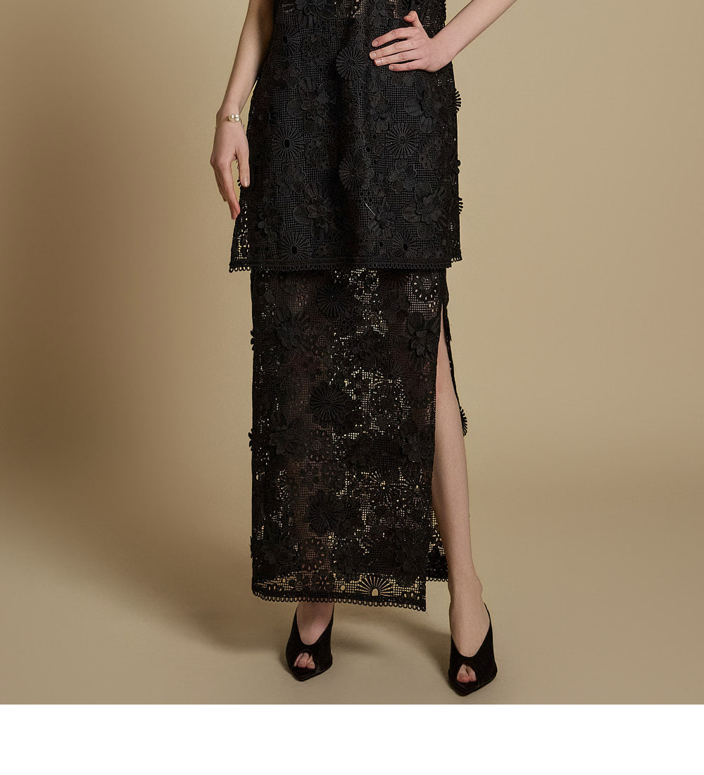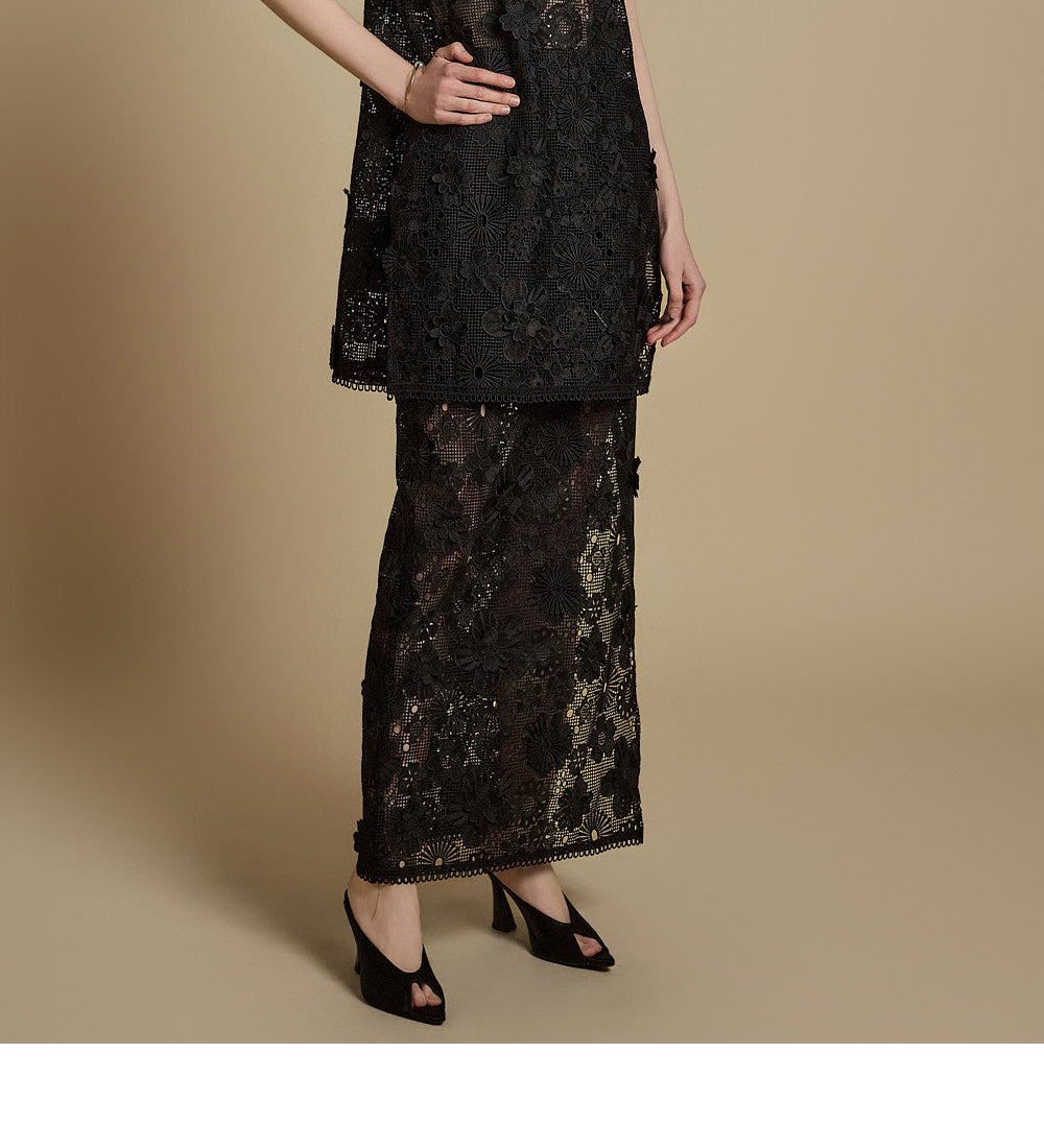 Delicate lace embroidery throughout adds a luxurious and graceful accent,