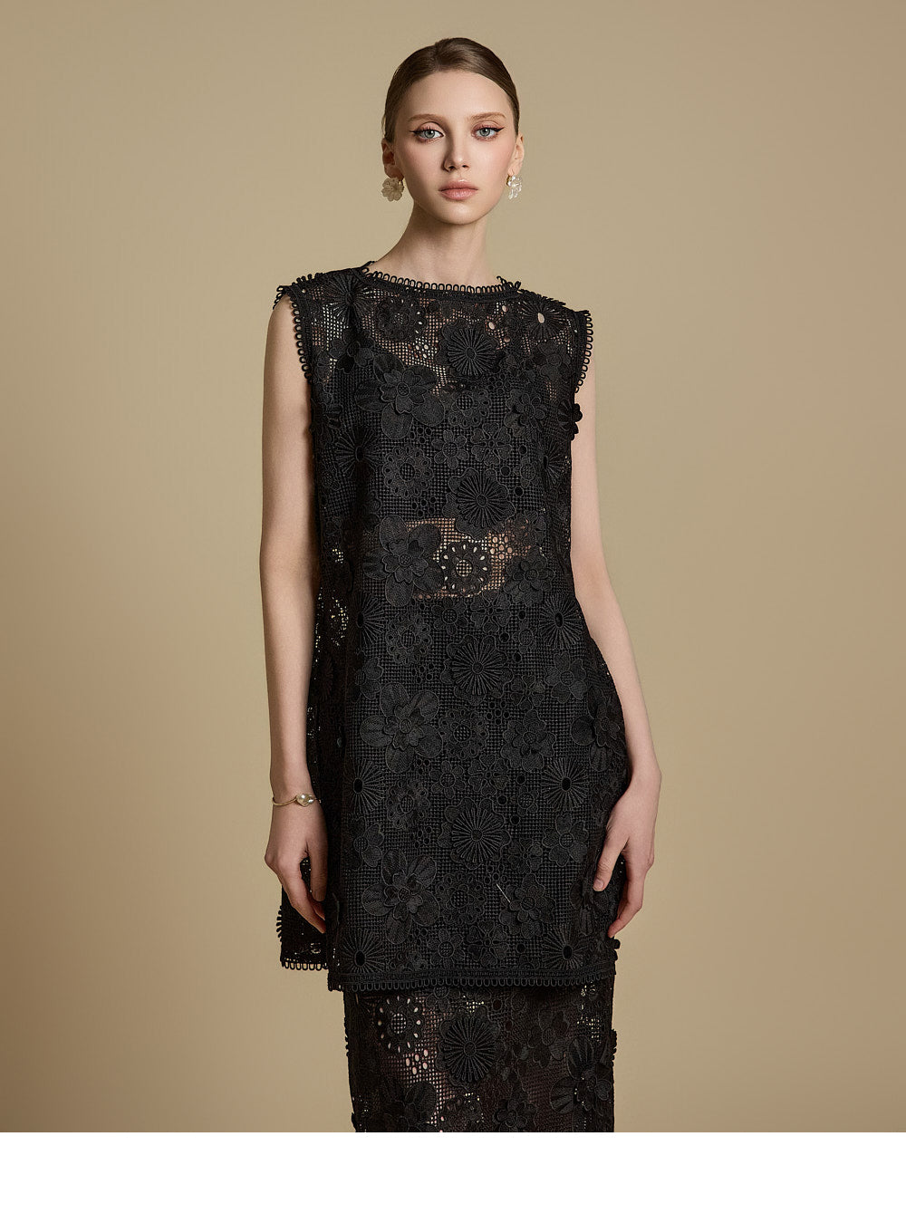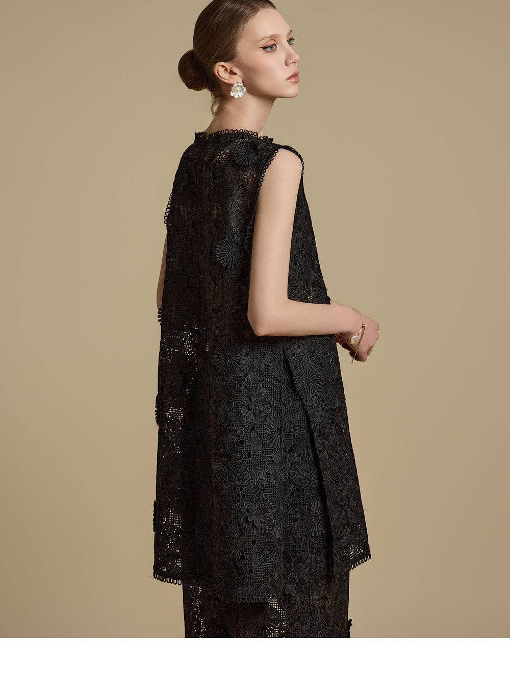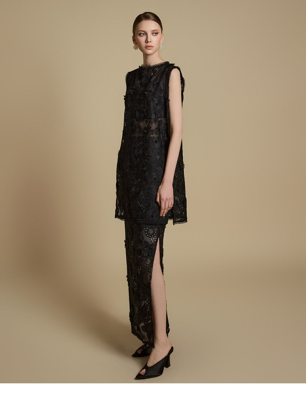 Delicate lace embroidery throughout adds a luxurious and graceful accent,