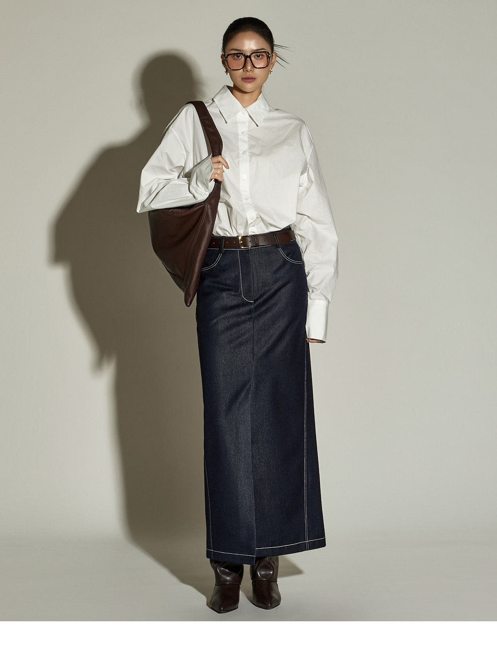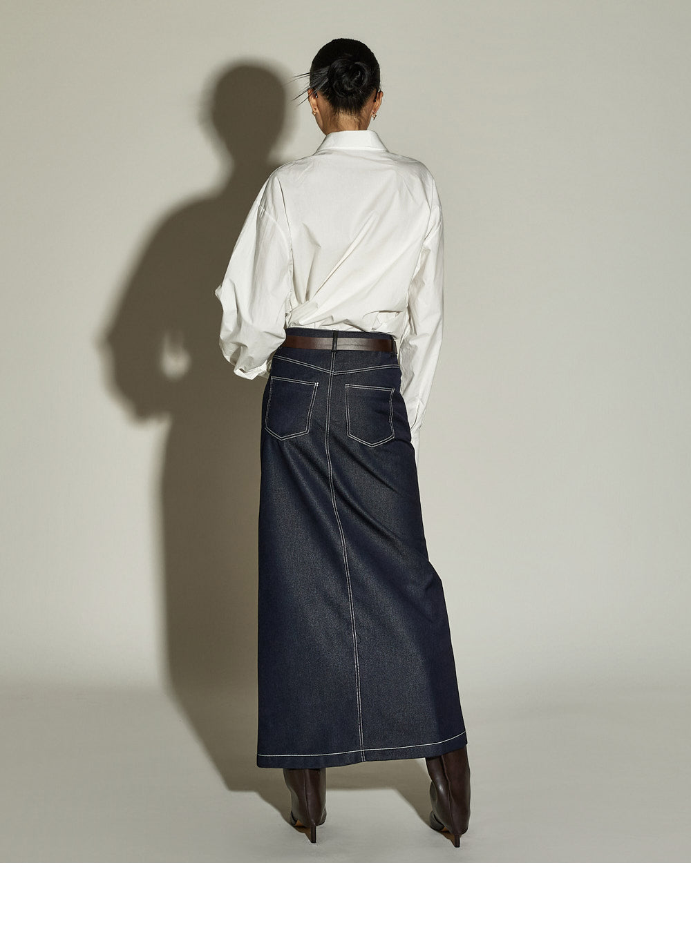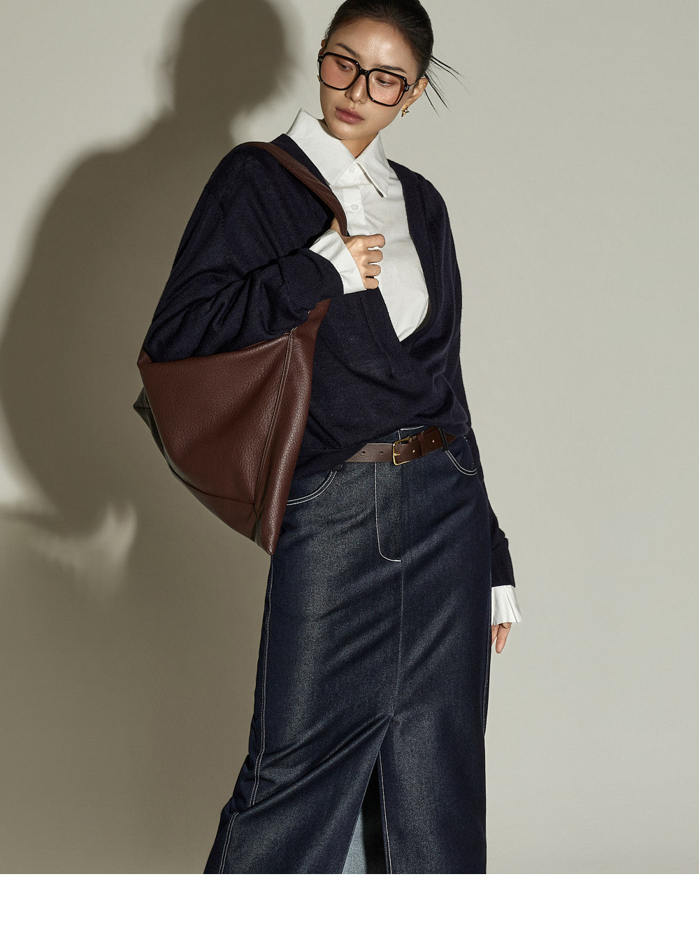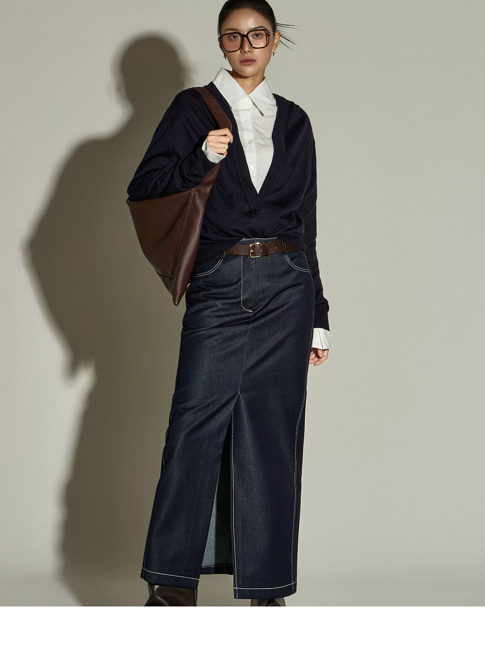 The 171cm model is wearing size ONE in DEEP BLUE.