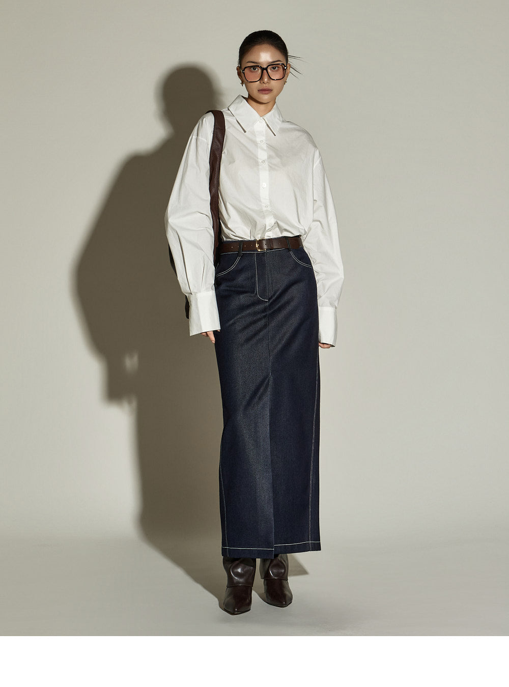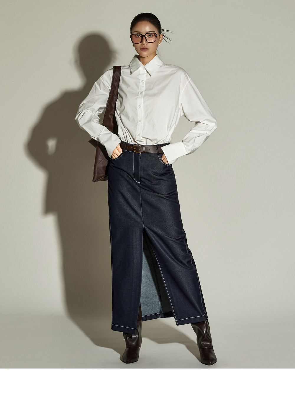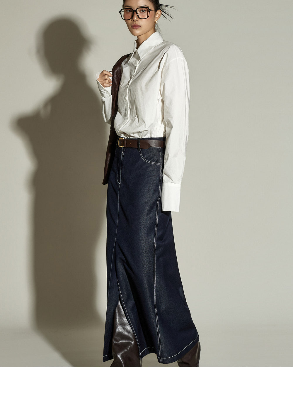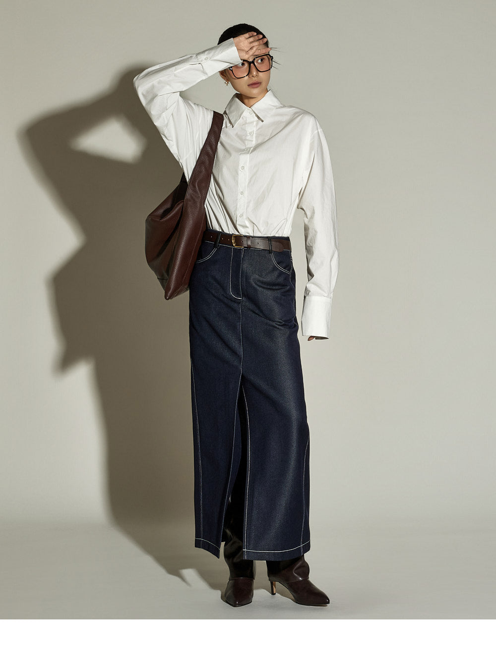 The 171cm model is wearing size ONE in DEEP BLUE.