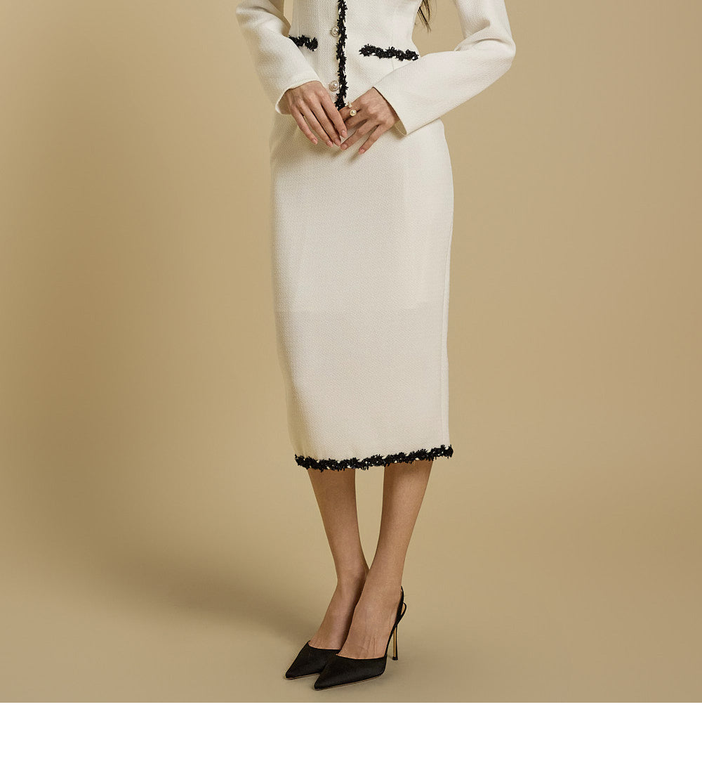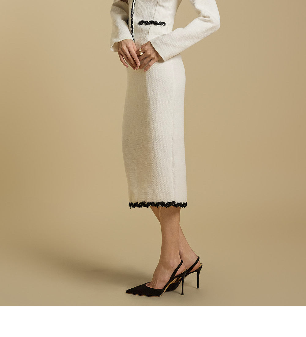 The skirt features a classic H-line silhouette