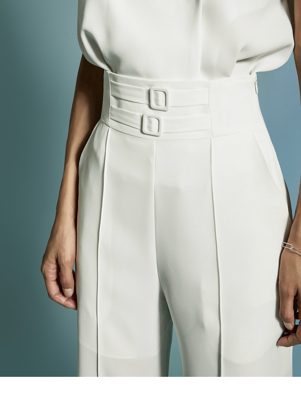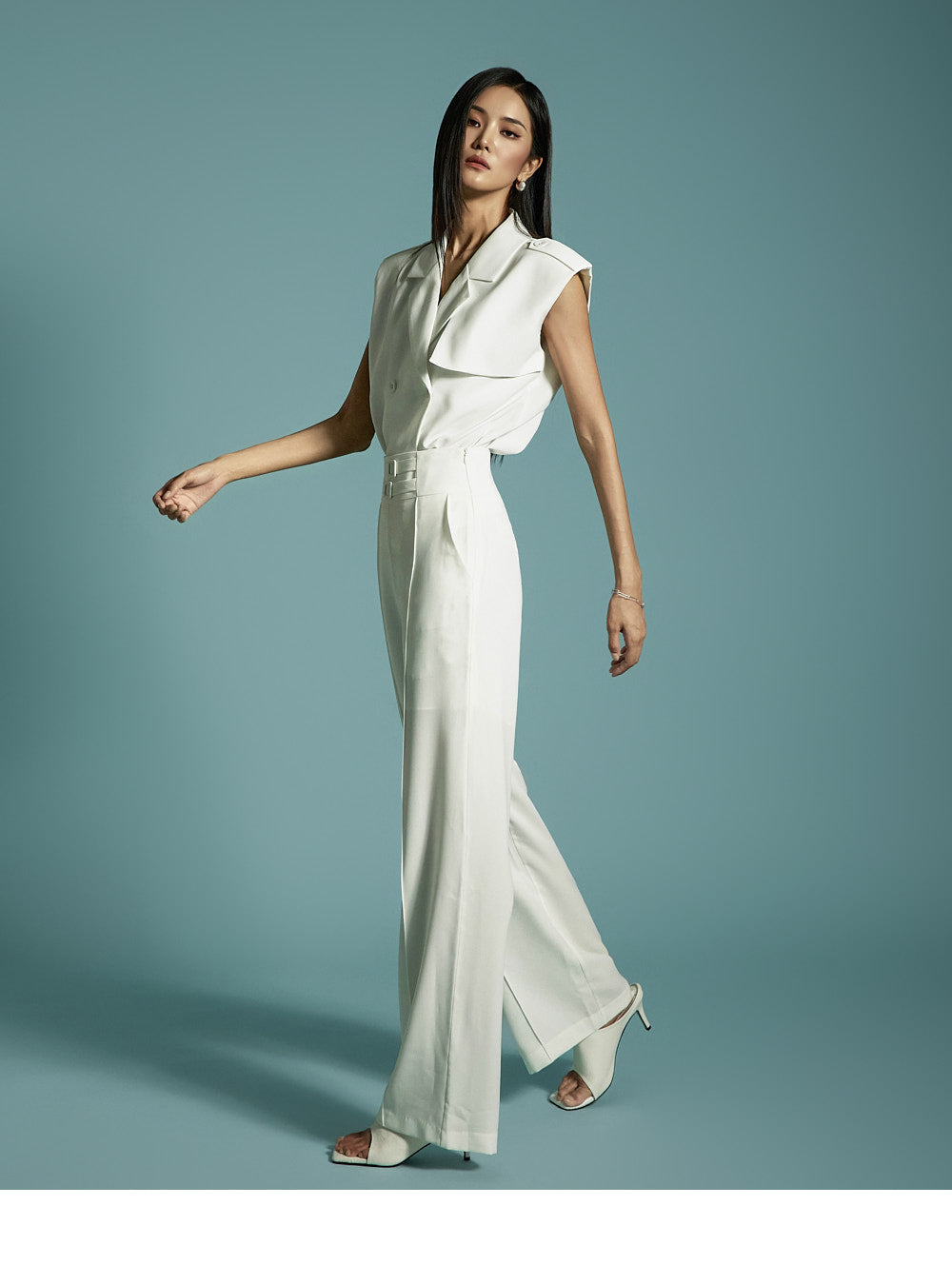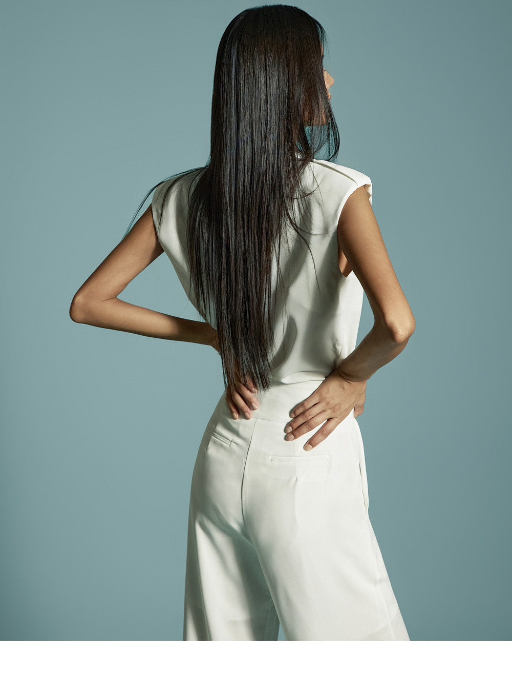 The model is 173cm tall and wears a ONE size top and S size trousers in White.