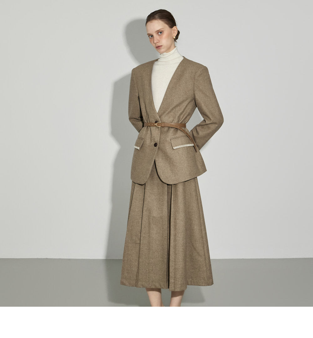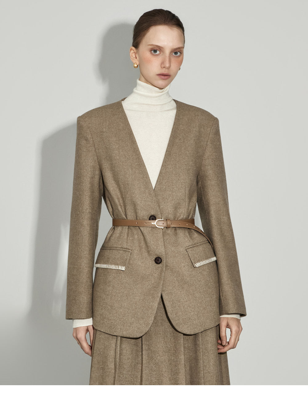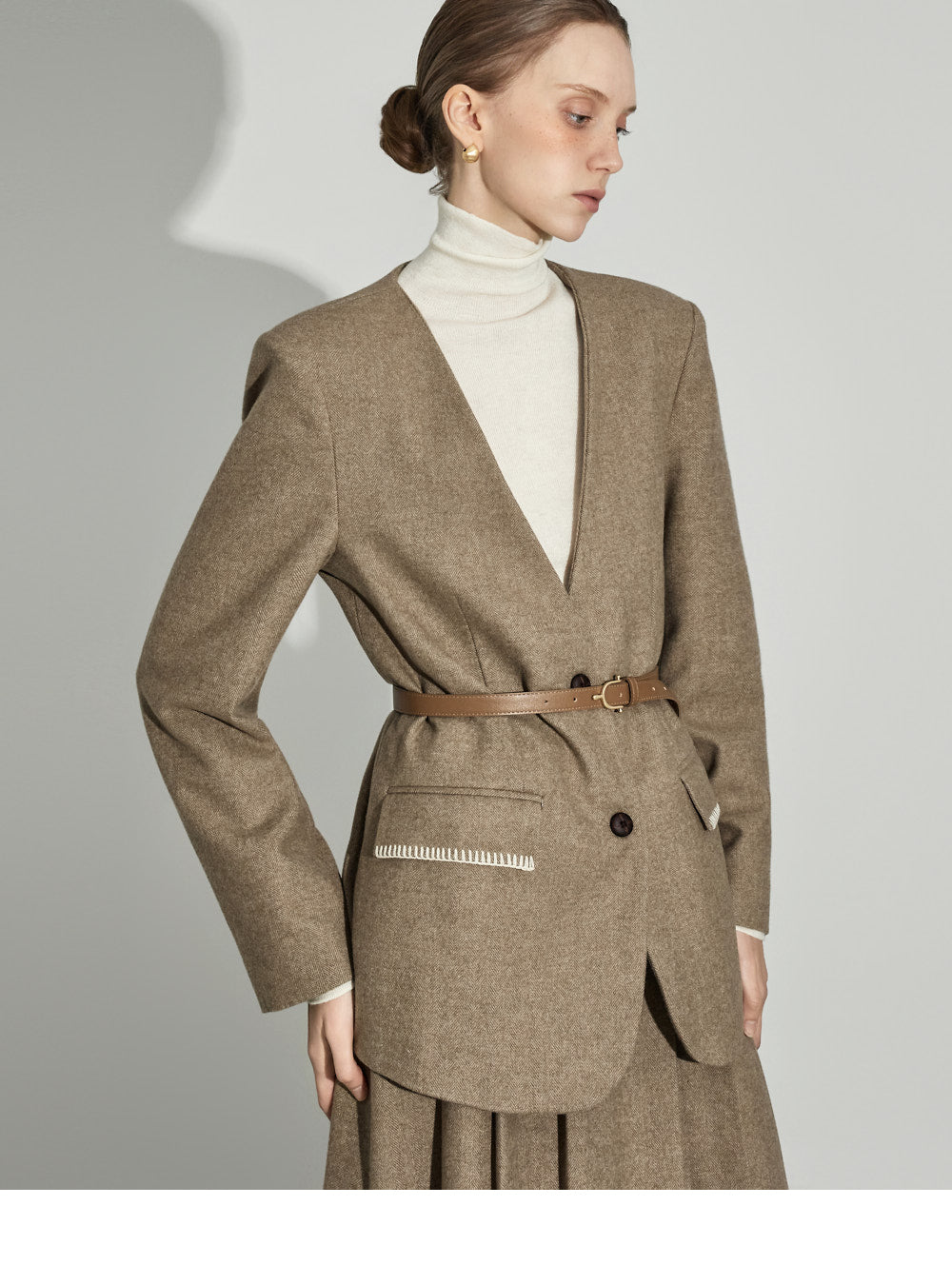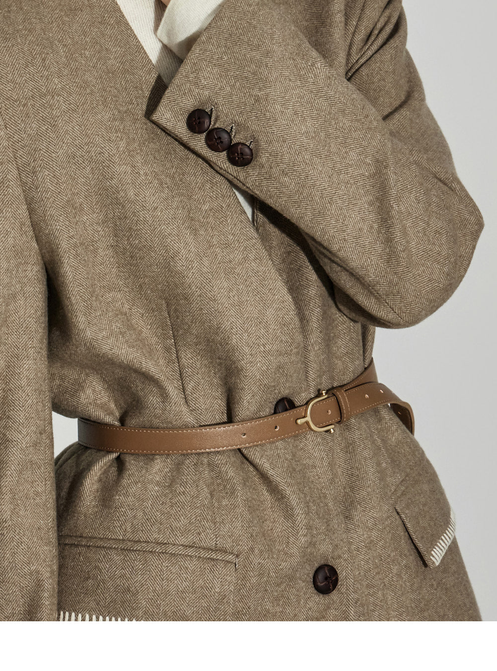 The jacket features a herringbone pattern for a sophisticated and sophisticated look.