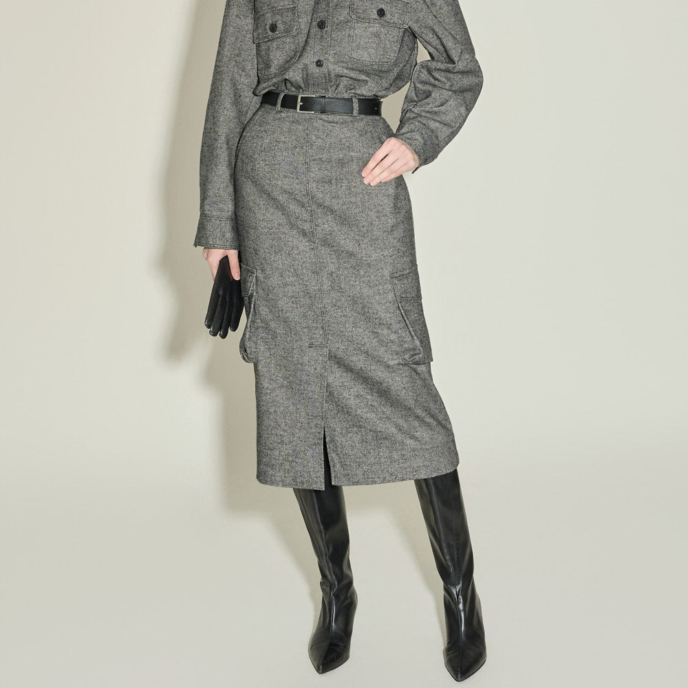 The skirt features a clean, H-line silhouette,