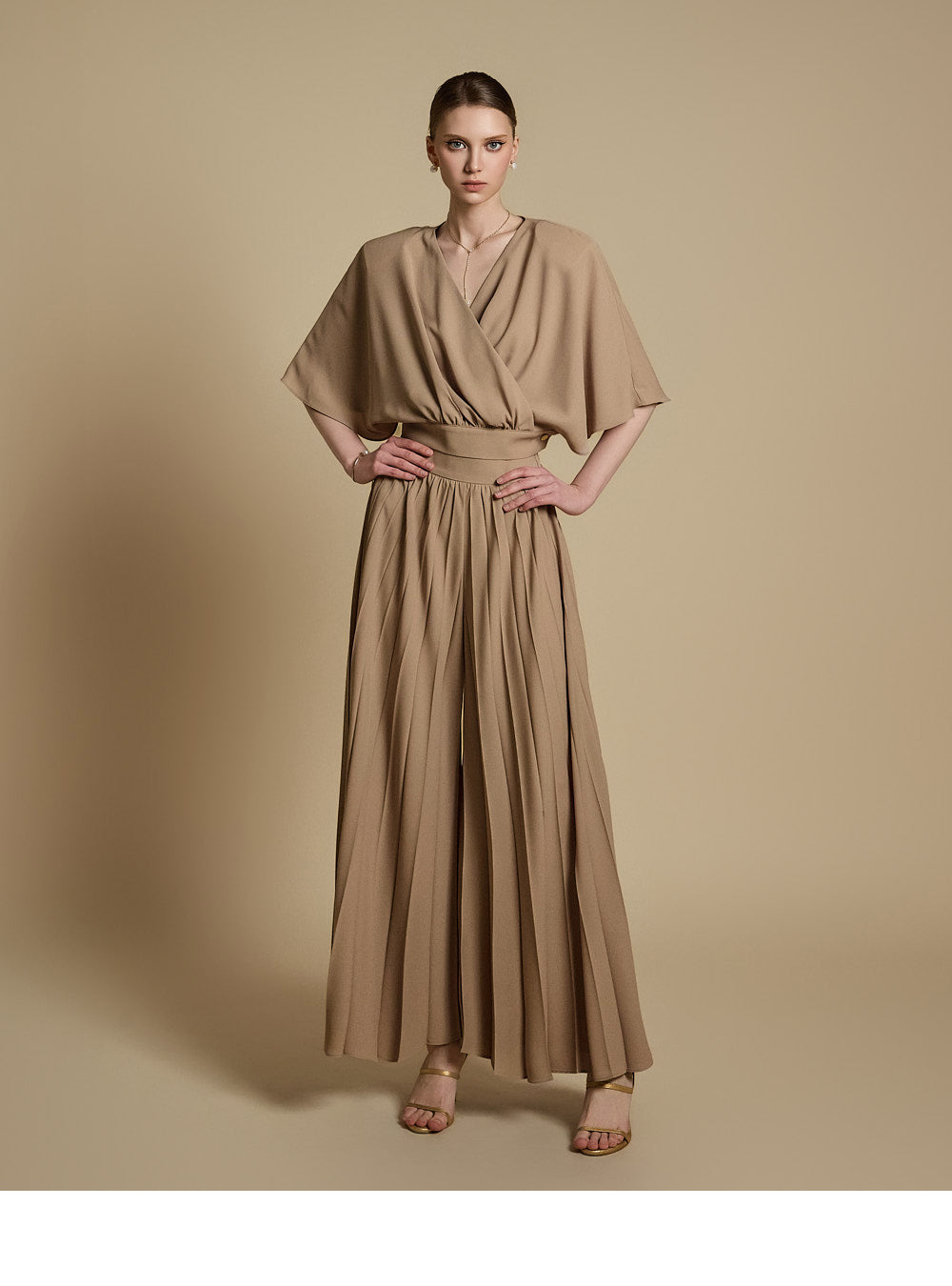 モデルの身長は174cmで、ベージュのONEサイズを着用しています。