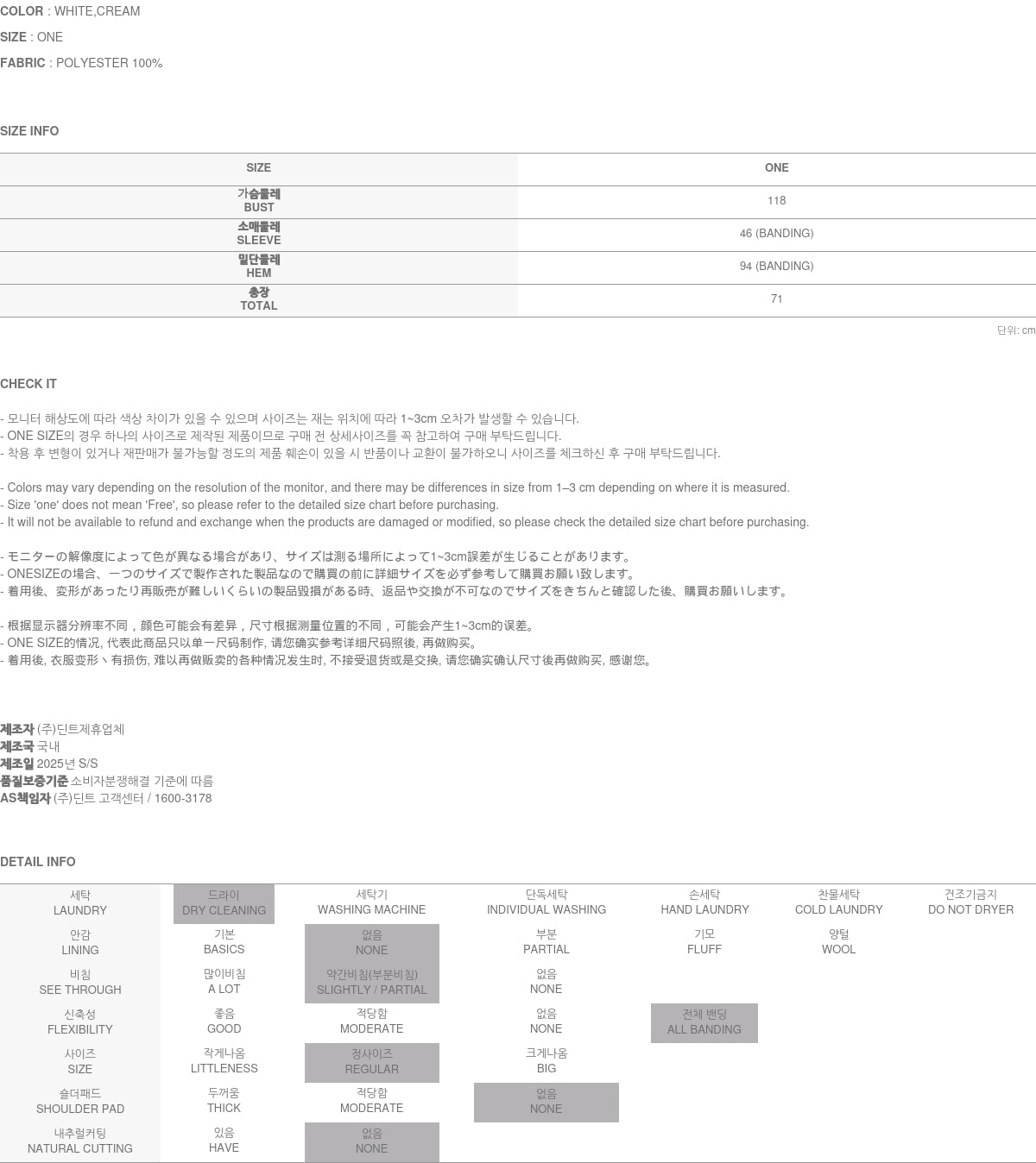 モデルの身長は171cm、ホワイトのワンサイズを着用しています。