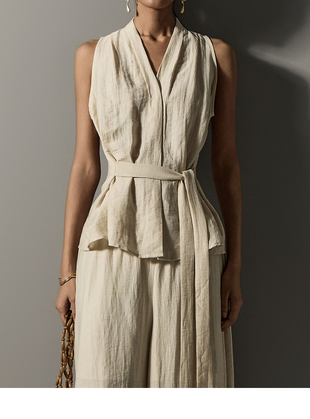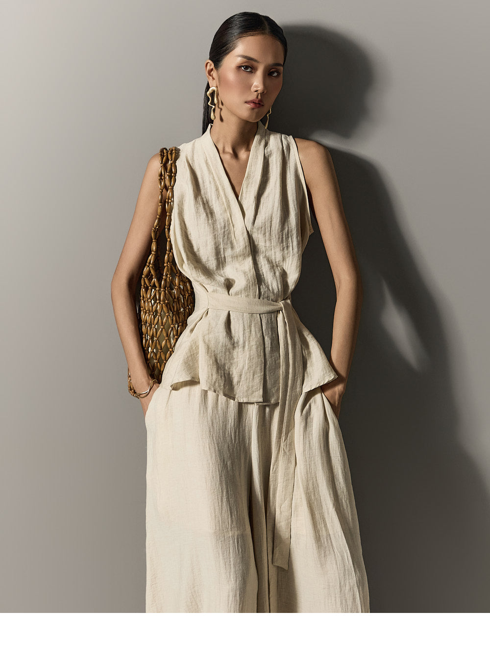 エレガントで洗練された雰囲気を醸し出すラップブラウス。