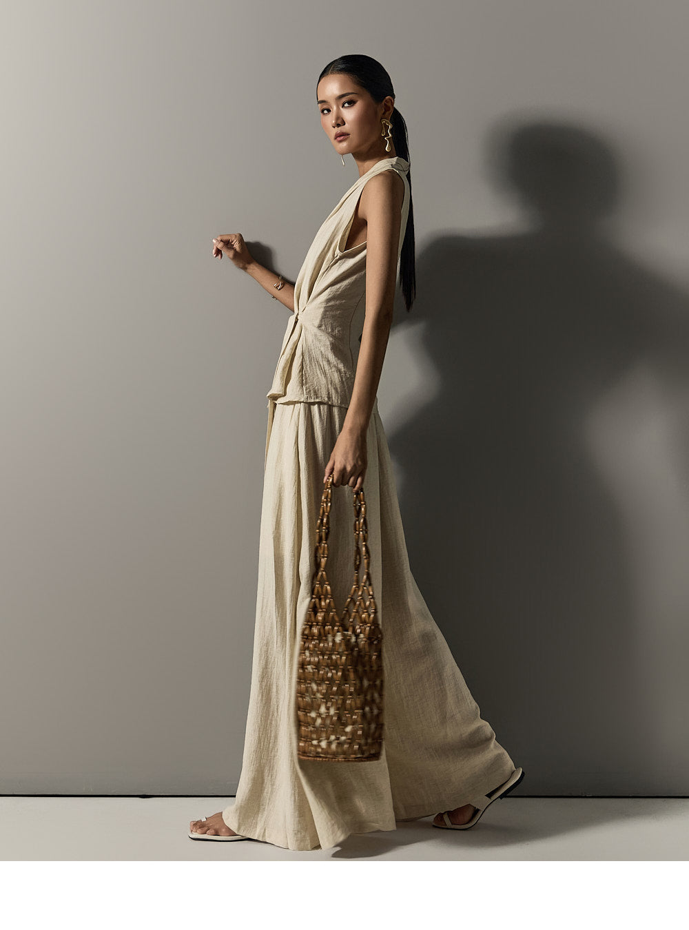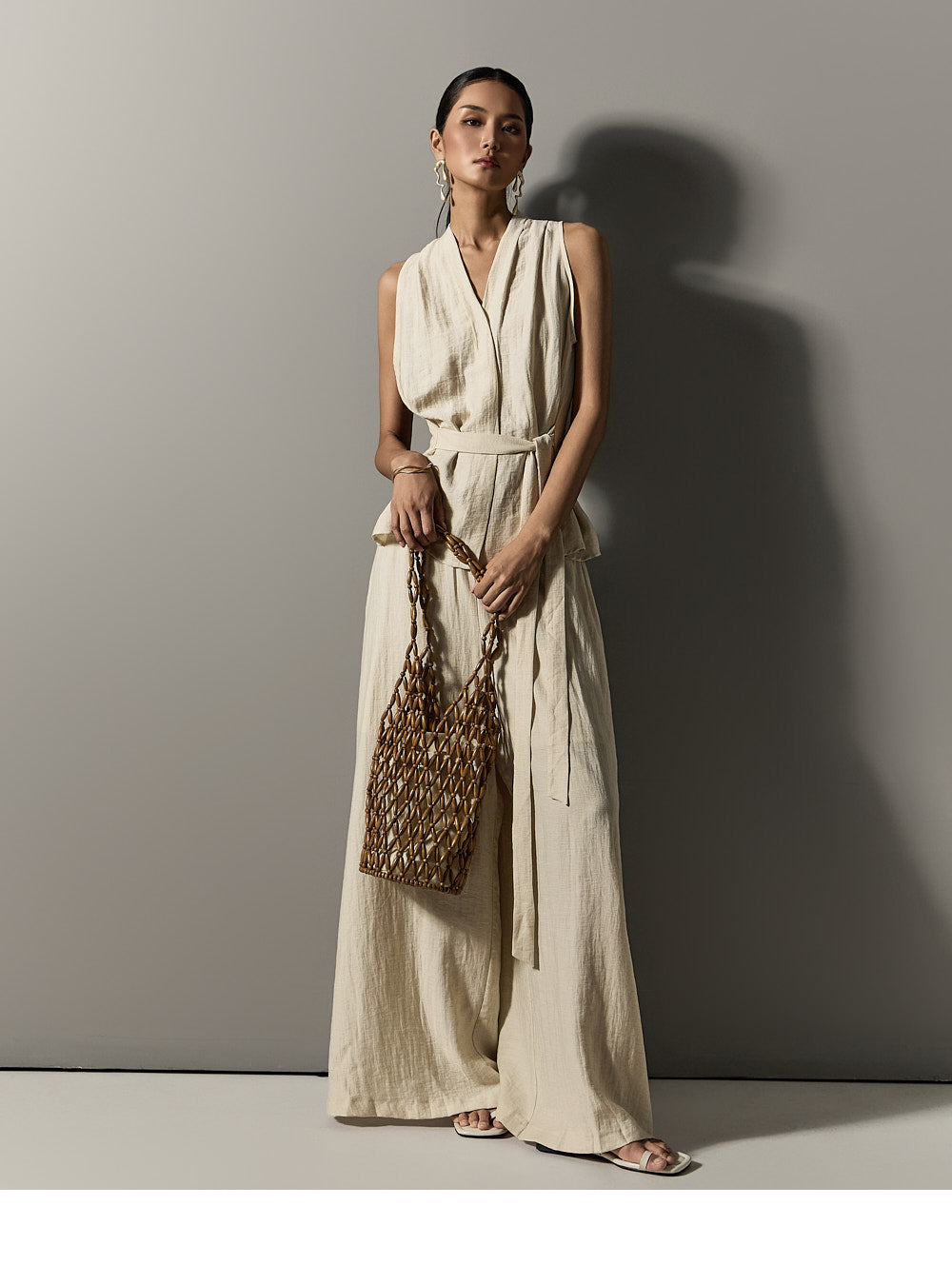 フロントラップ風のデザインが女性らしいシルエットを演出し、
