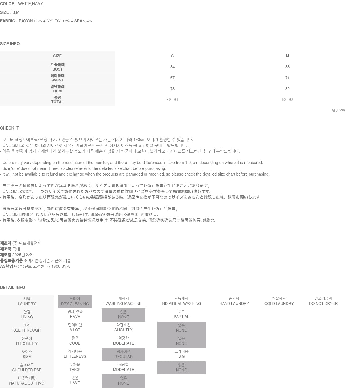 Model is 174CM tall, wearing size S in white.