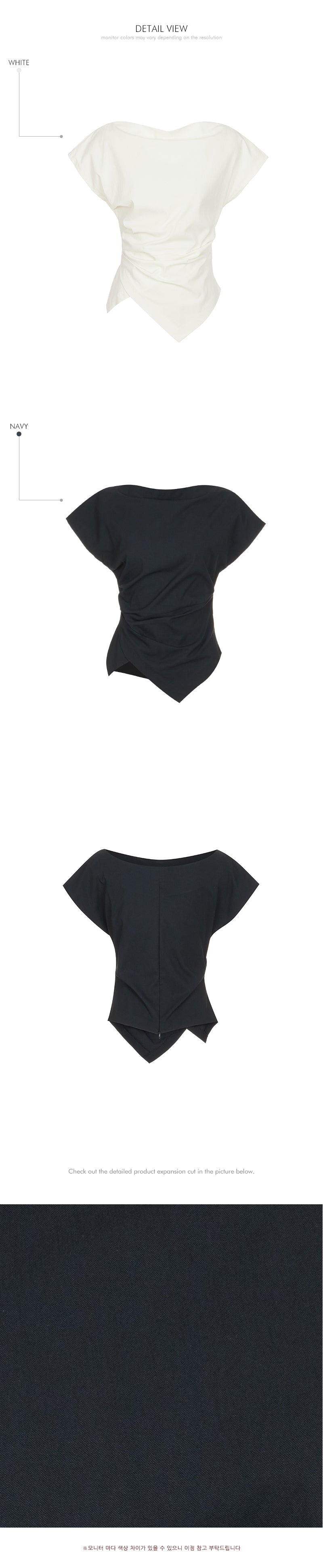 This is an asymmetric shirring blouse perfect for daily wear.