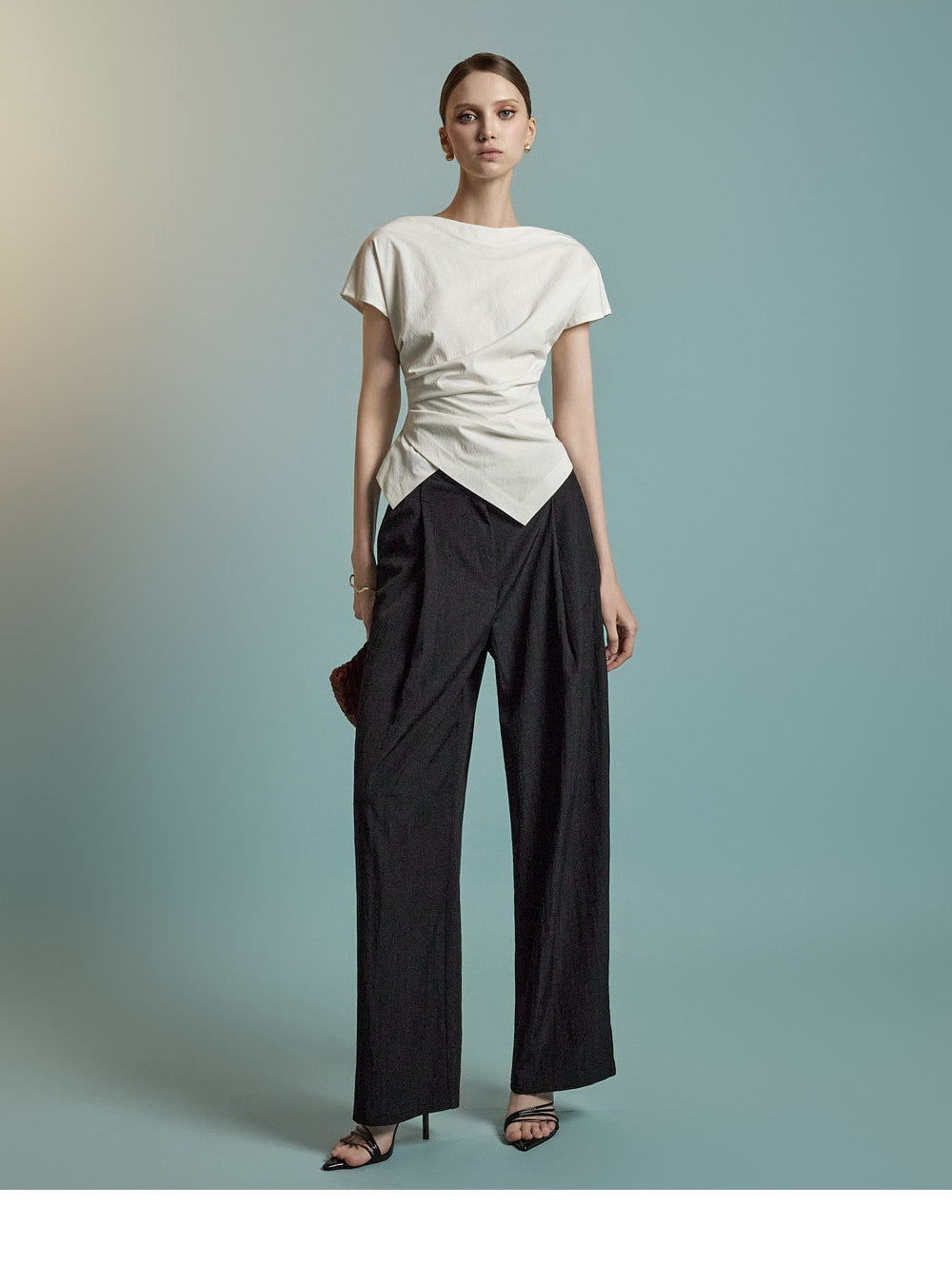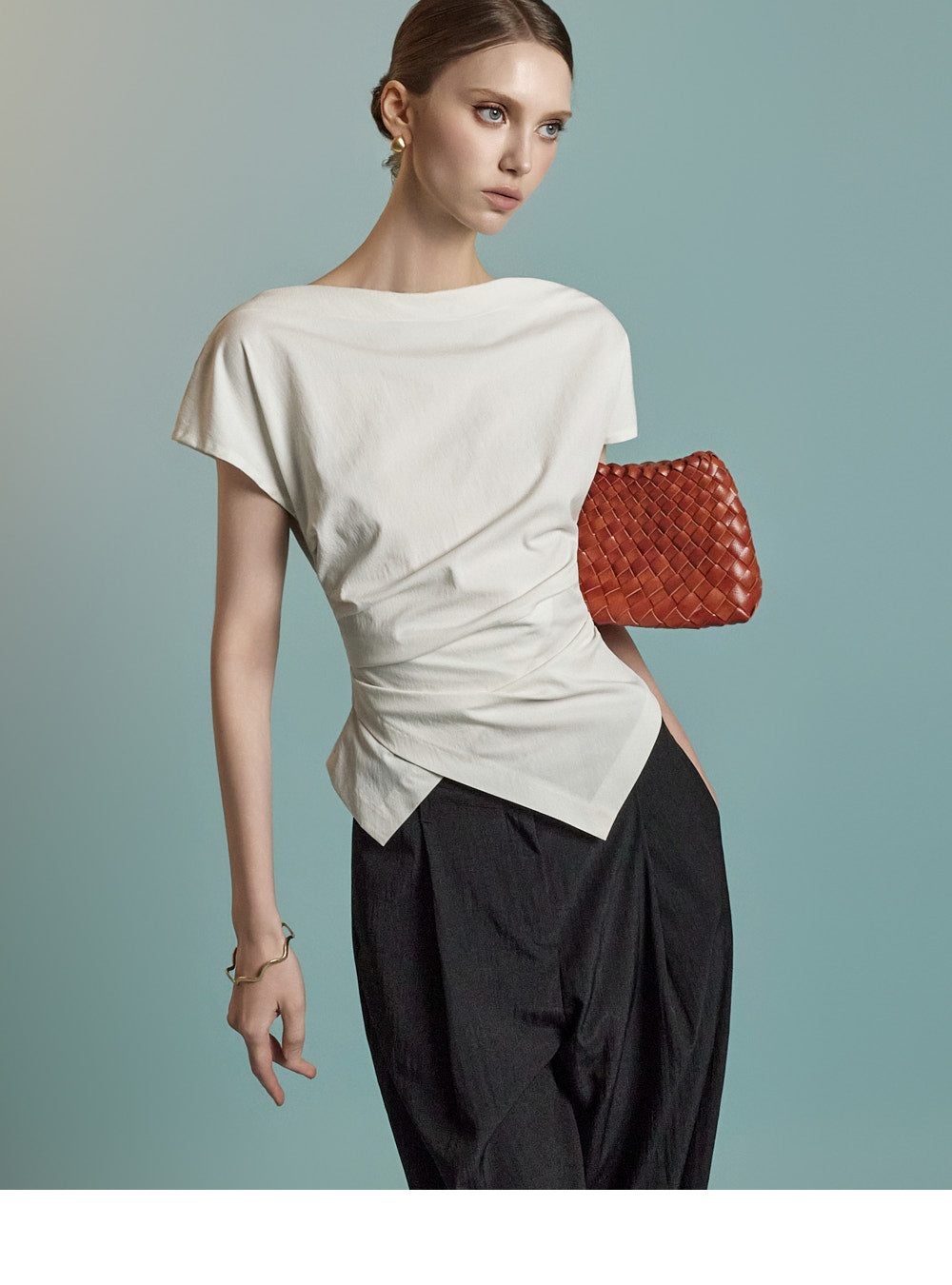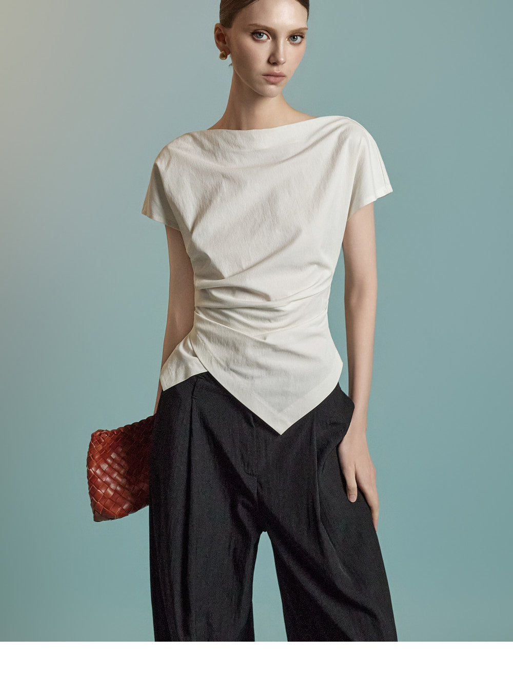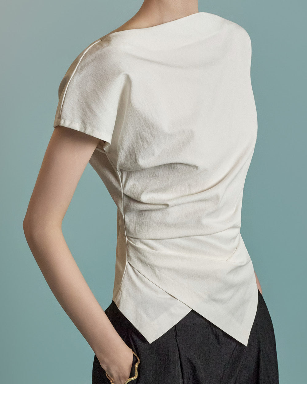 B3126 Asymmetric Shirring Blouse
