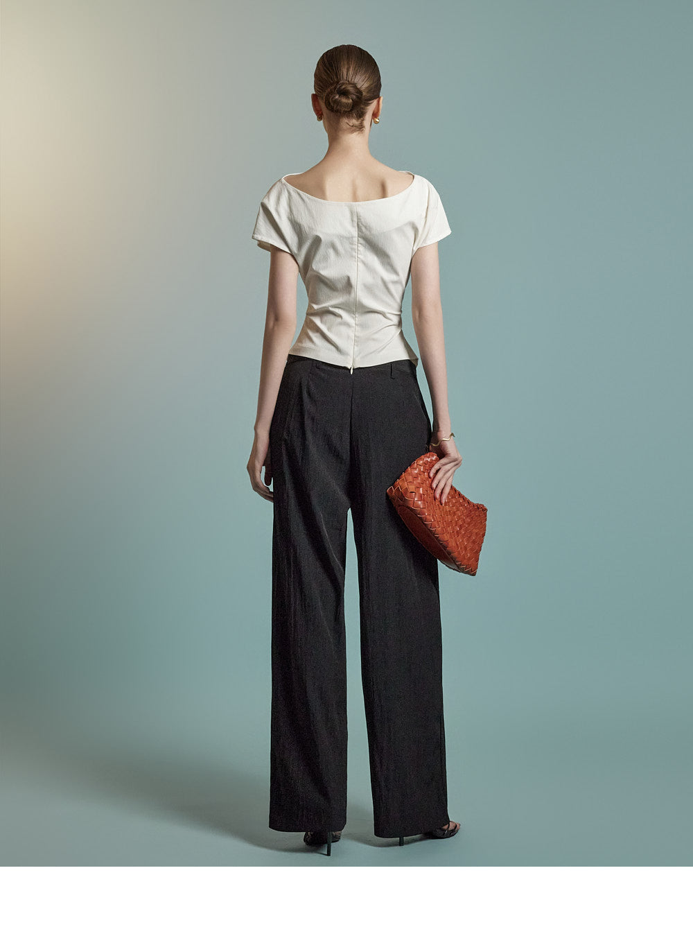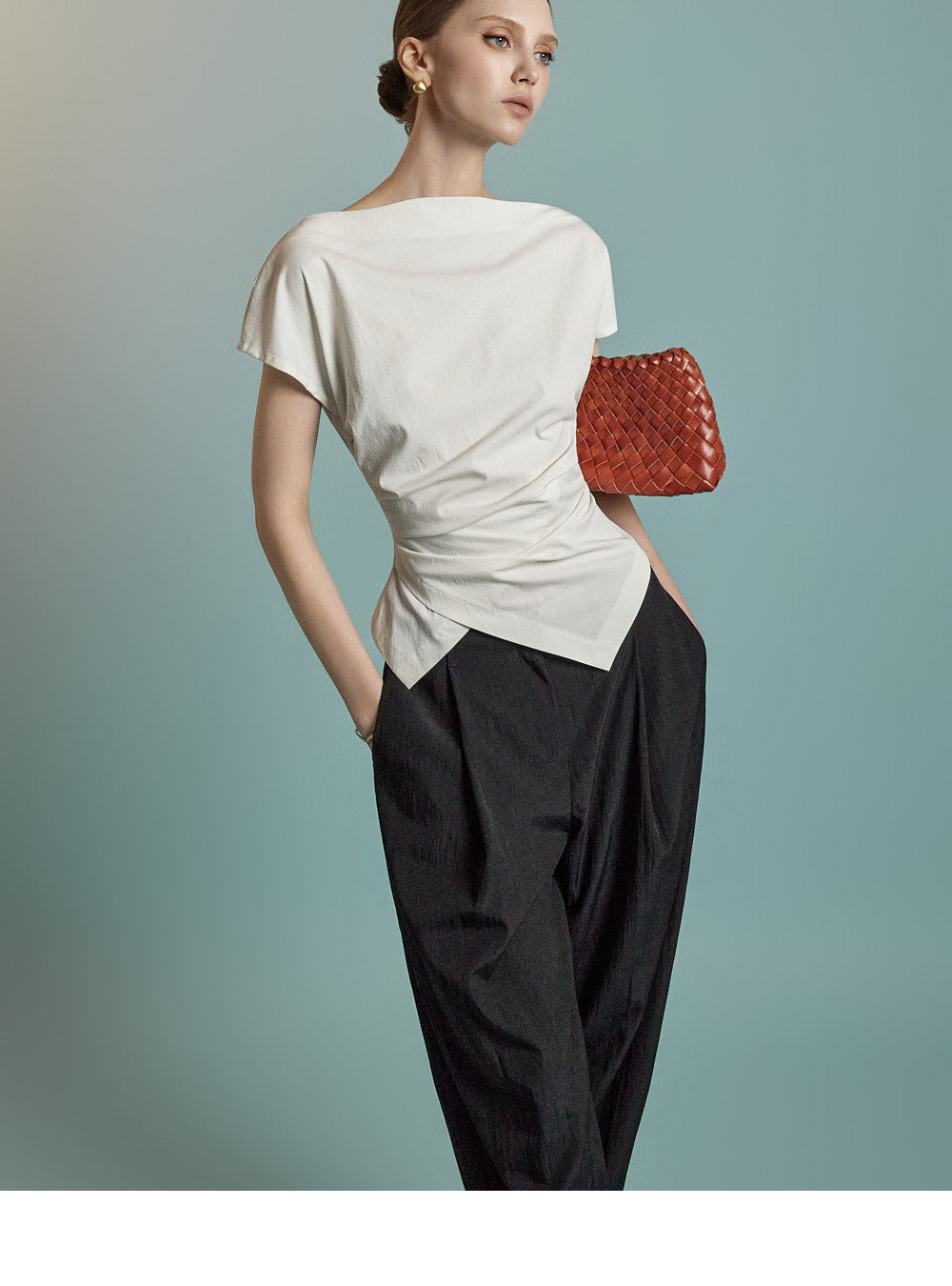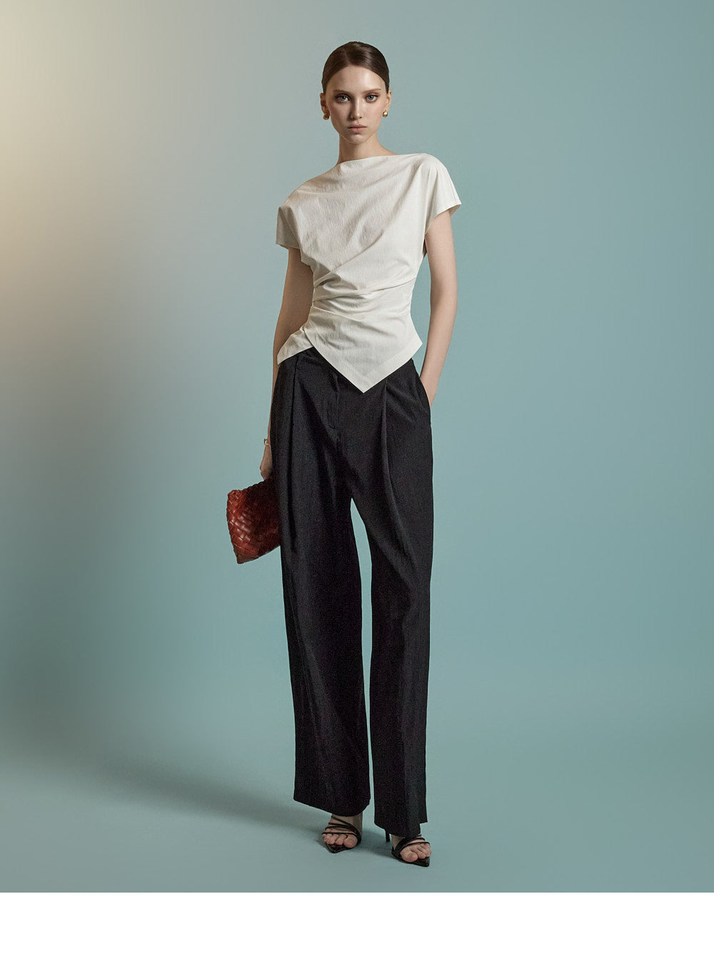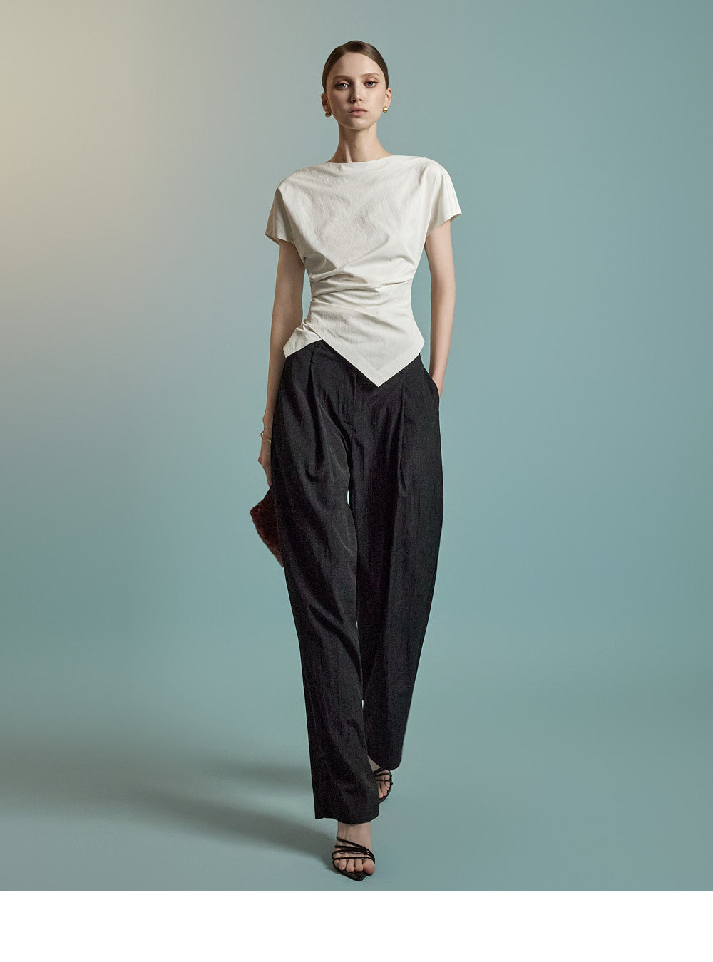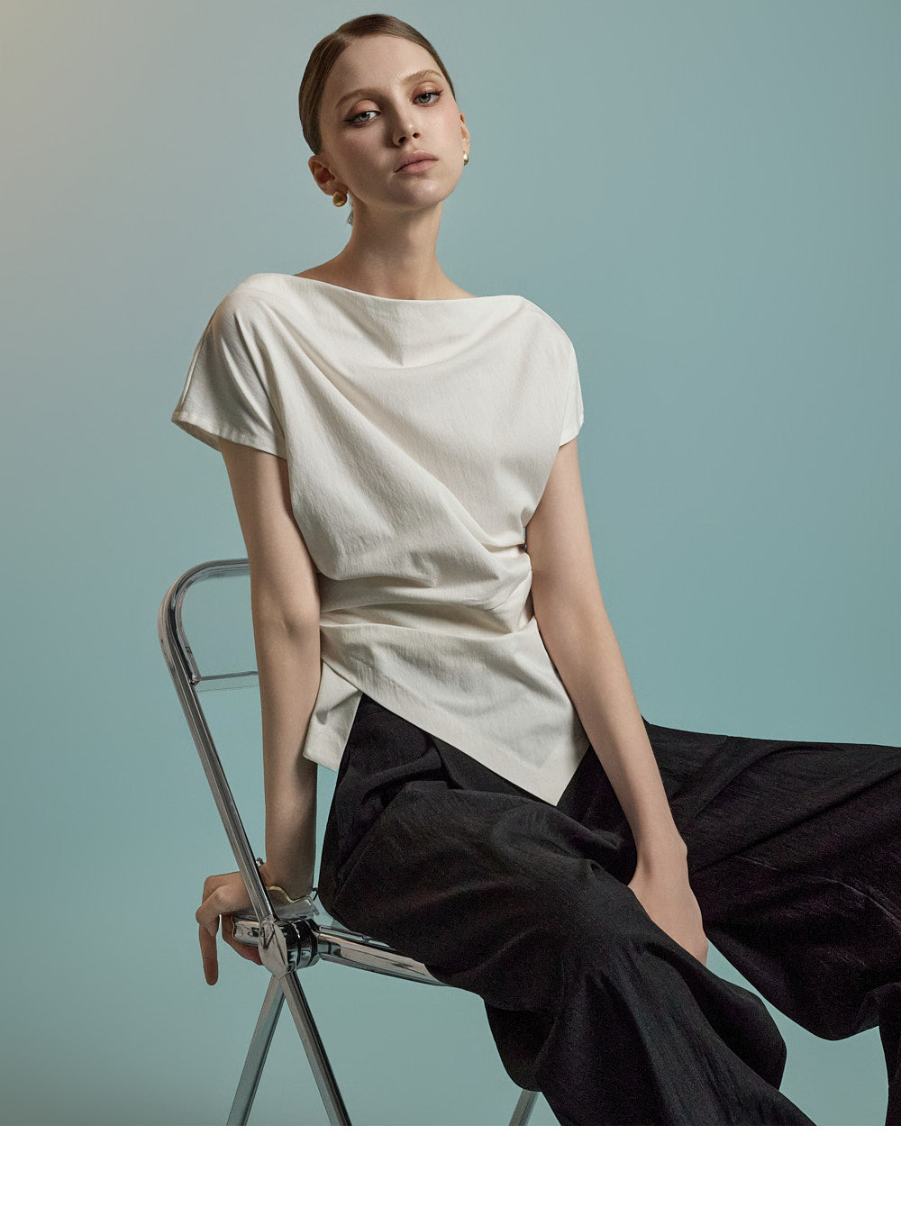 B3126 Asymmetric Shirring Blouse