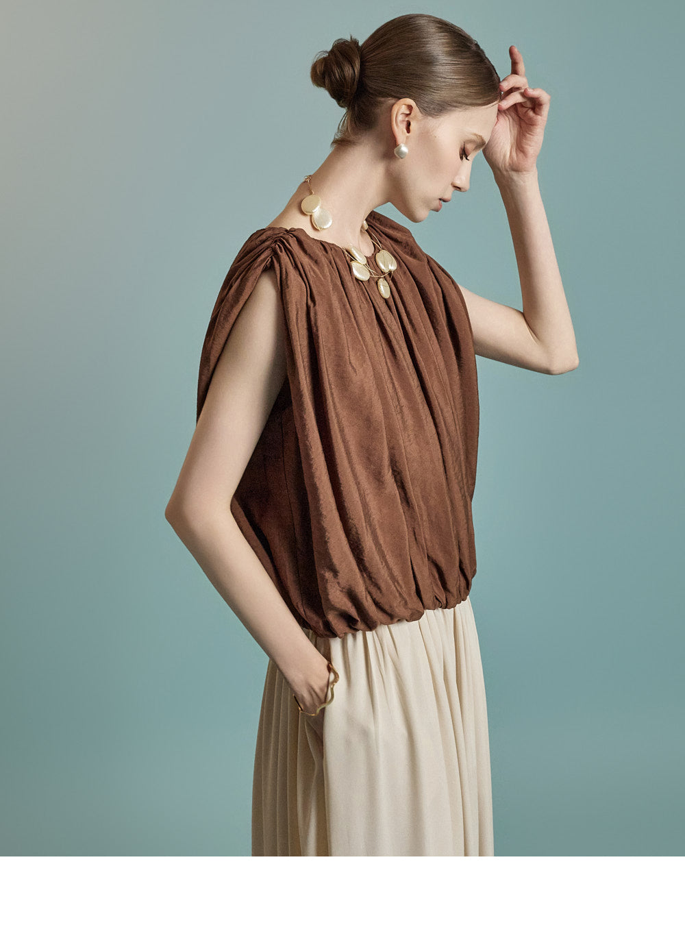 This is a ONE-size sleeveless top that exudes a soft and feminine charm.