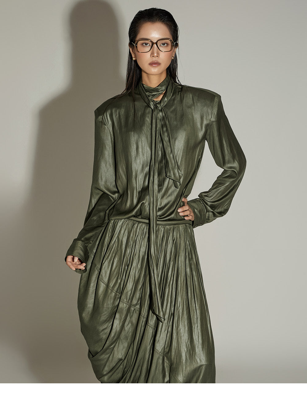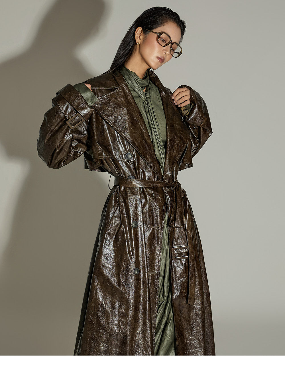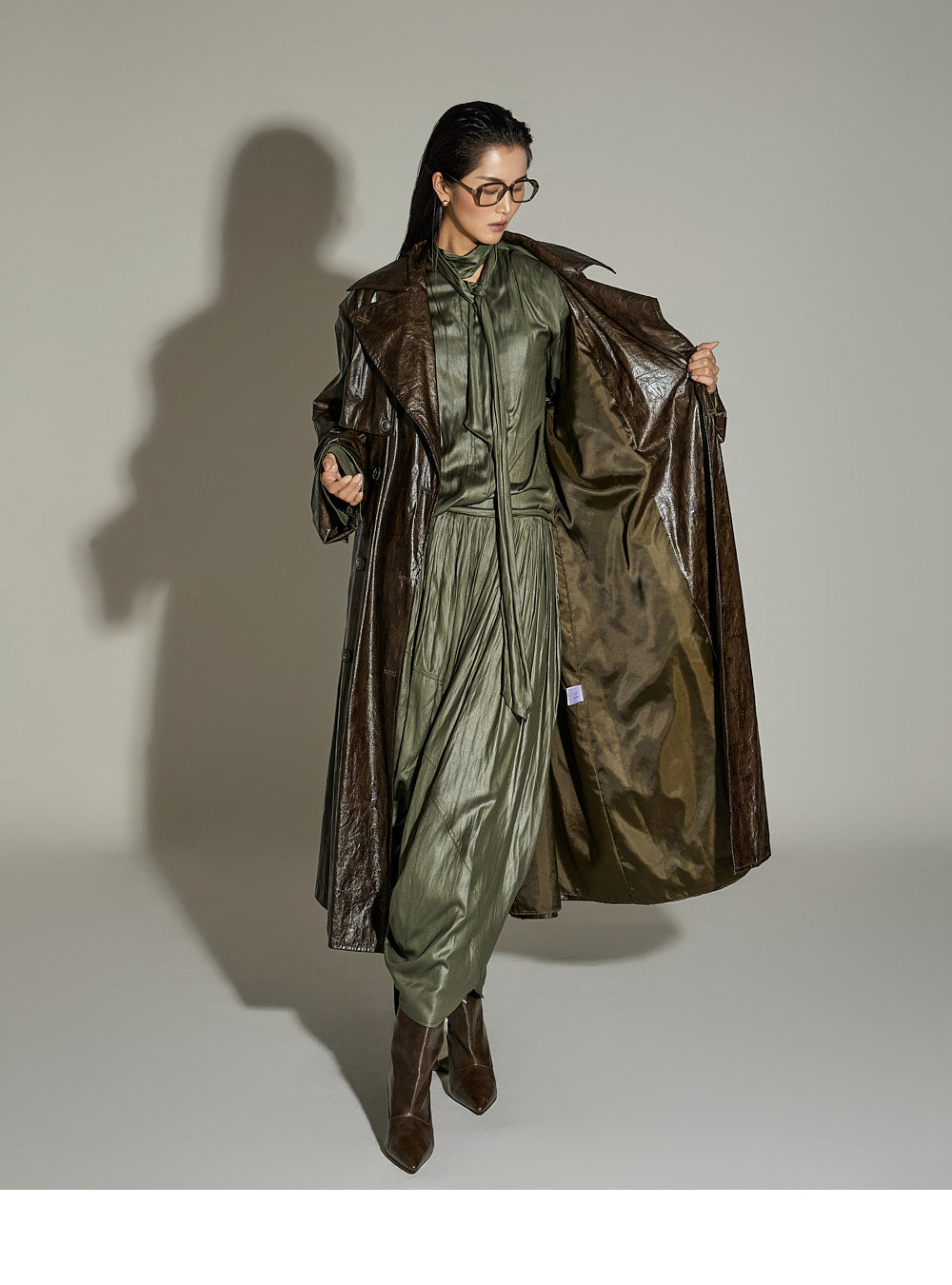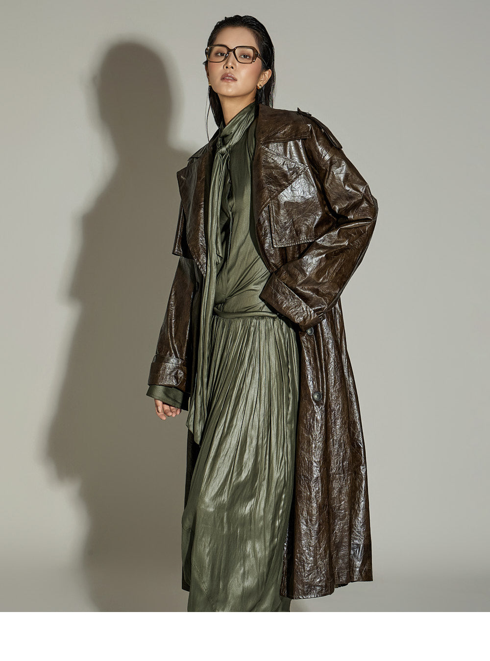 creates a stylish silhouette, and the integrated scarf detail at the neck