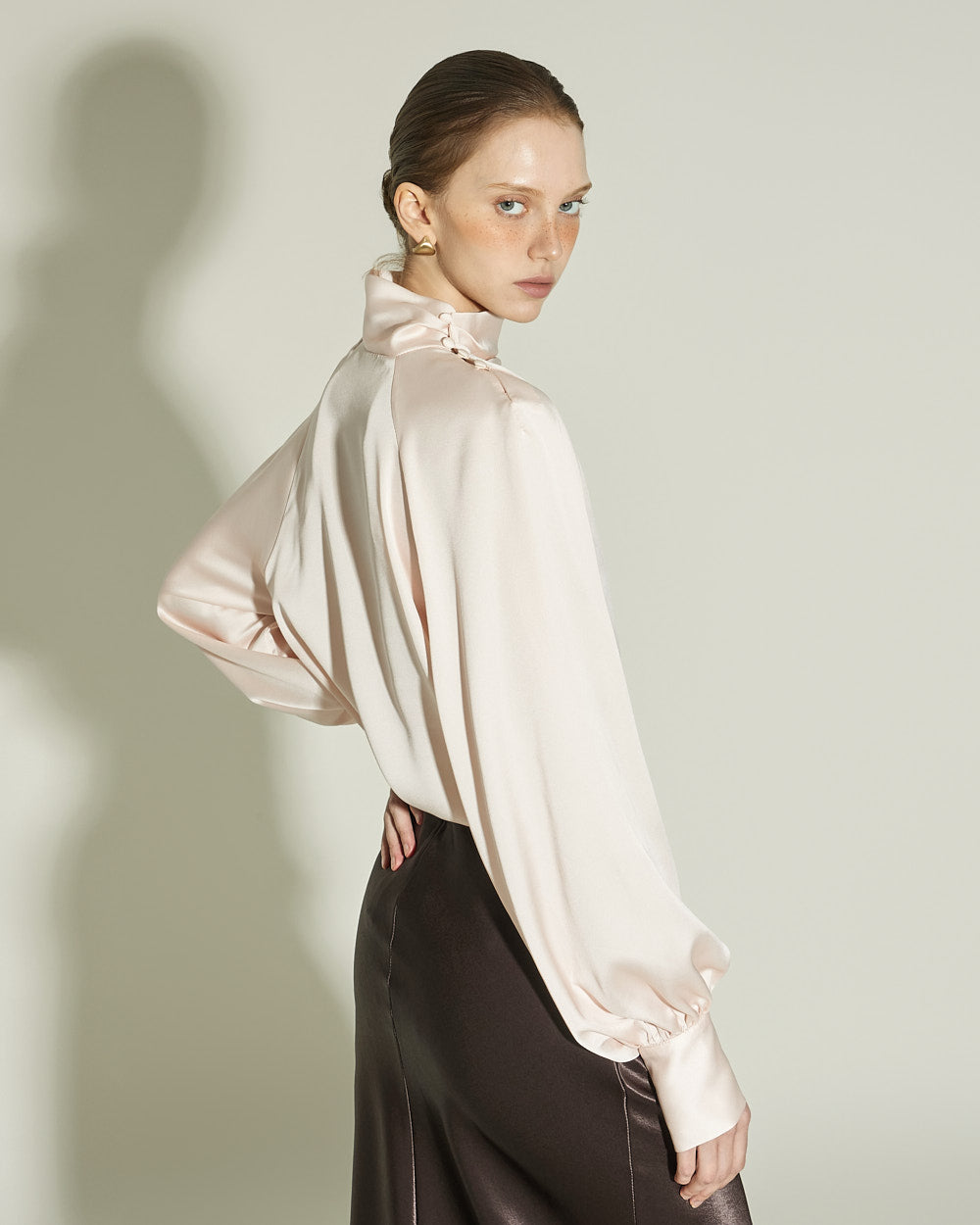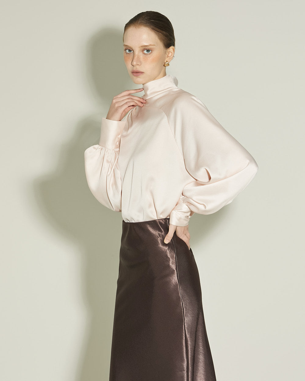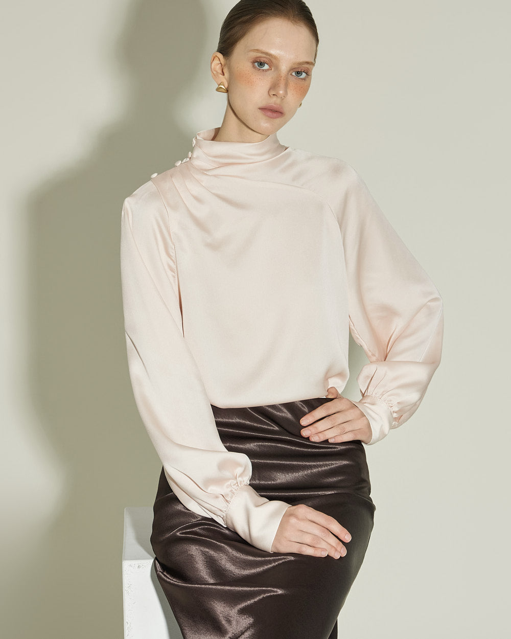 and the shirring detailing at the sleeve hem adds a feminine touch.