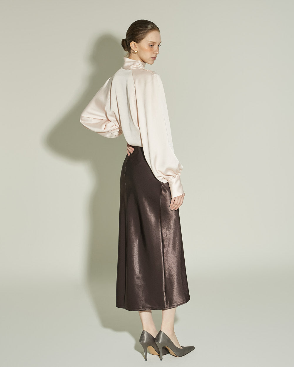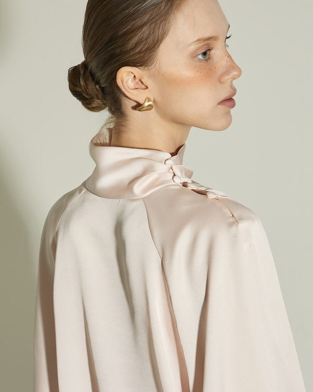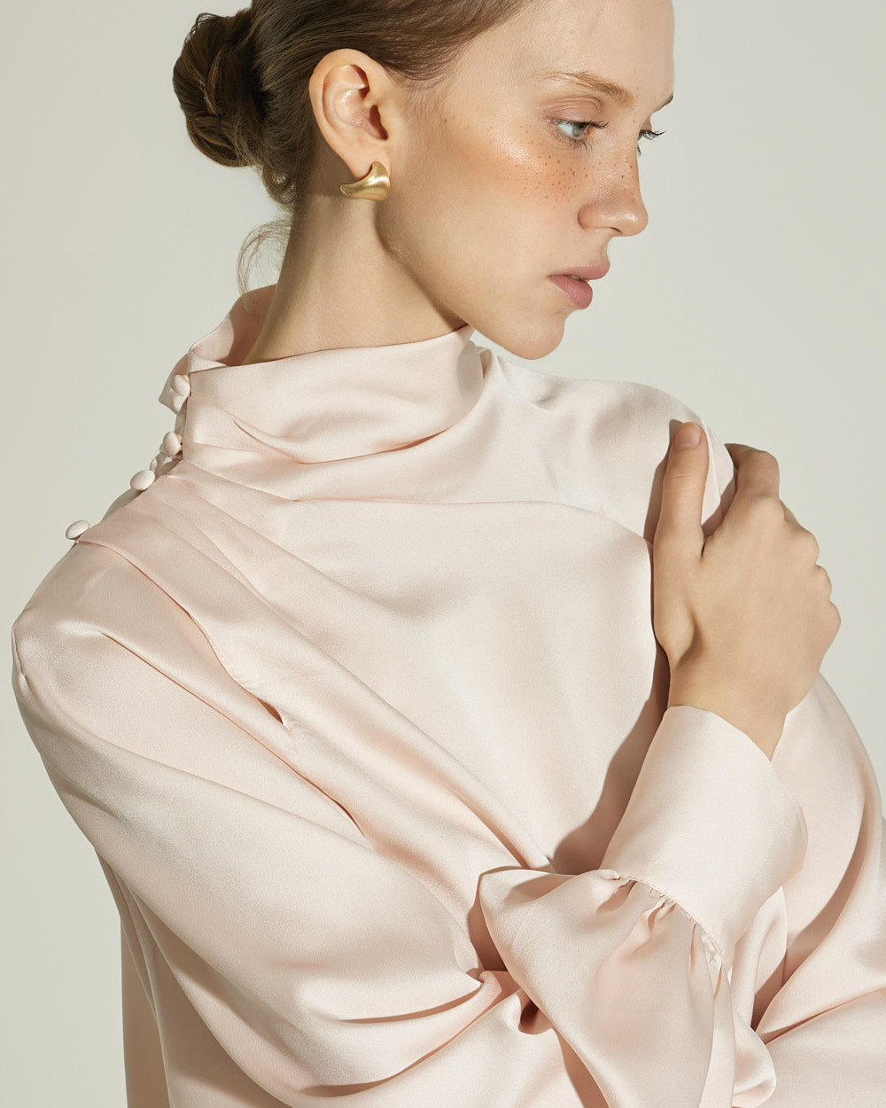 and the shirring detailing at the sleeve hem adds a feminine touch.
