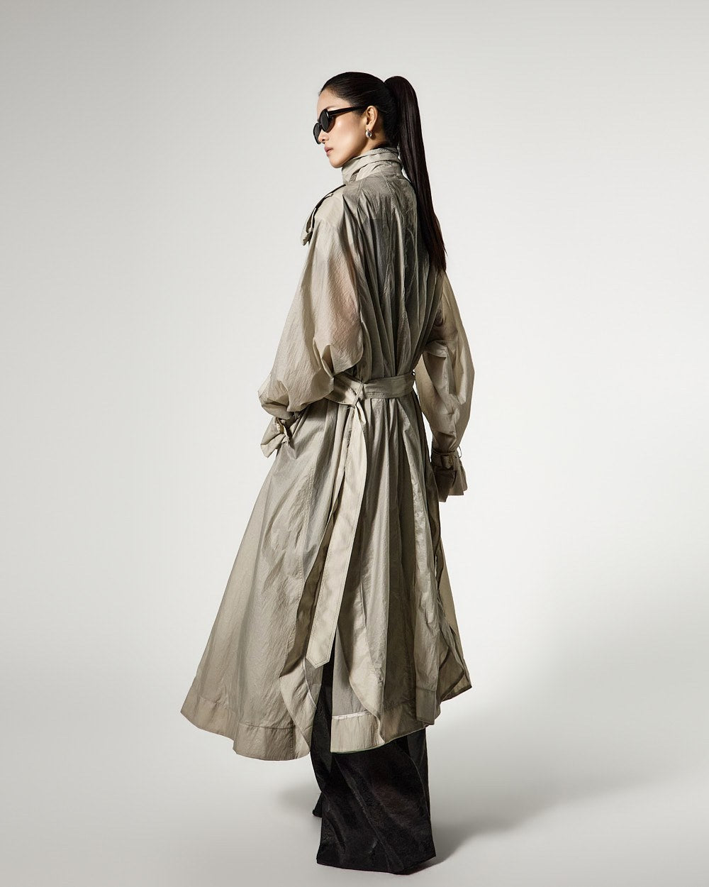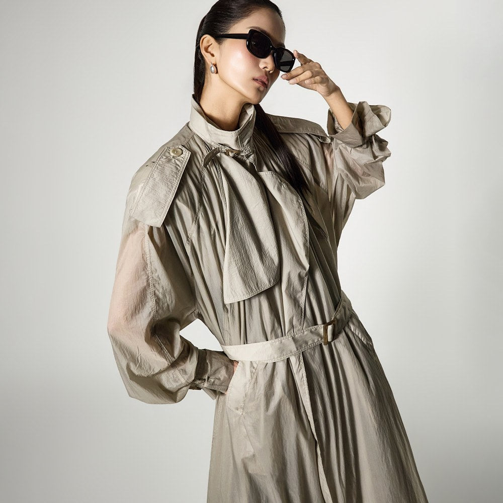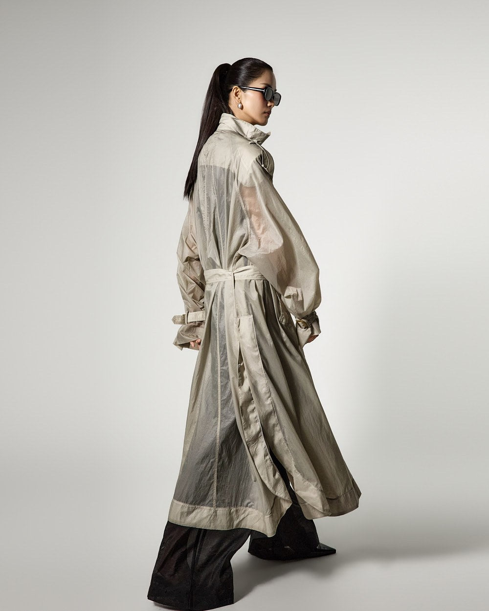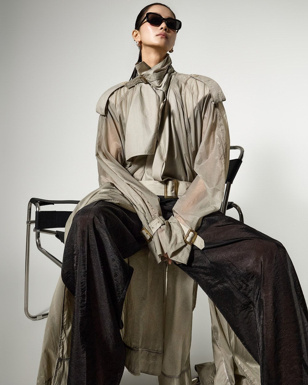 アシンメトリーなヘムラインがスタイリッシュなシルエットを演出し、