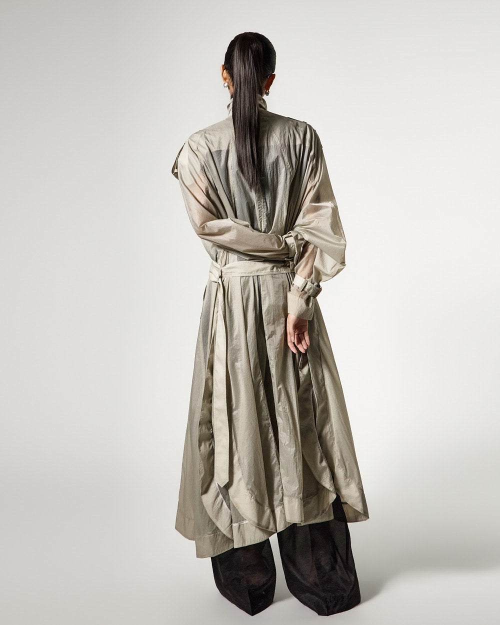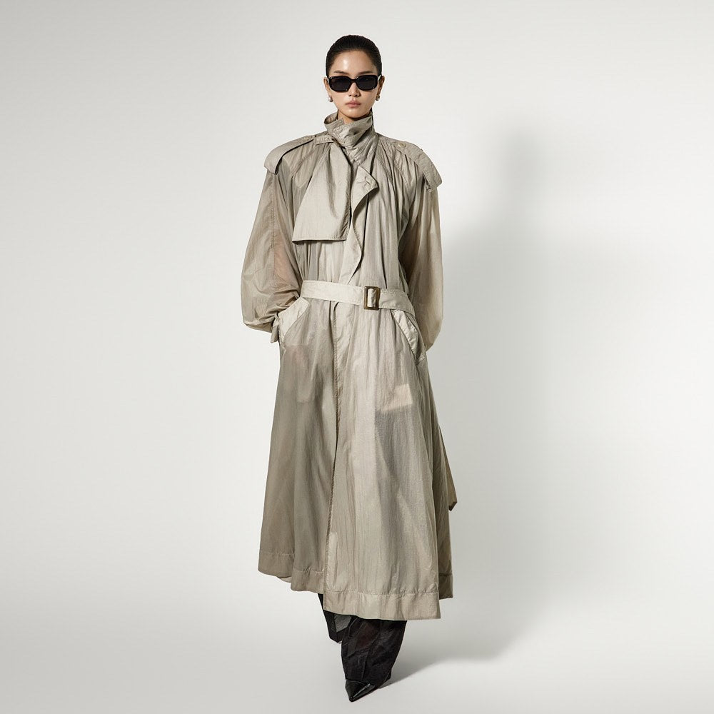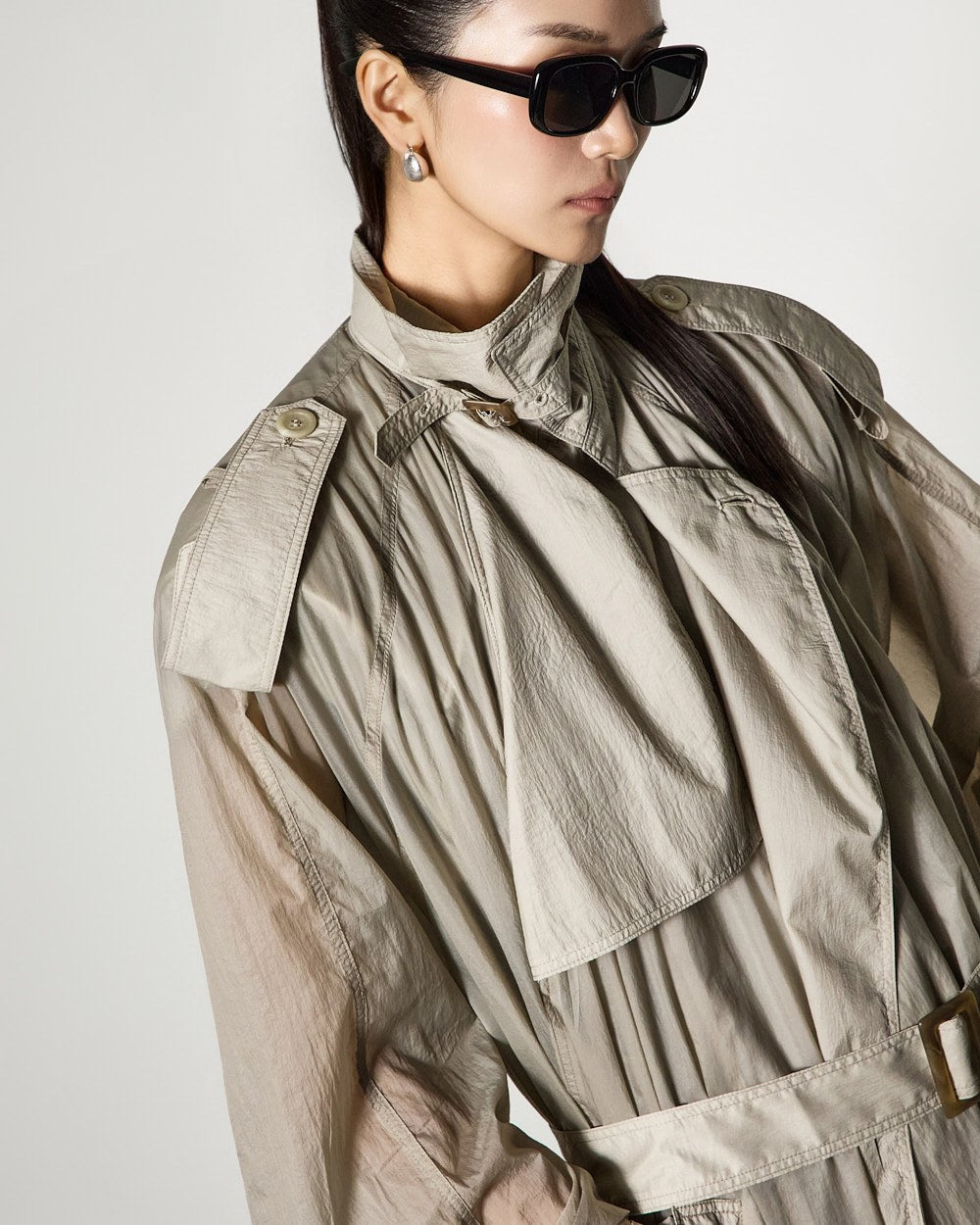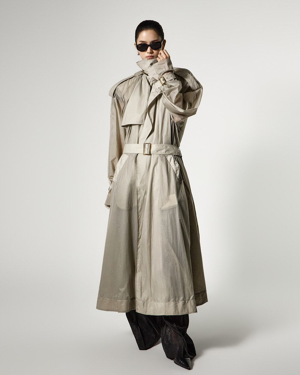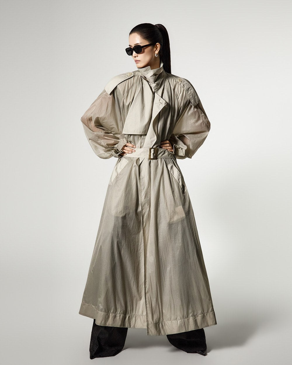 アシンメトリーなヘムラインがスタイリッシュなシルエットを演出し、