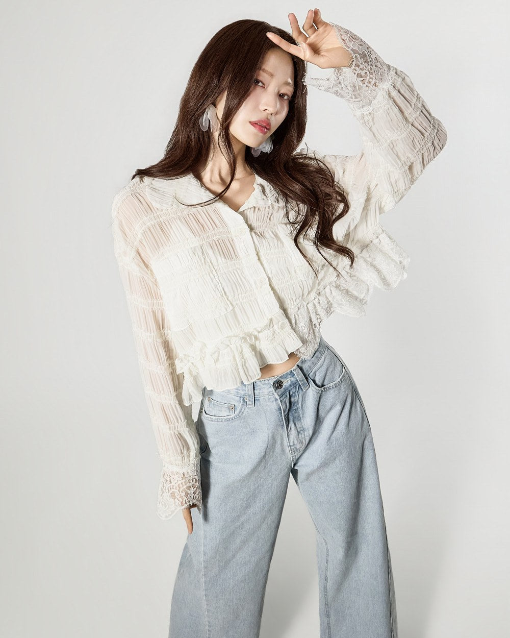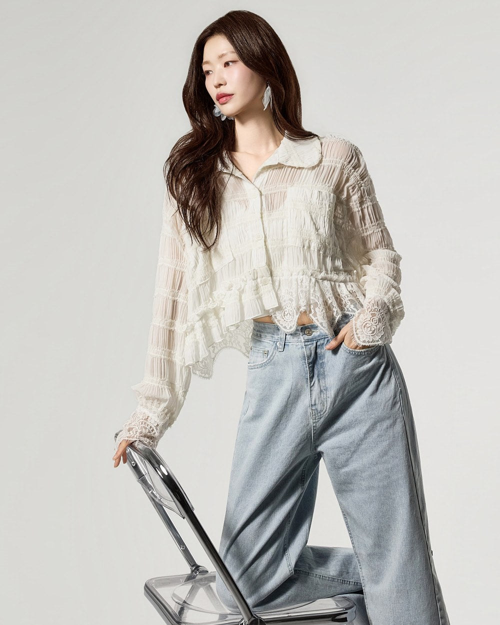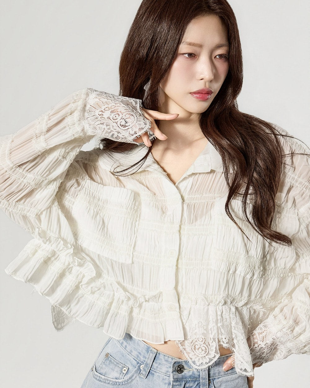 レースとフリルのディテールがフェミニンなアクセントを添えます。