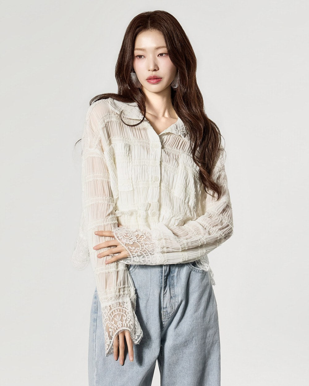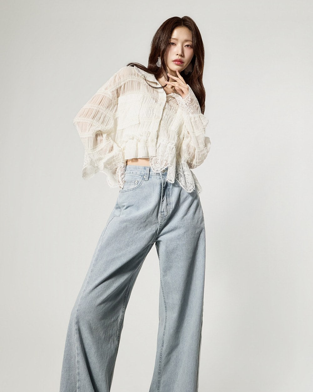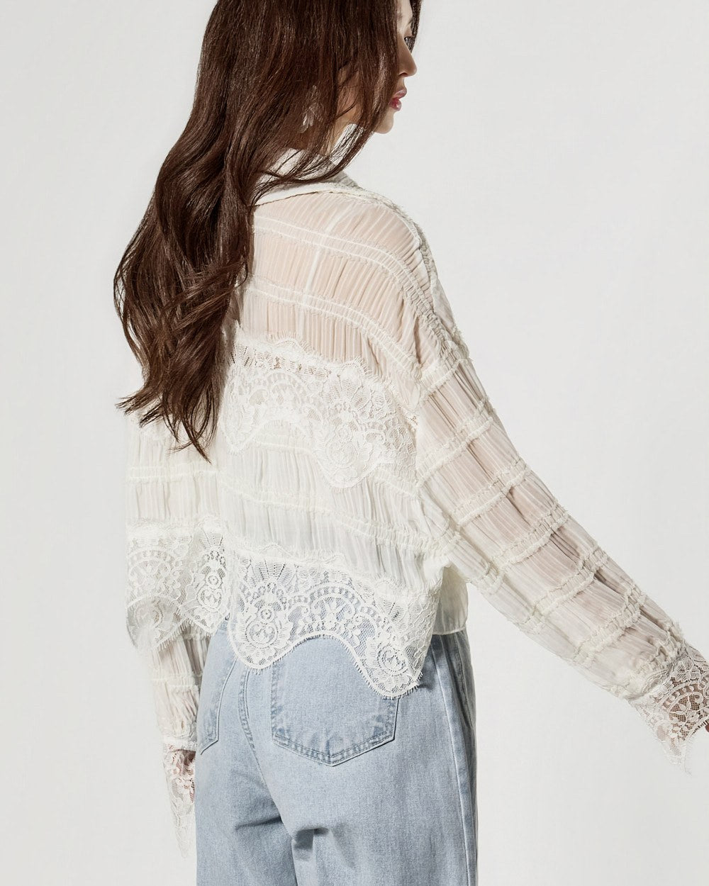 レースとフリルのディテールがフェミニンなアクセントを添えます。