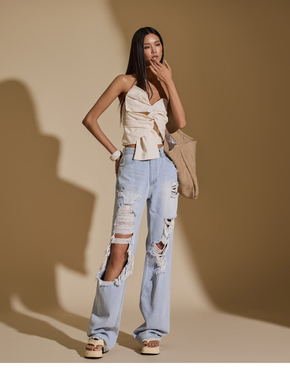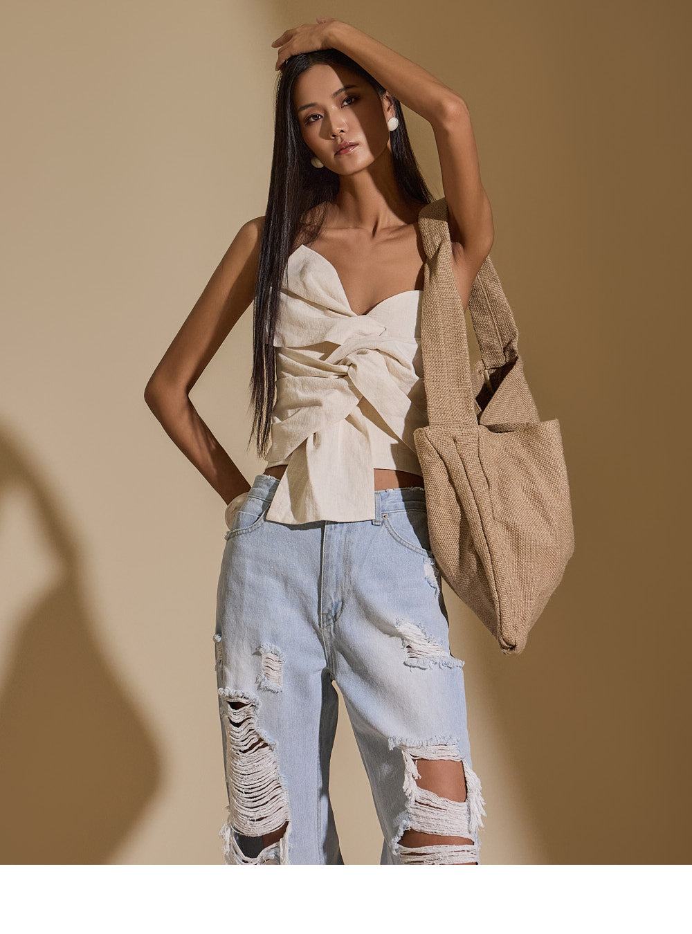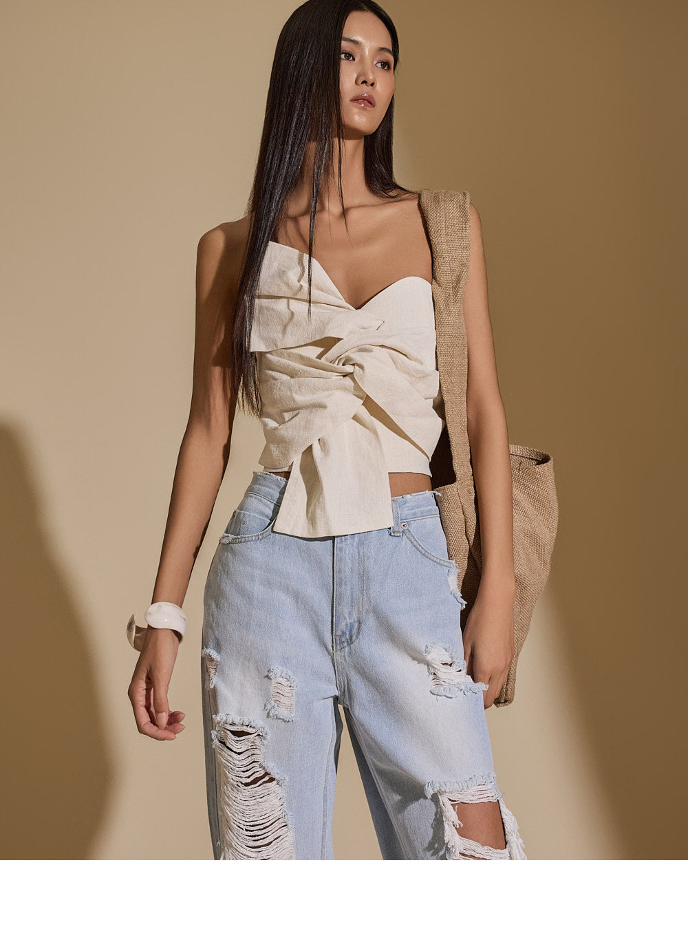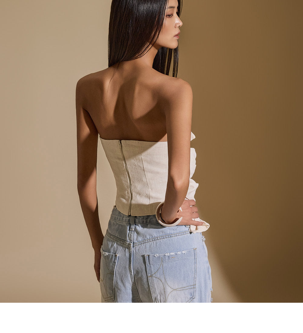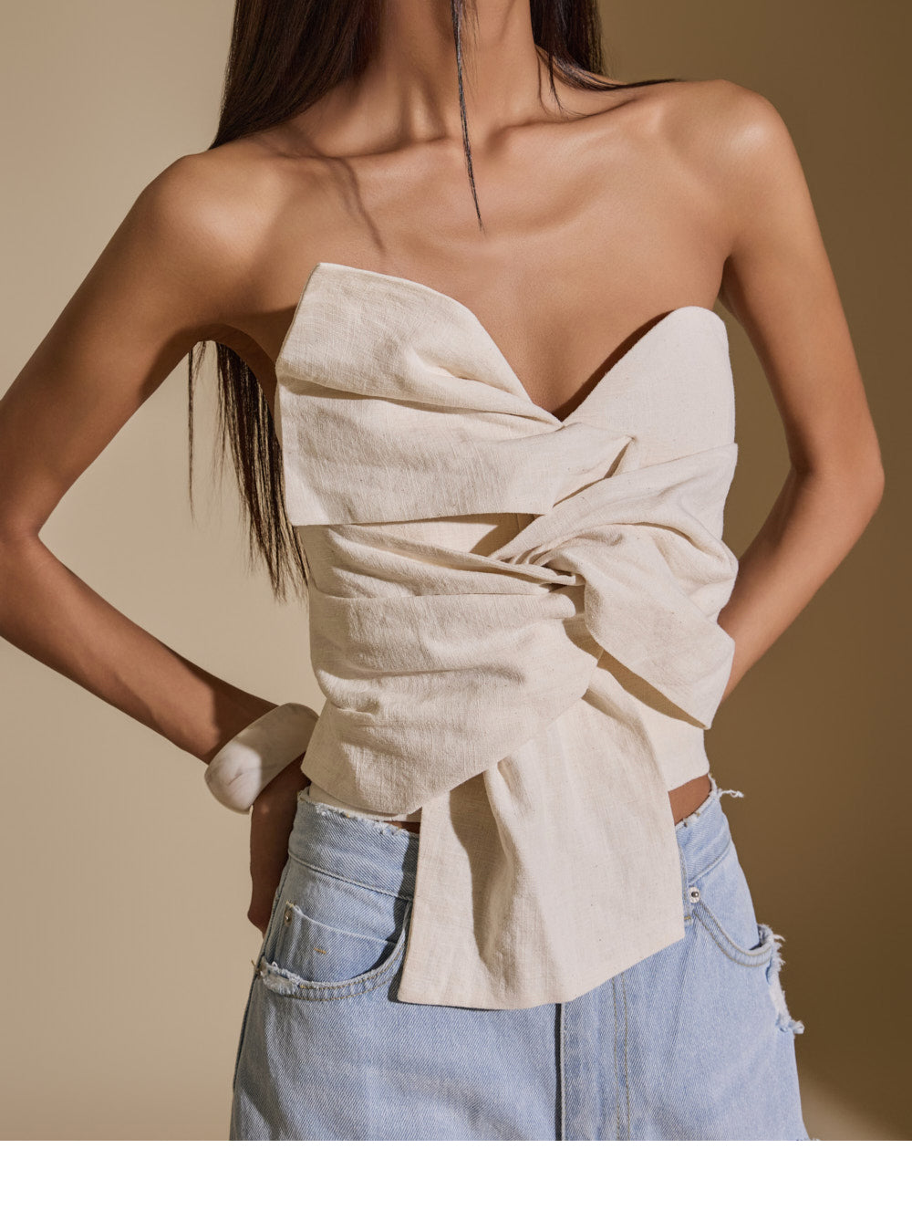B9157 ラミーリボンツイストチューブトップクロップブラウス