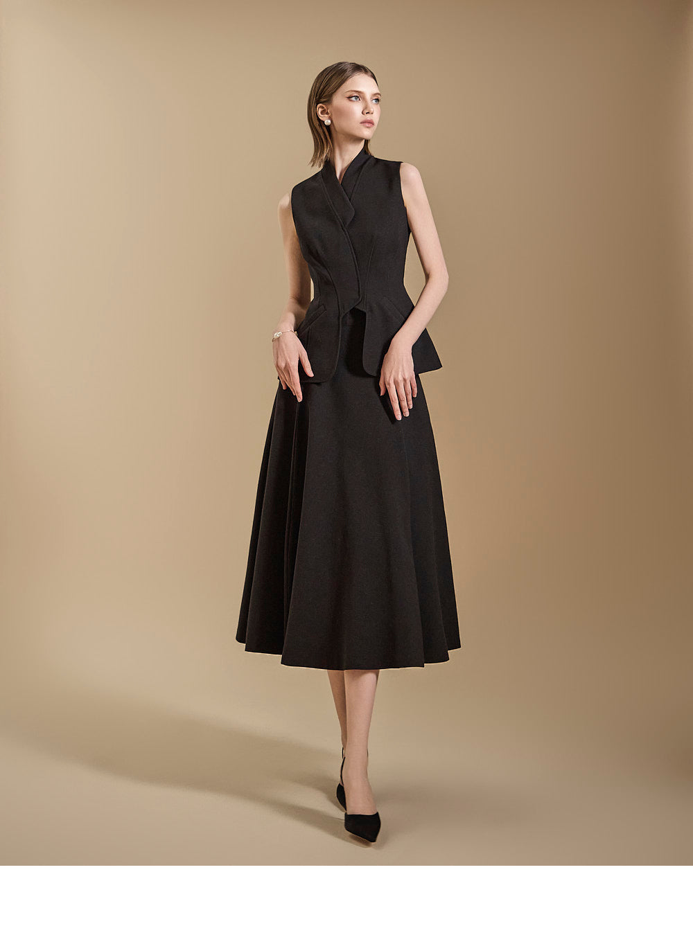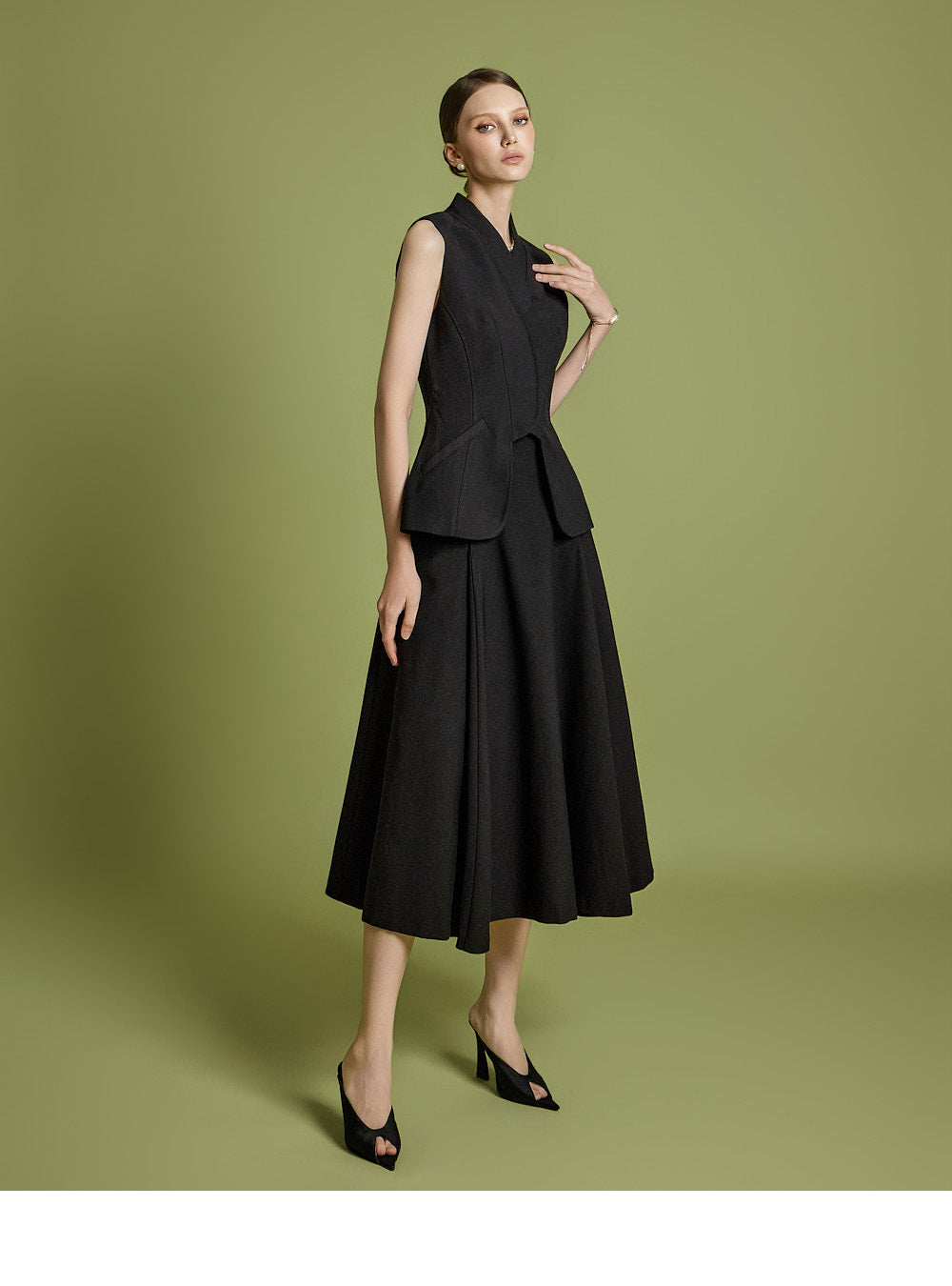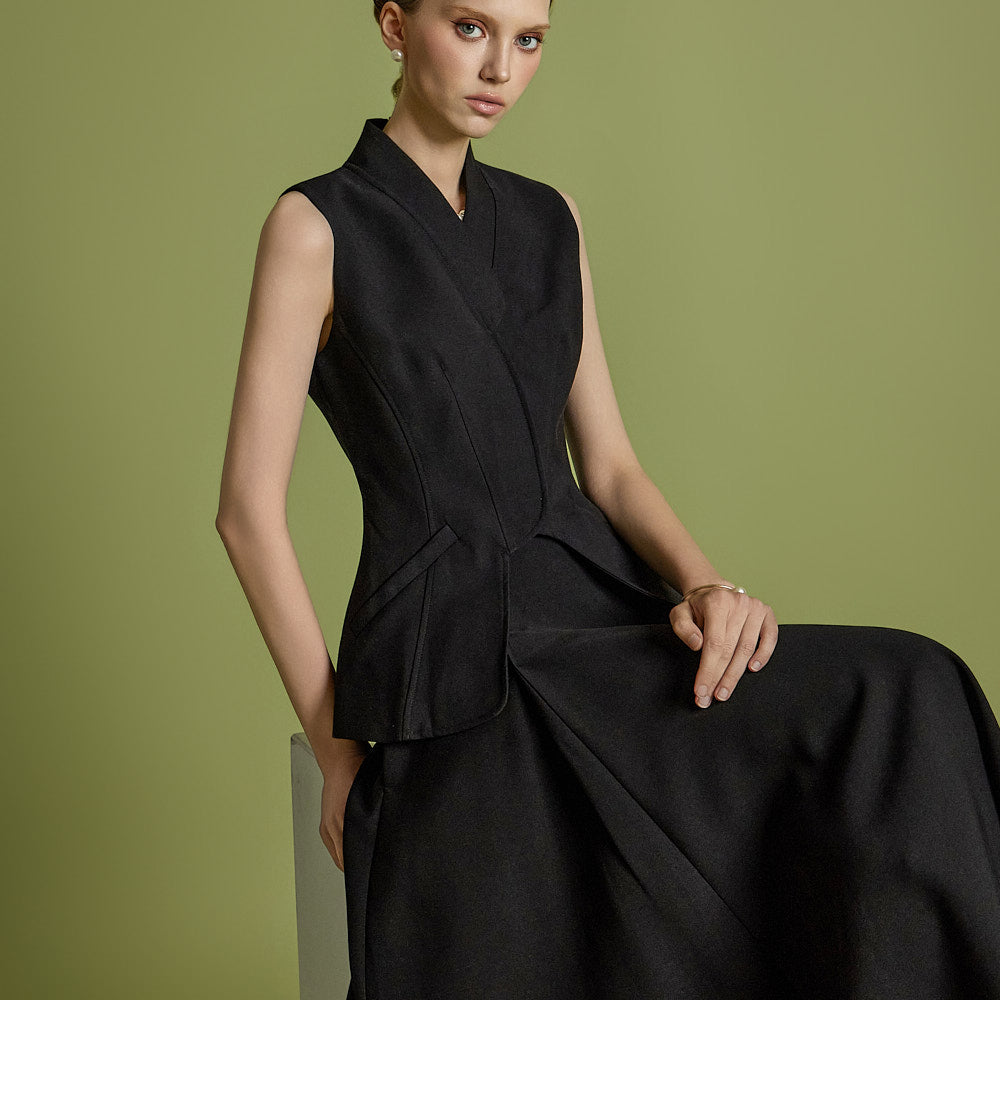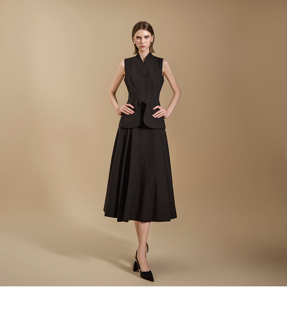 クラシックな襟のネックラインが優雅さを醸し出します。