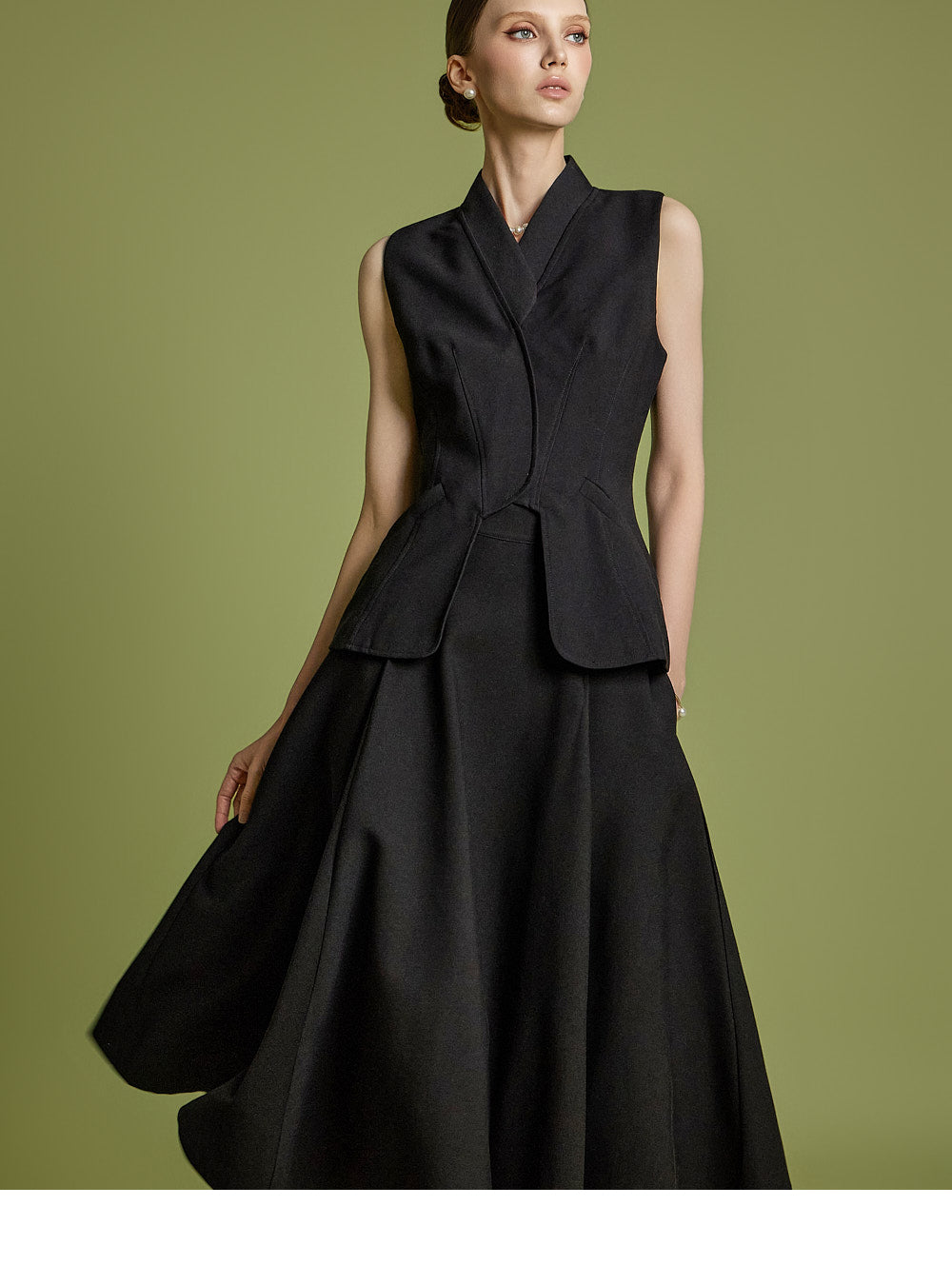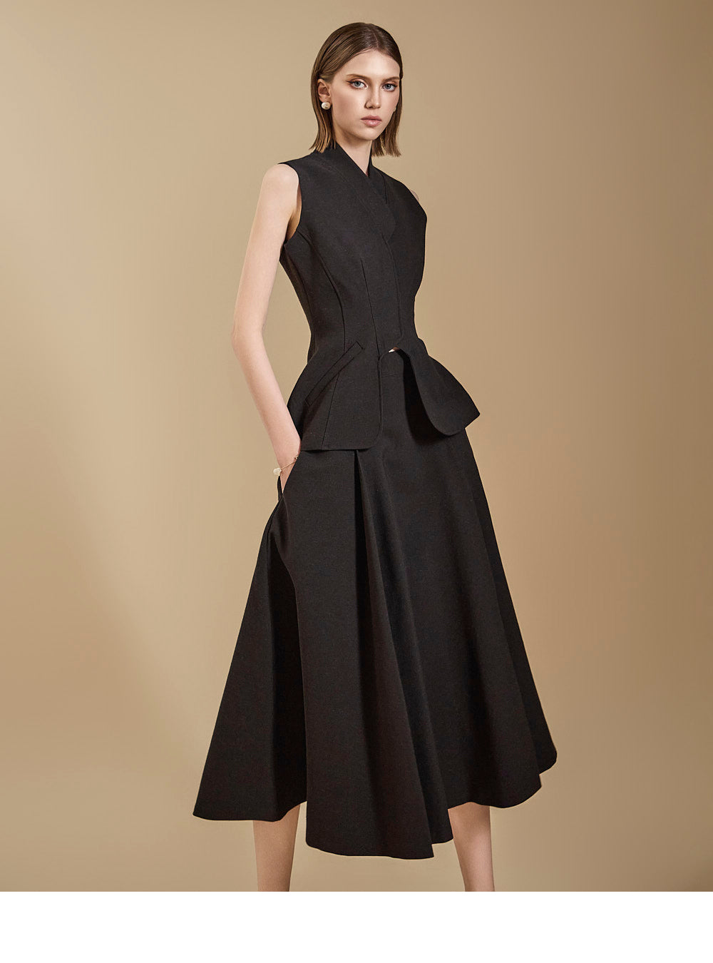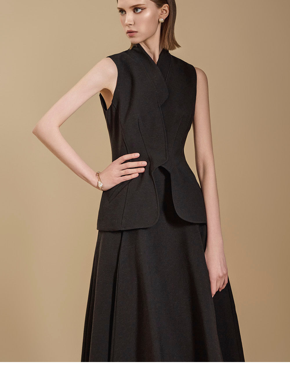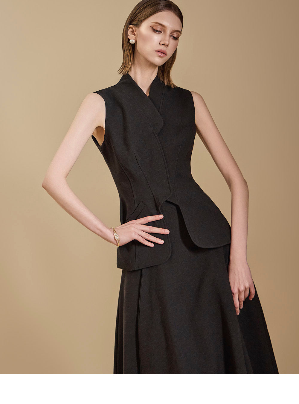 クラシックな襟のネックラインが優雅さを醸し出します。