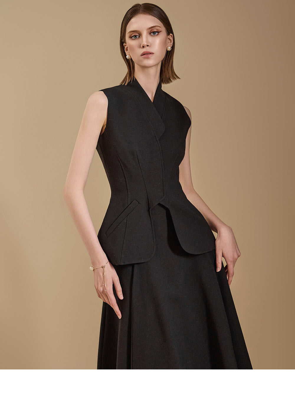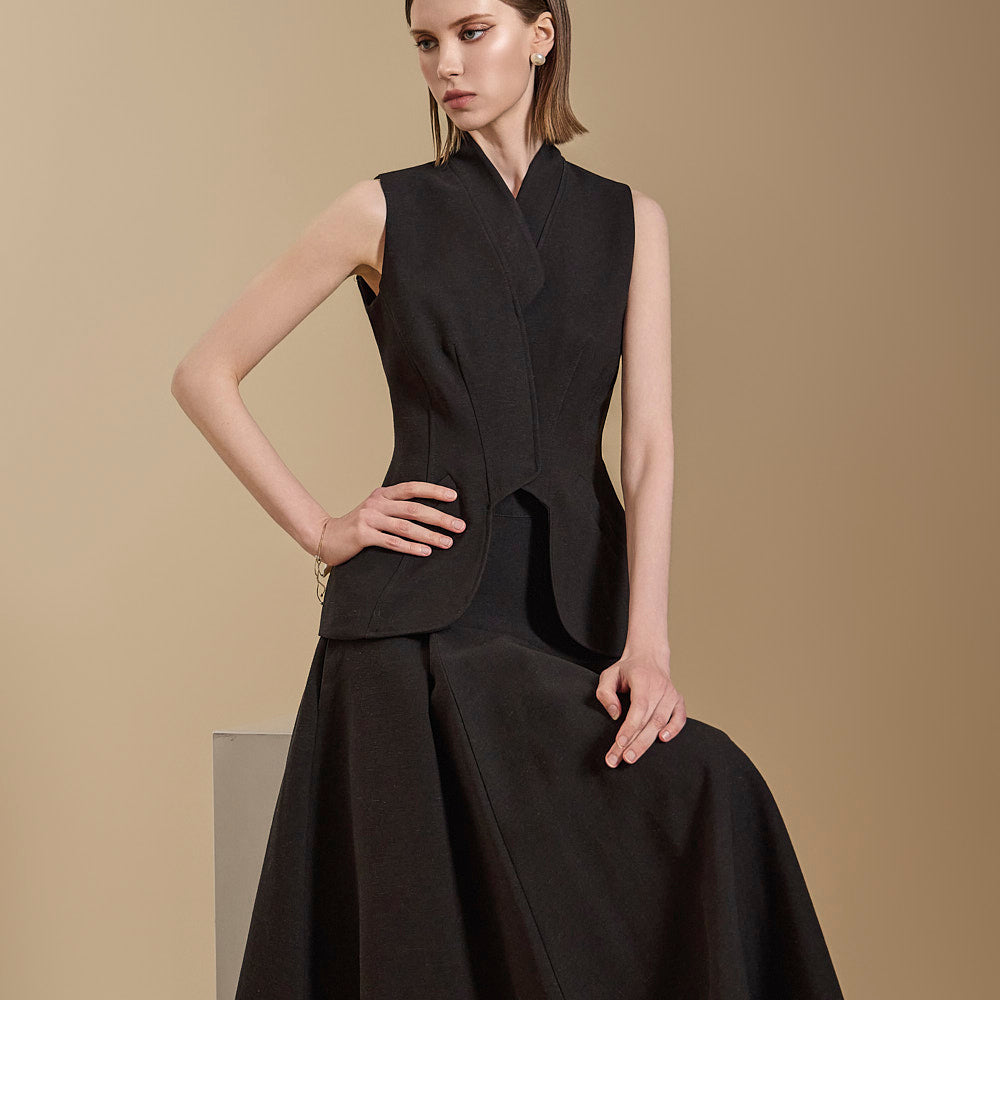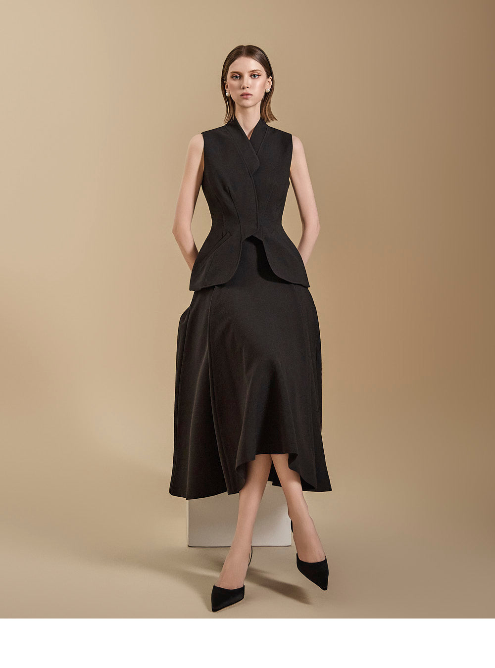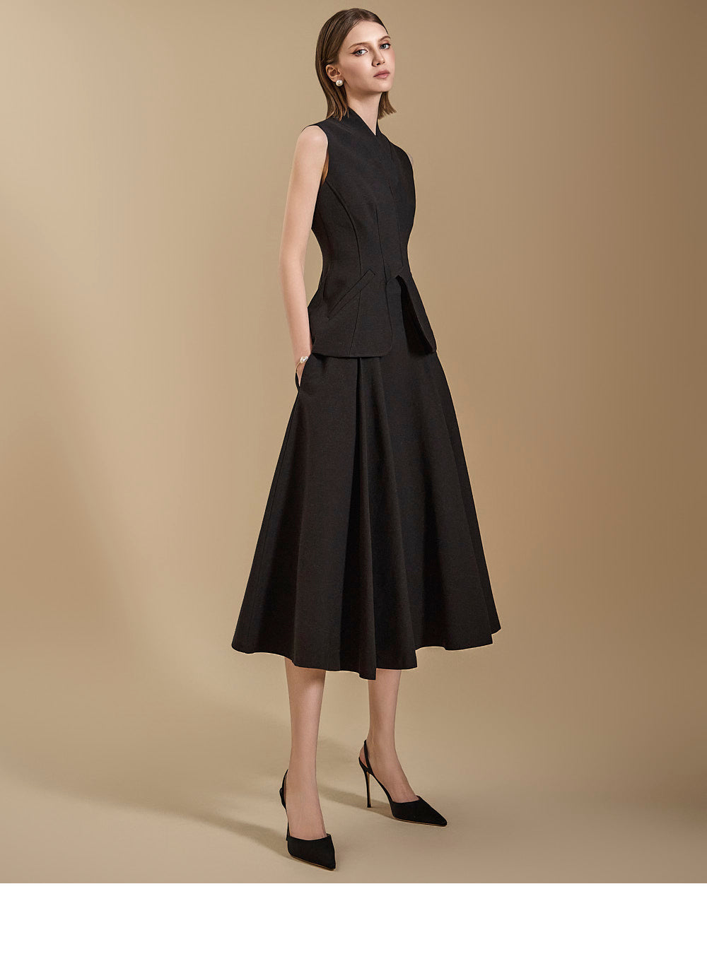 クラシックな襟のネックラインが優雅さを醸し出します。