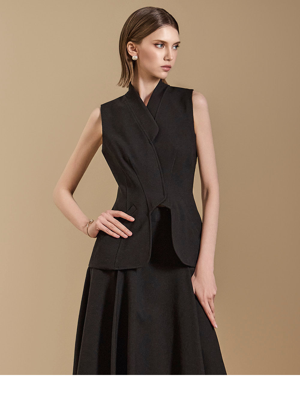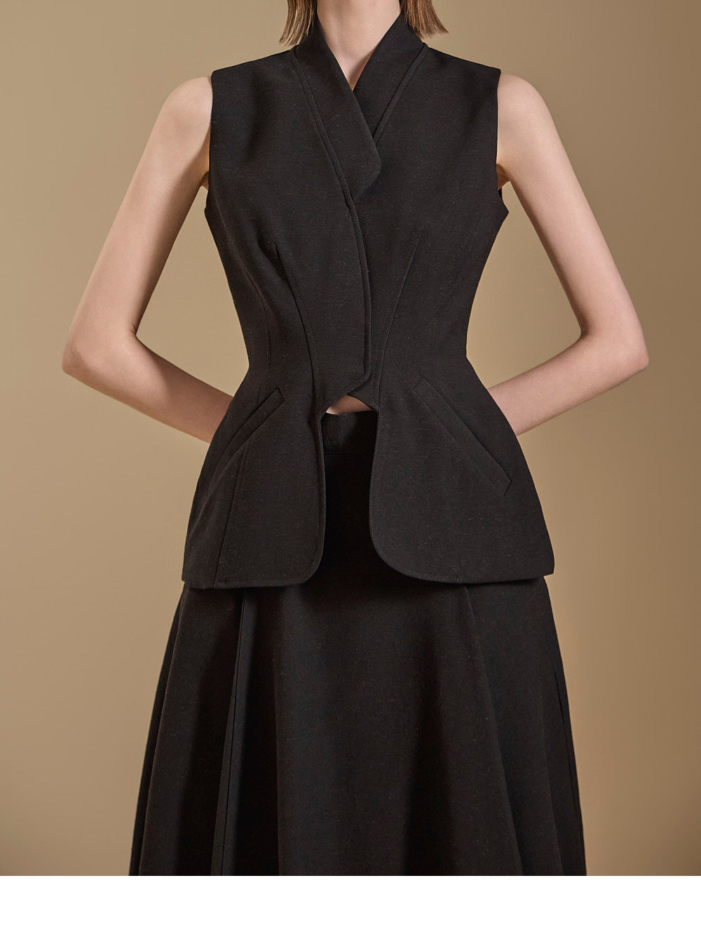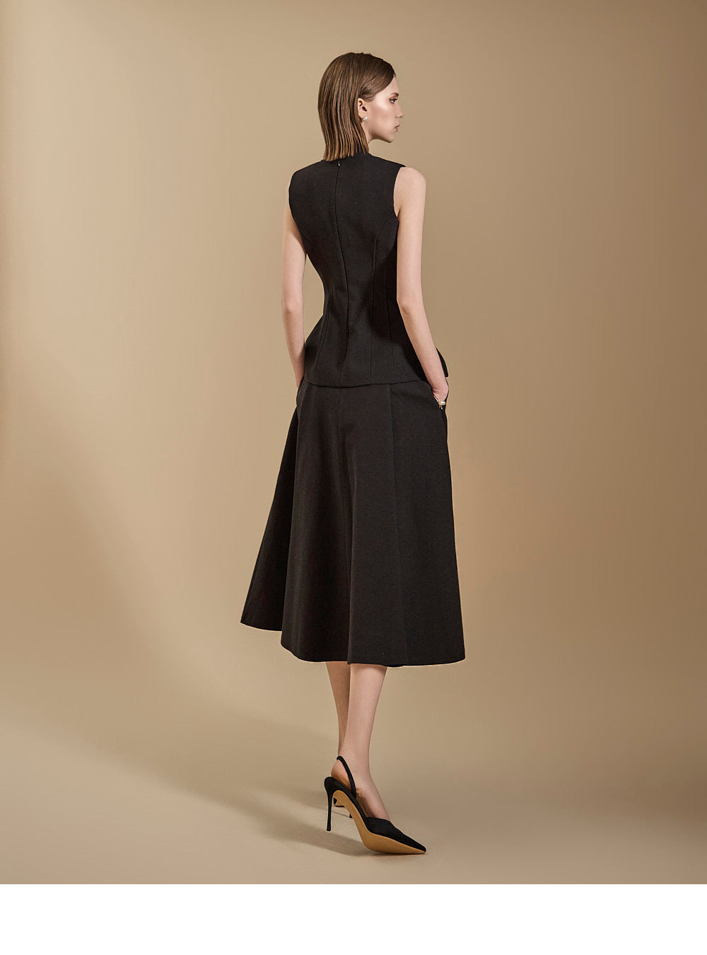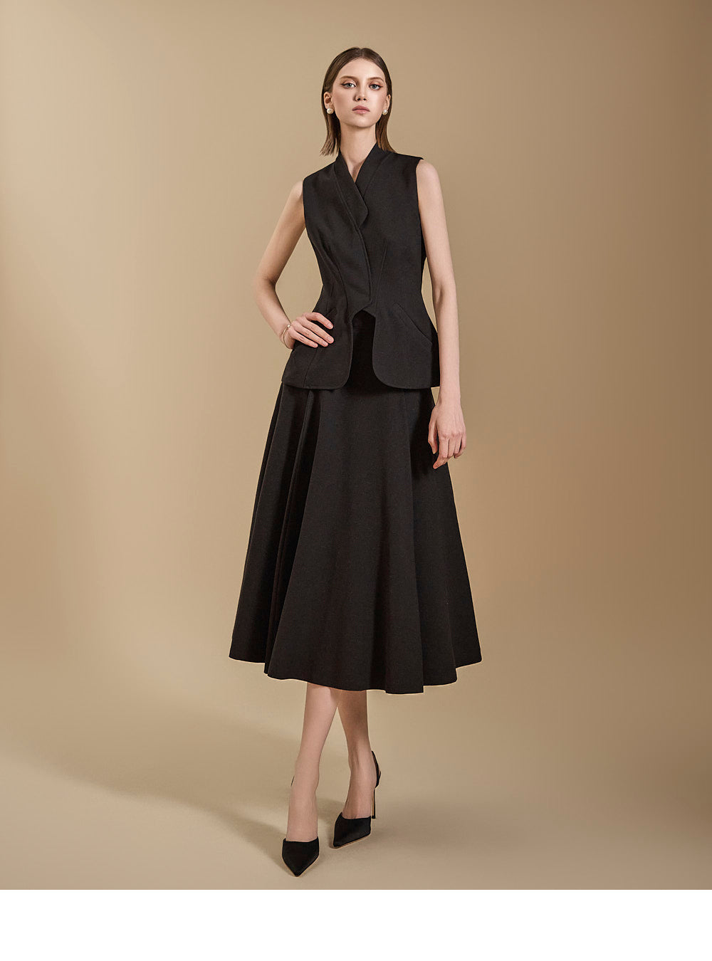 クラシックな襟のネックラインが優雅さを醸し出します。