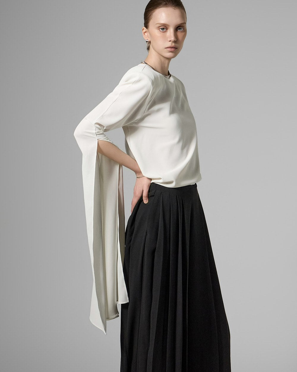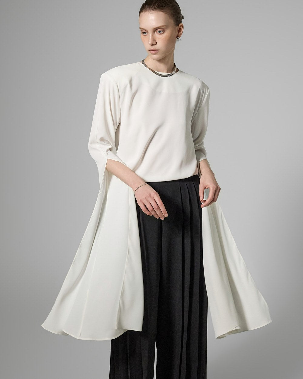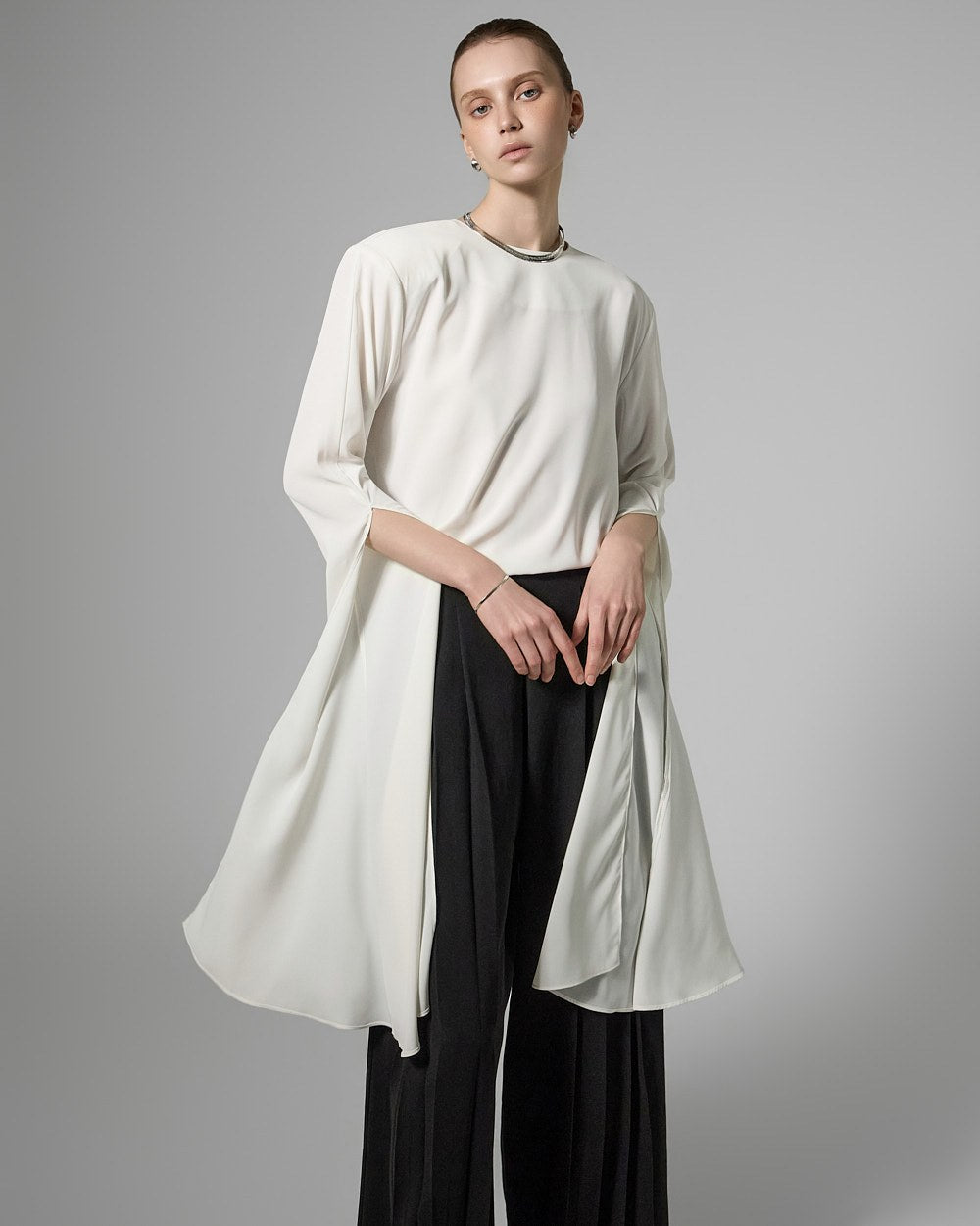 This long slit sleeve blouse exudes a modern vibe.