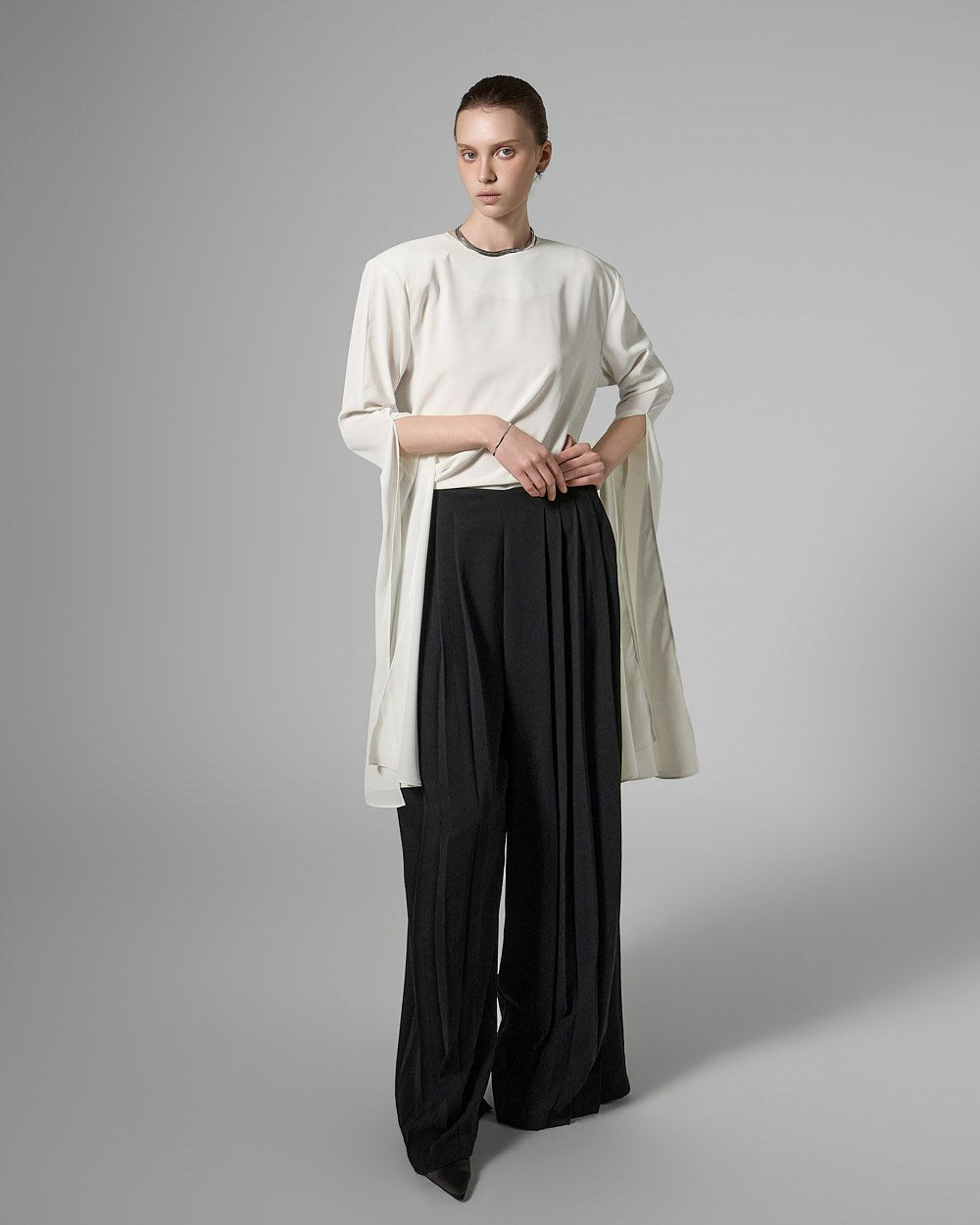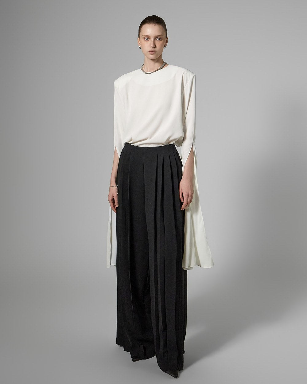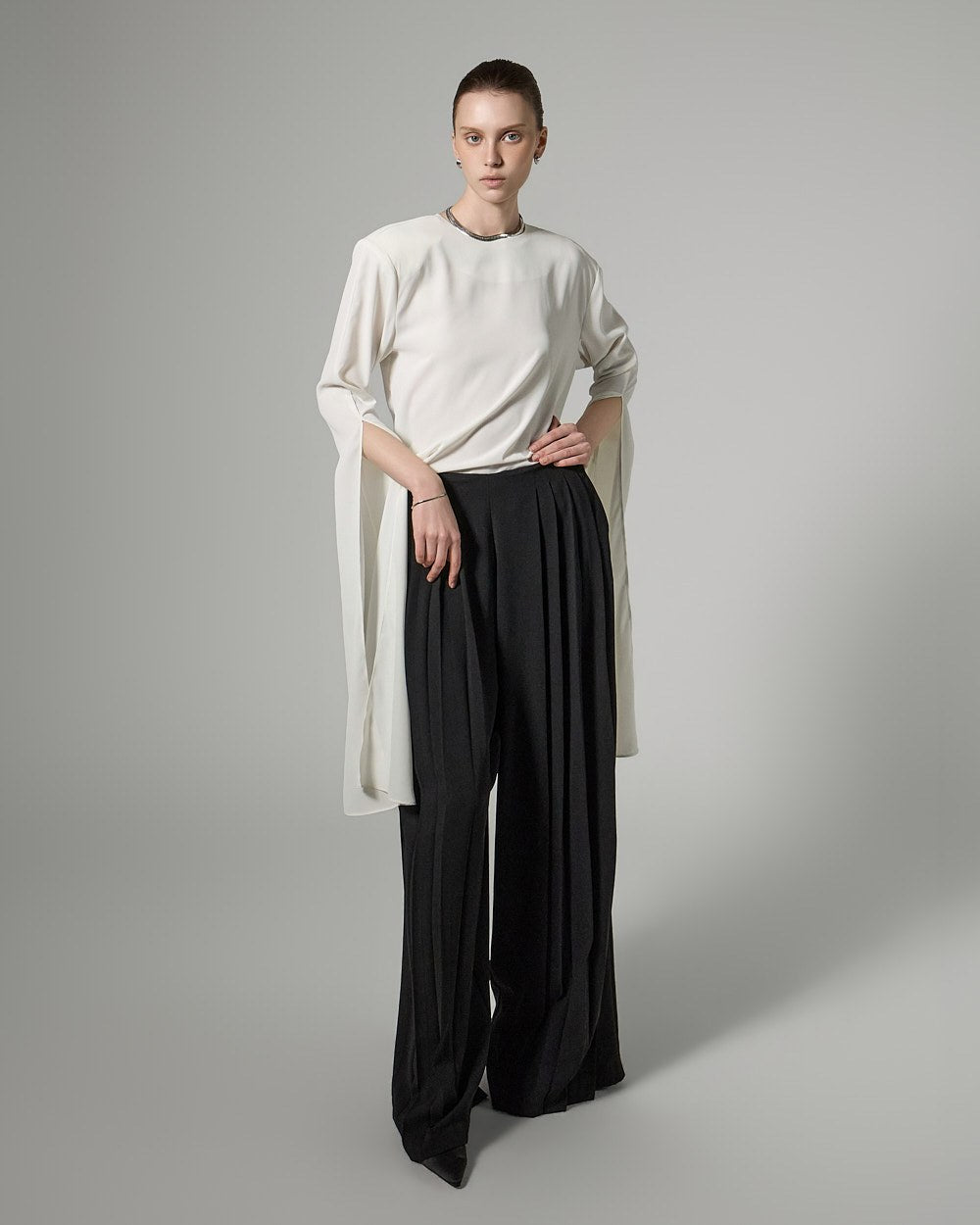 This long slit sleeve blouse exudes a modern vibe.
