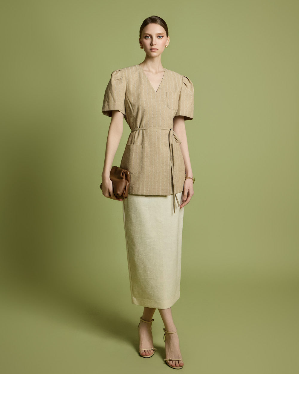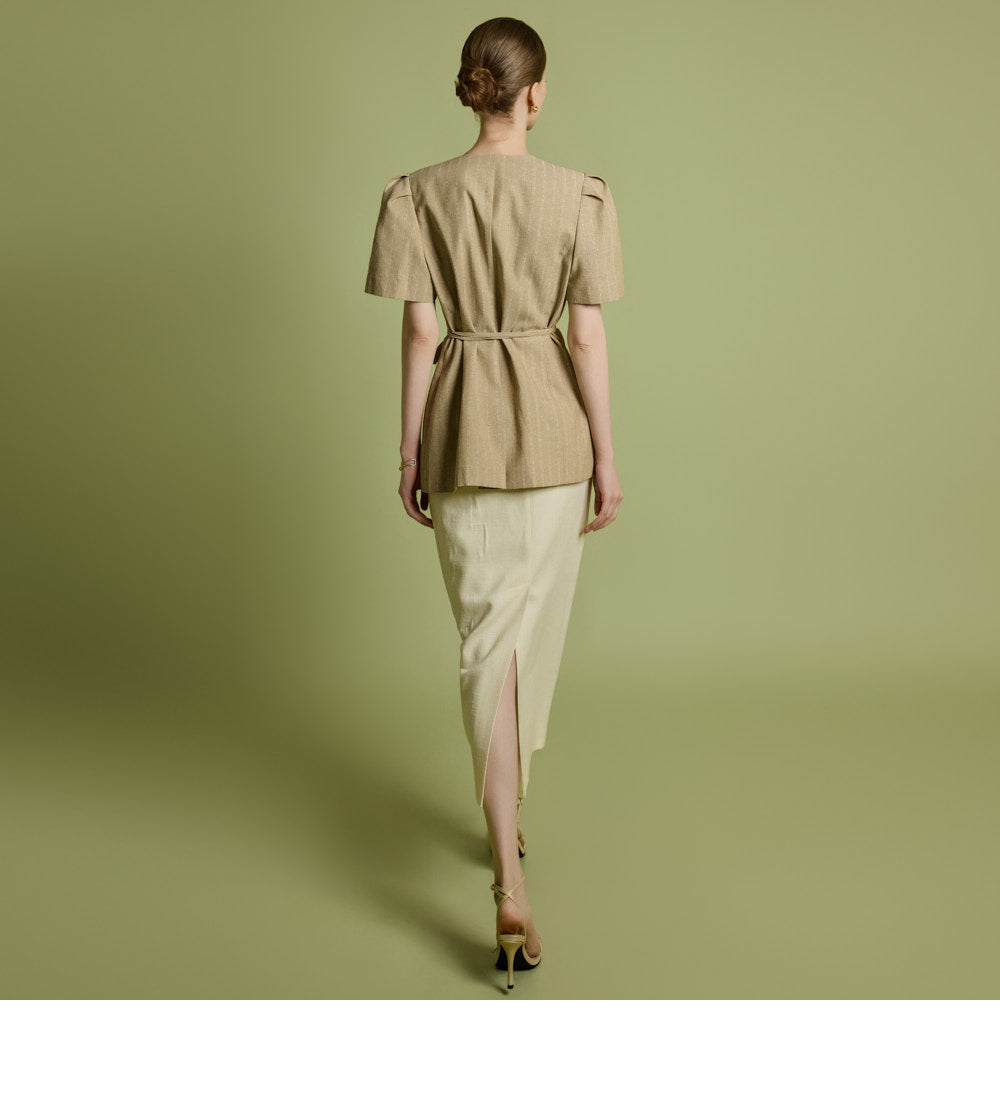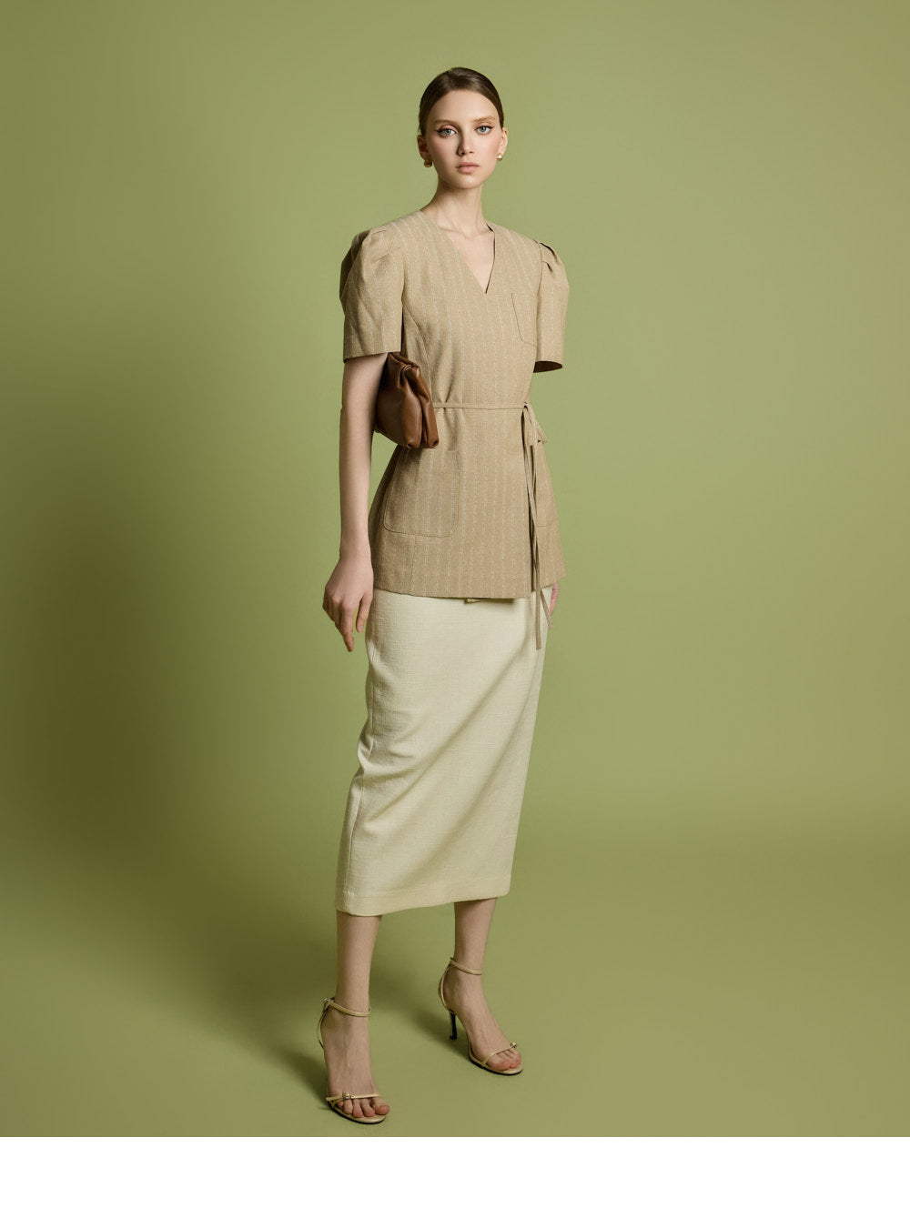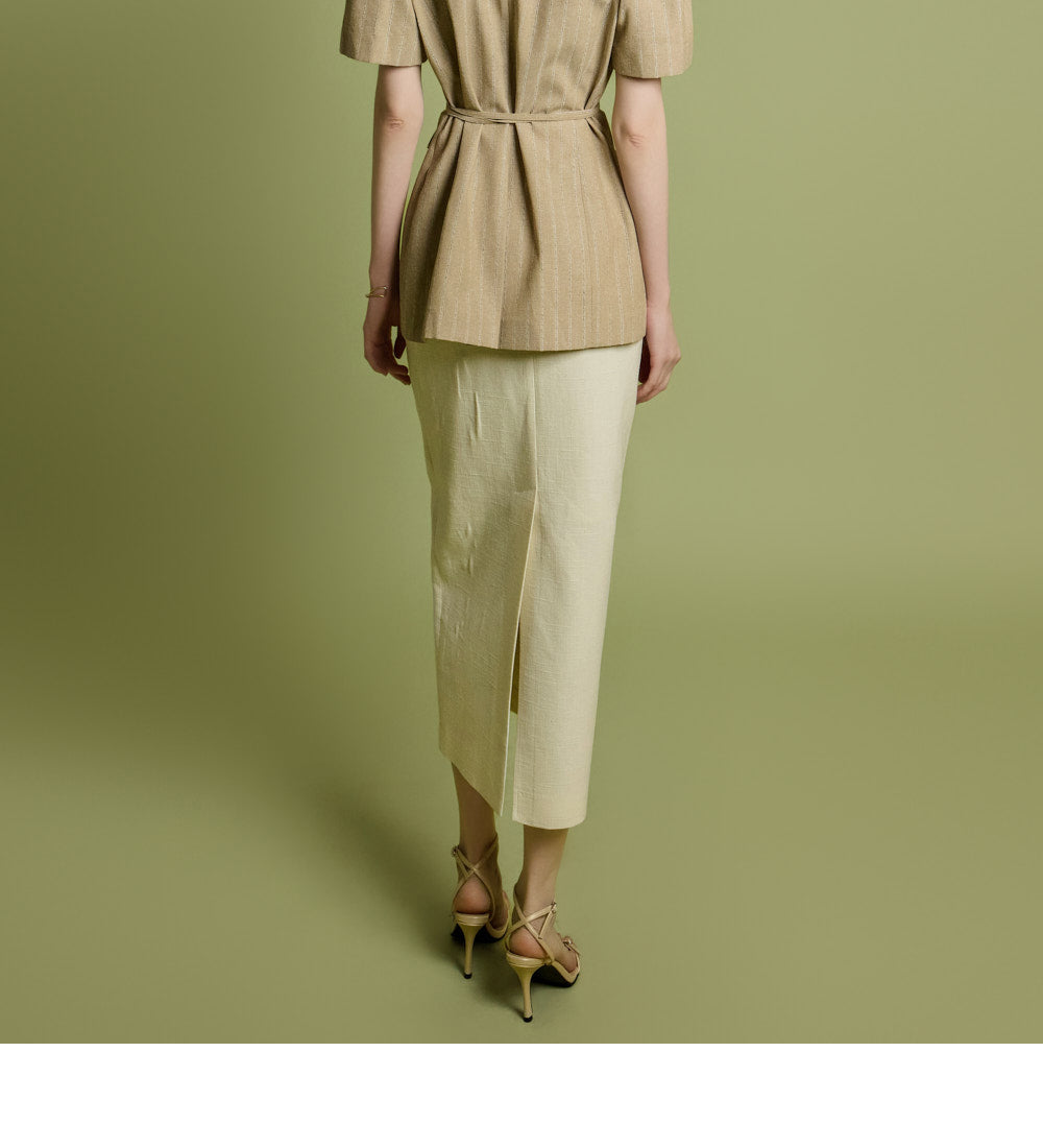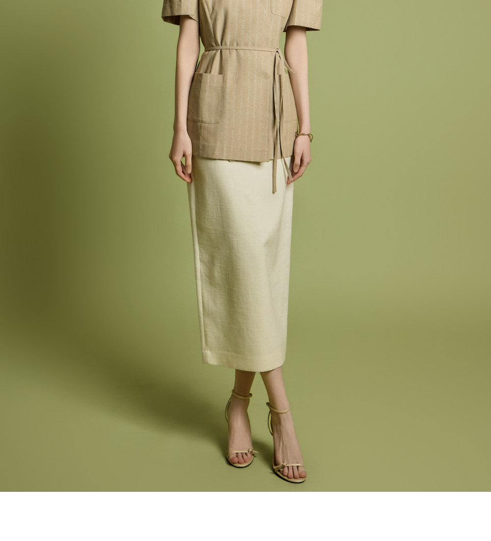 エレガントなムード漂う「リネンハイウエストスリムロングスカート」