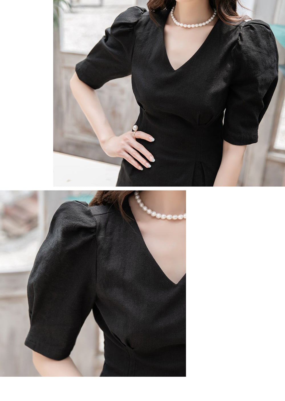 ウエストラインと袖のピンタックが