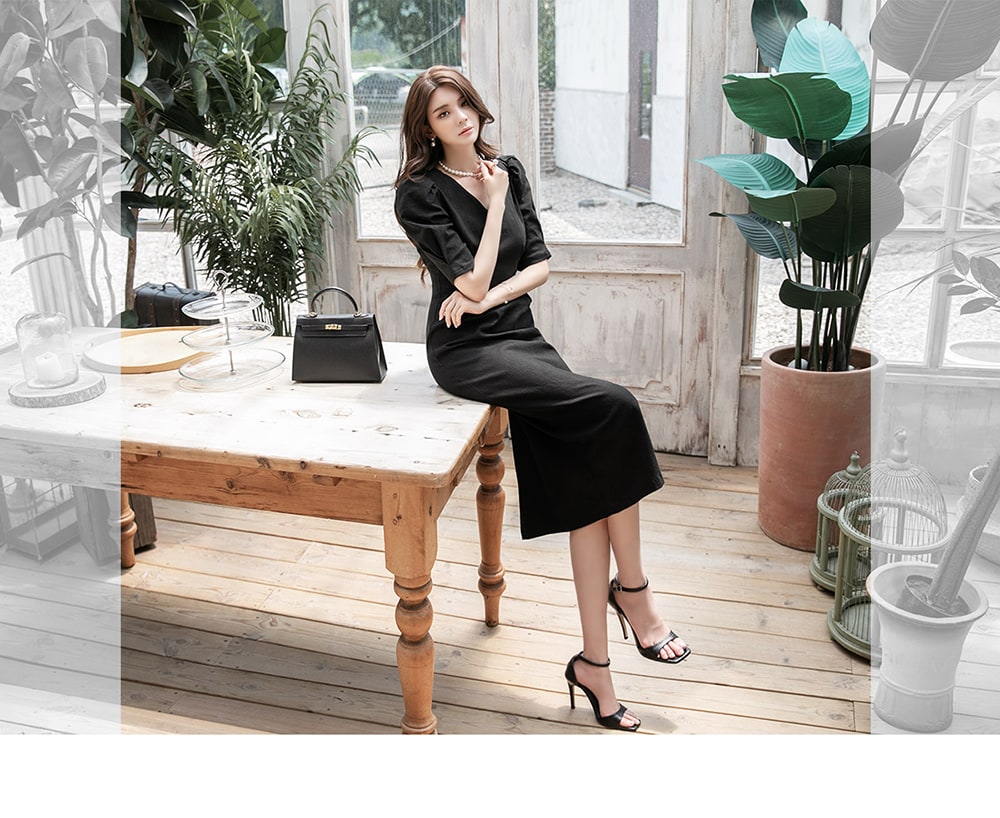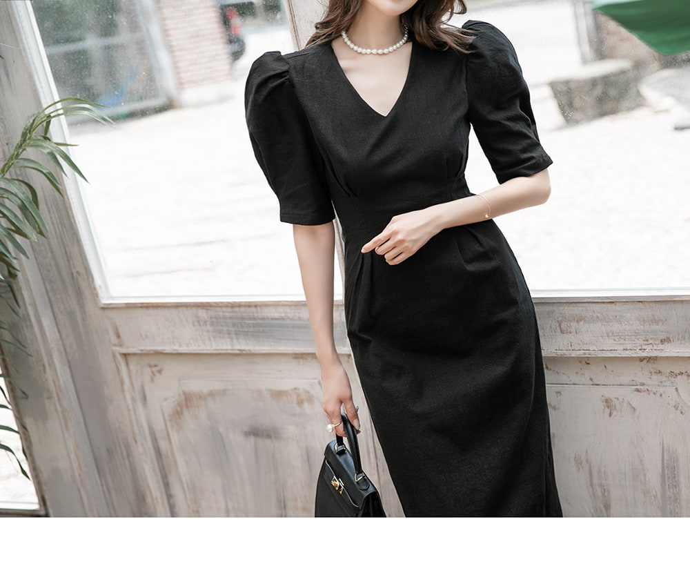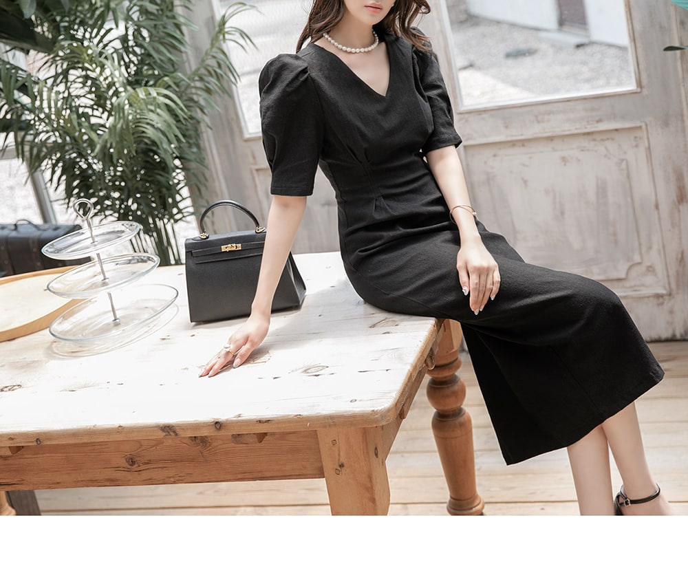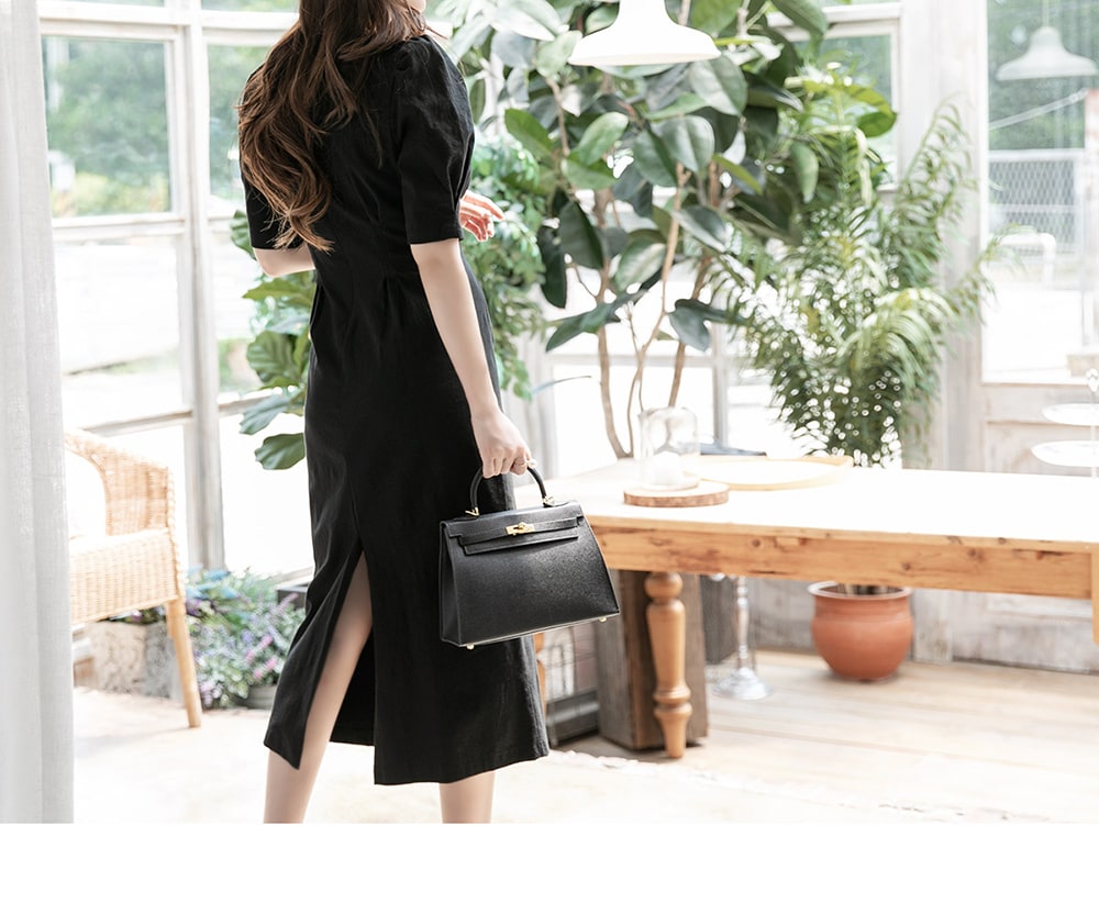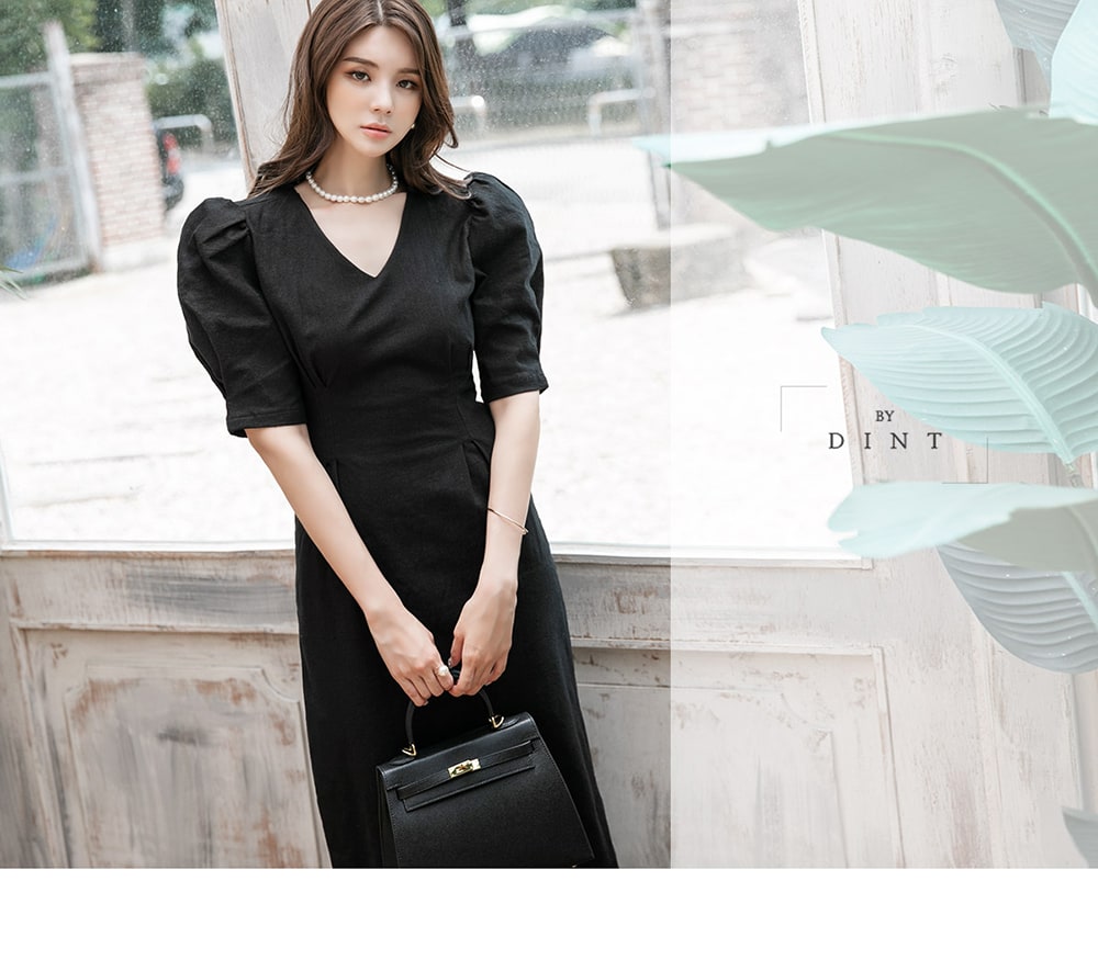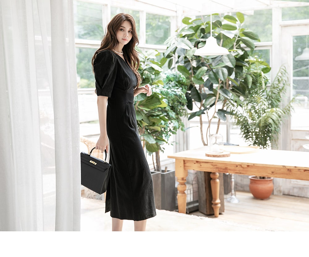 D4081 リネン スリム ミディ ドレス