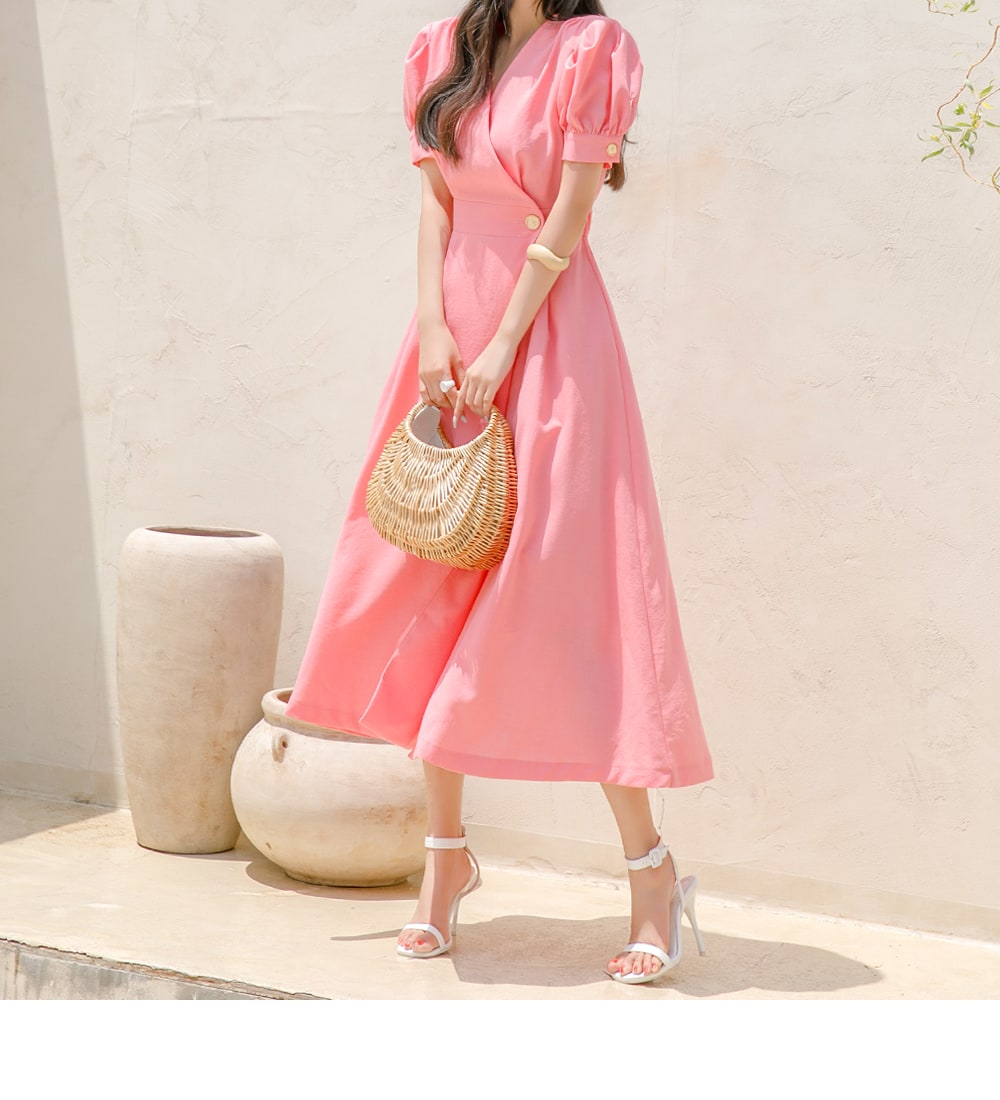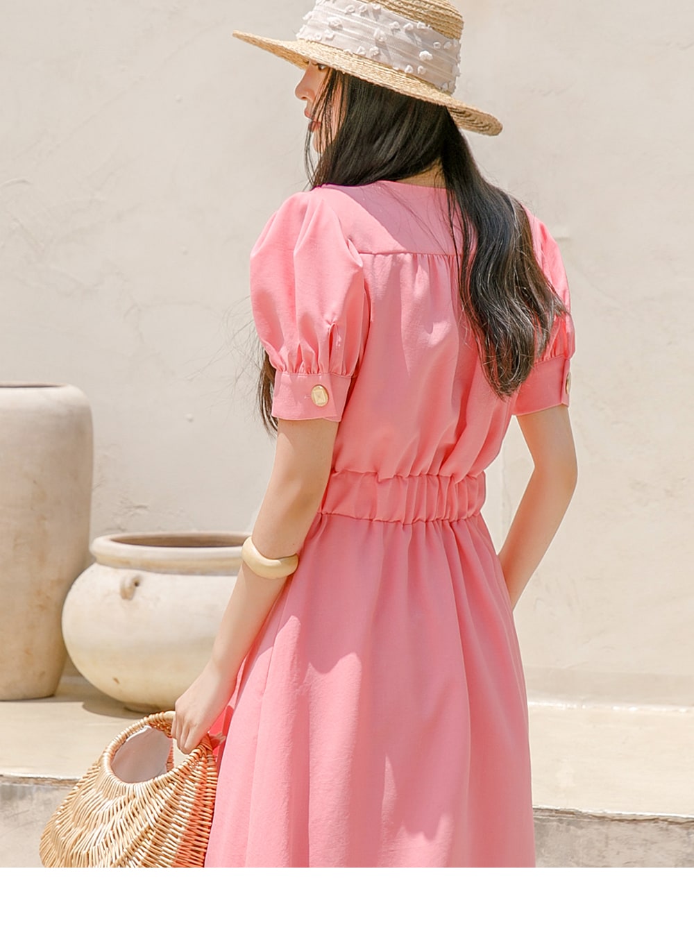 このフェミニンなミディドレスは、柔らかな手触りのポリエステルで作られています。