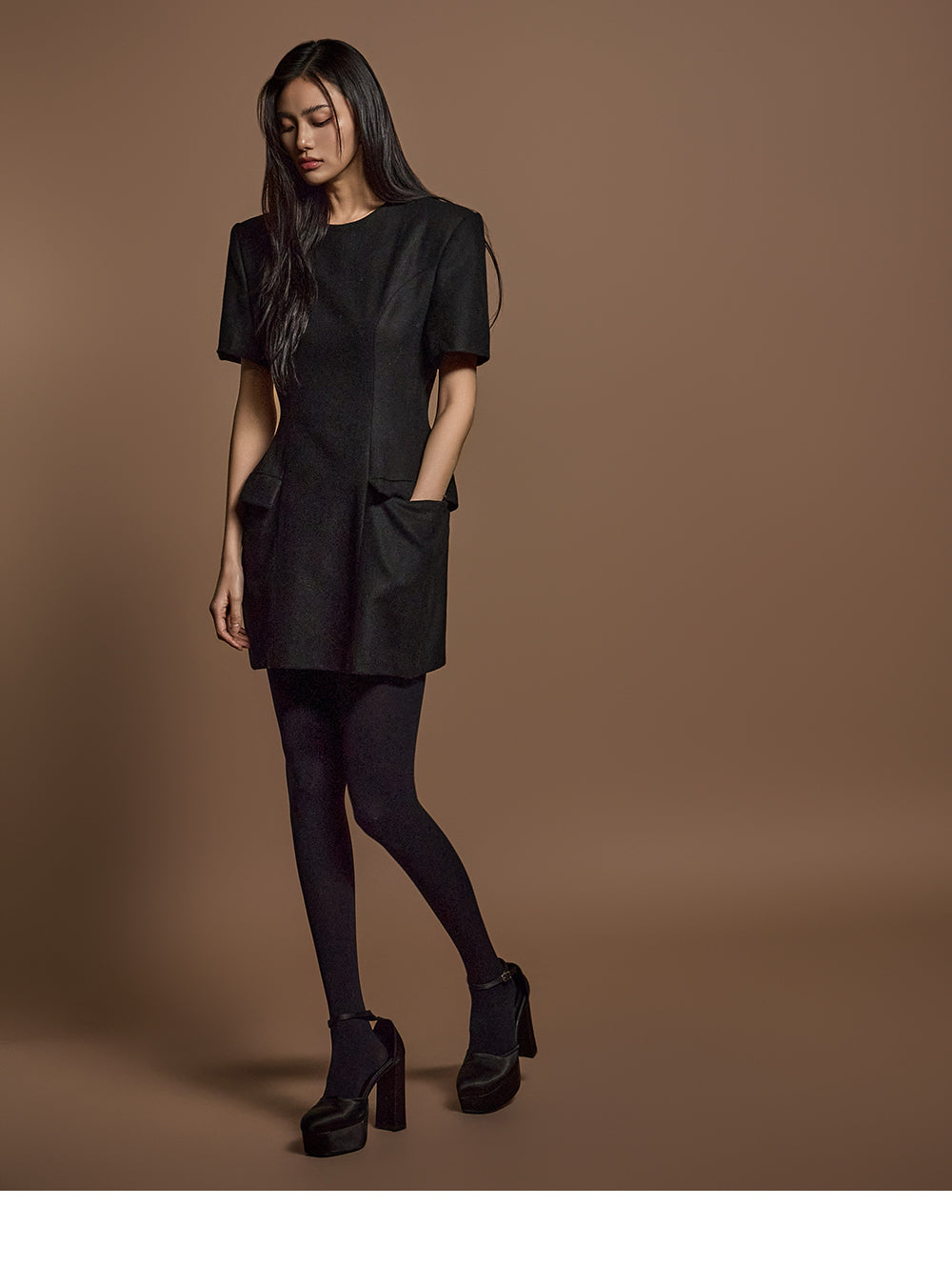 このドレスは機能性が高く、秋冬シーズンにぴったりです。