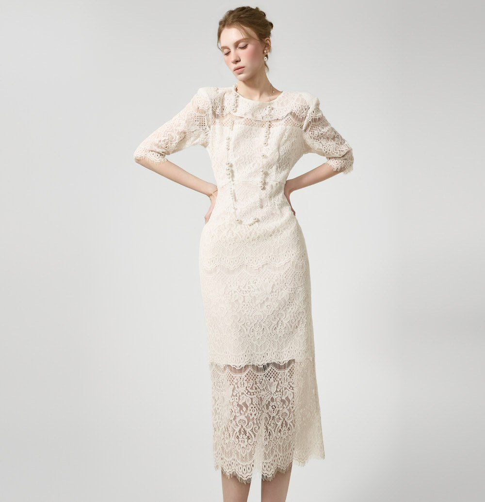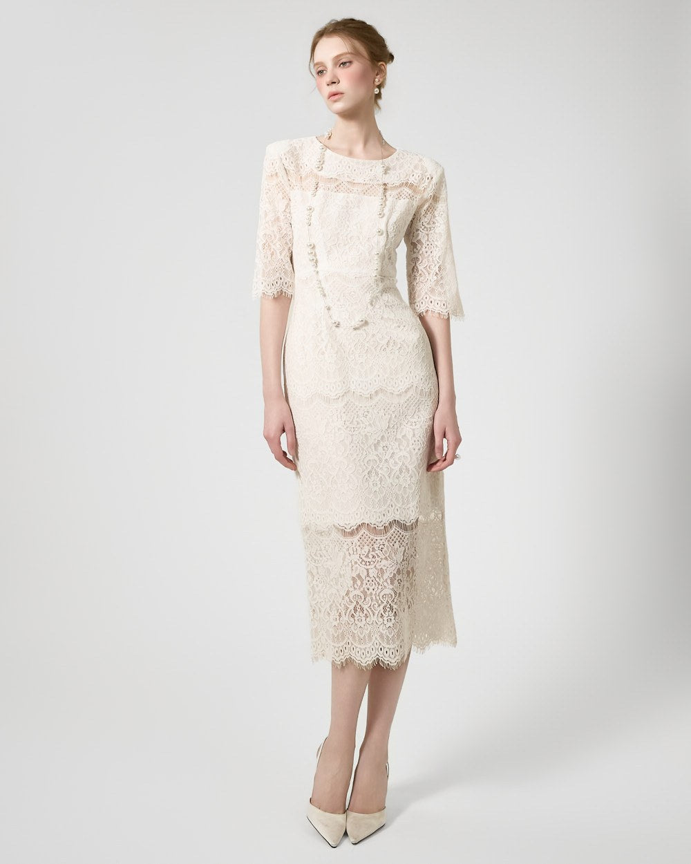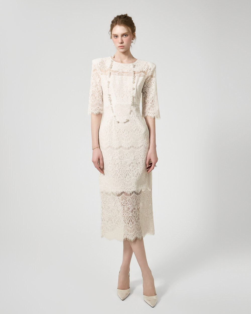 シアーレース生地がエレガントな雰囲気を醸し出し、