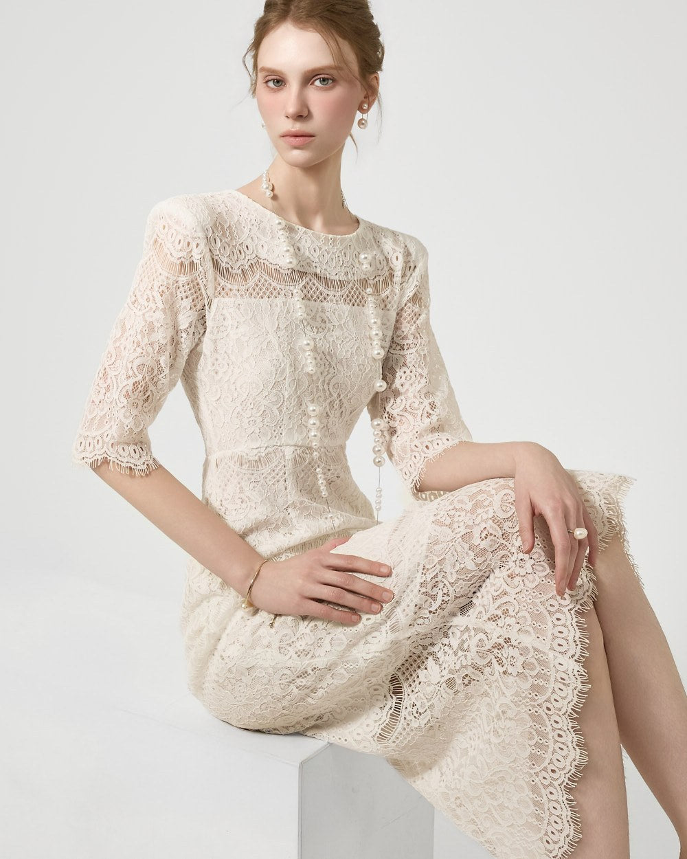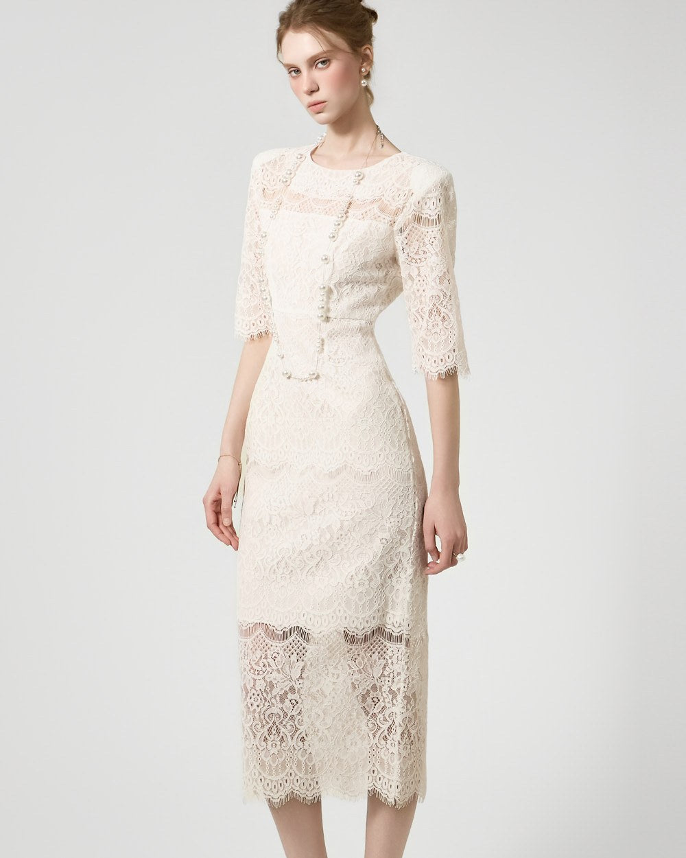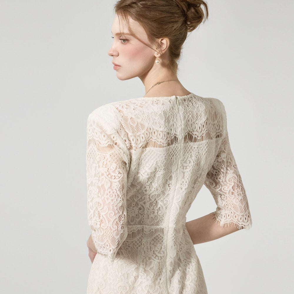 シアーレース生地がエレガントな雰囲気を醸し出し、