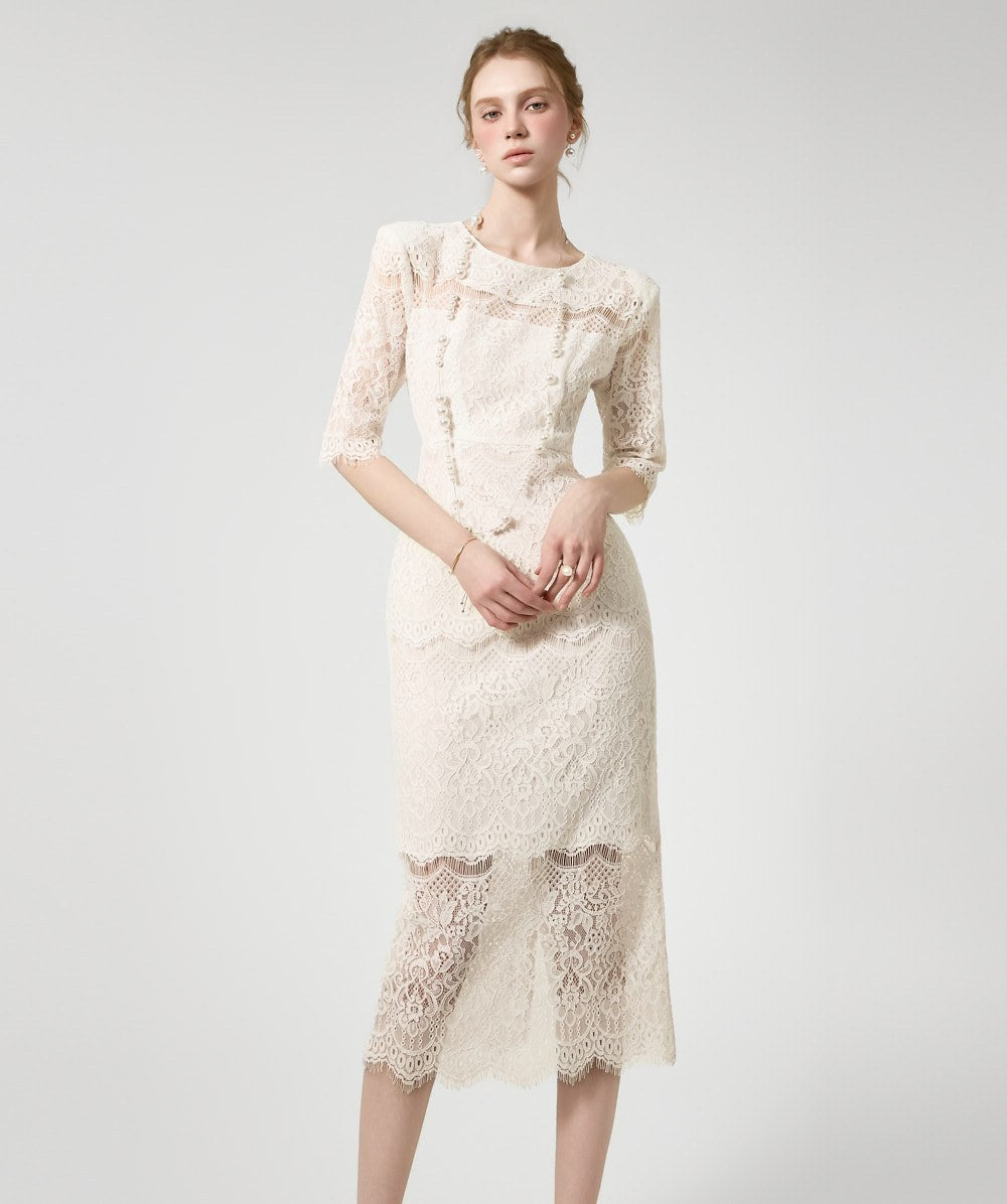 ミディ丈とスリムなウエストラインが洗練されたシルエットを完成させます。