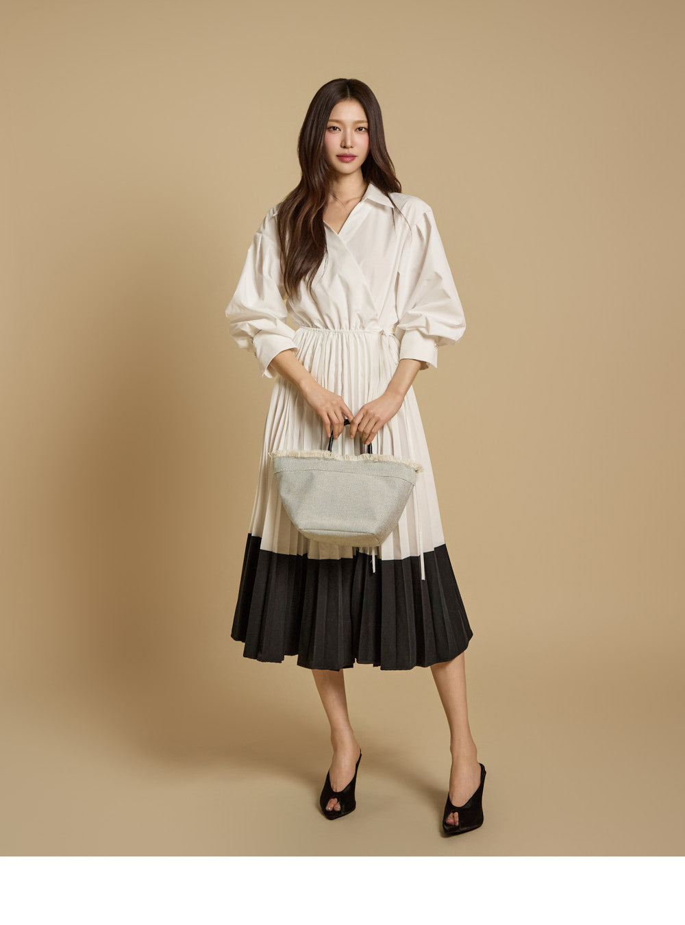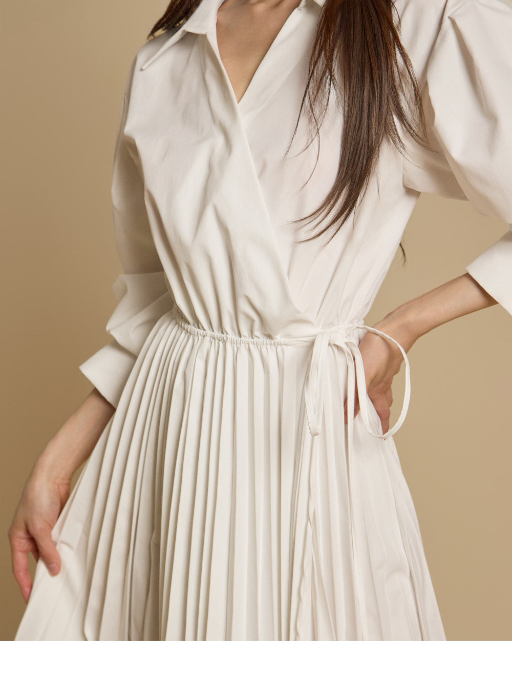 スナップ留めのフロントタイがカジュアルでフェミニンな雰囲気をプラスします。