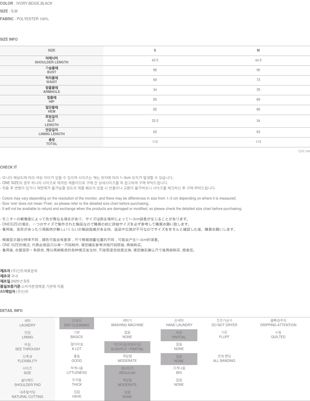 モデルの身長は174cmで、IVORYのSサイズを着用しています。