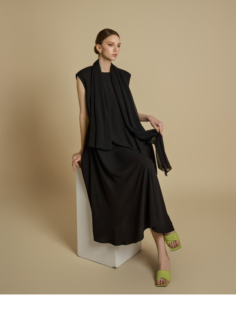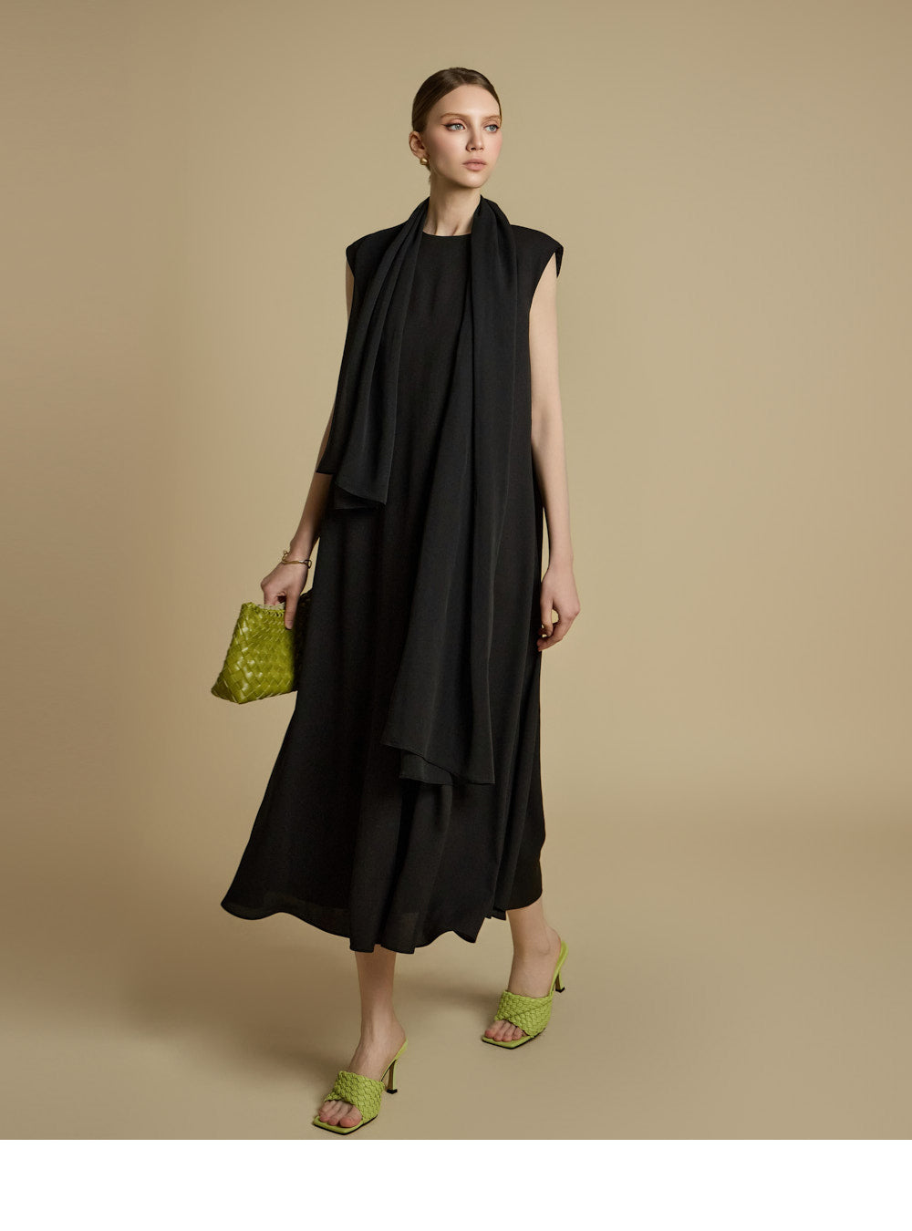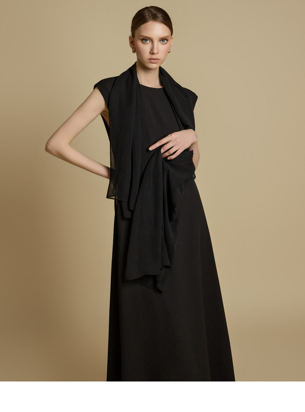 付属のショールはスタイリッシュなアクセントとして機能します。