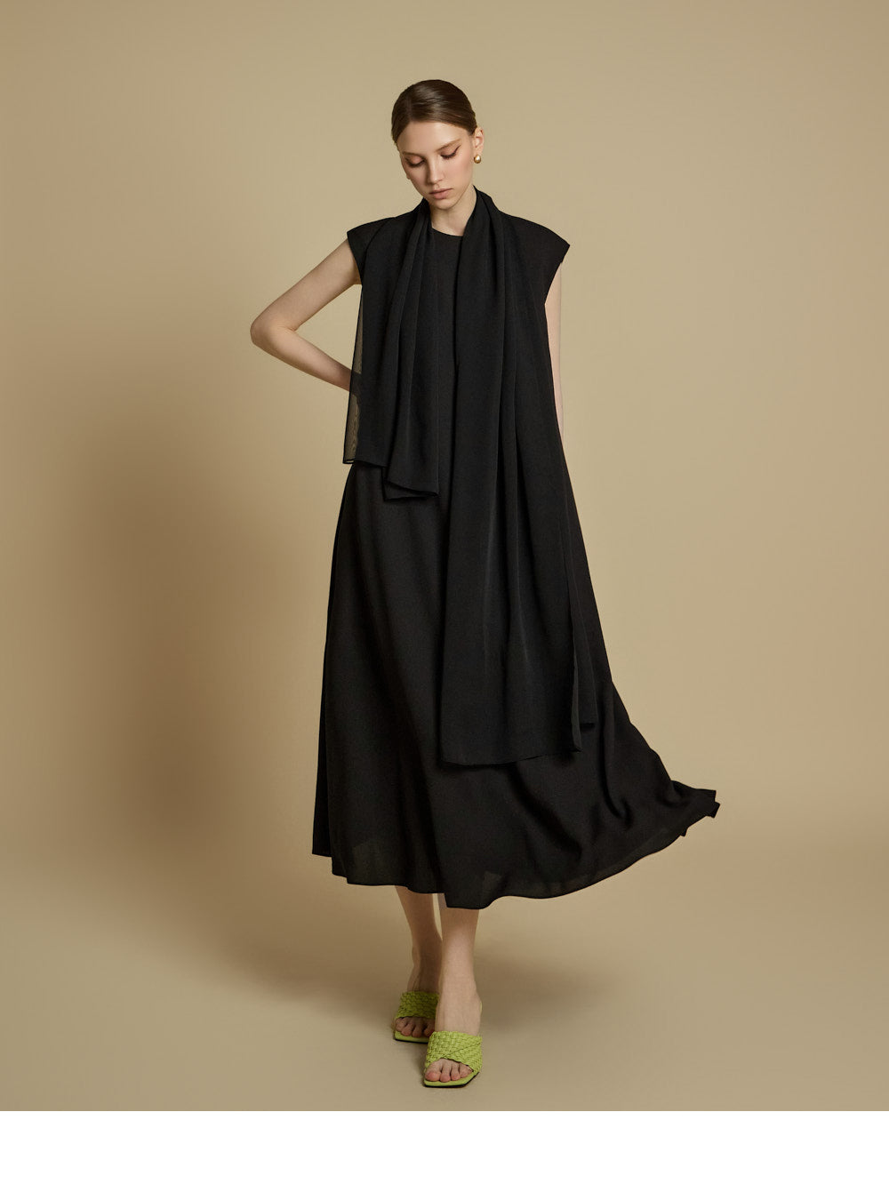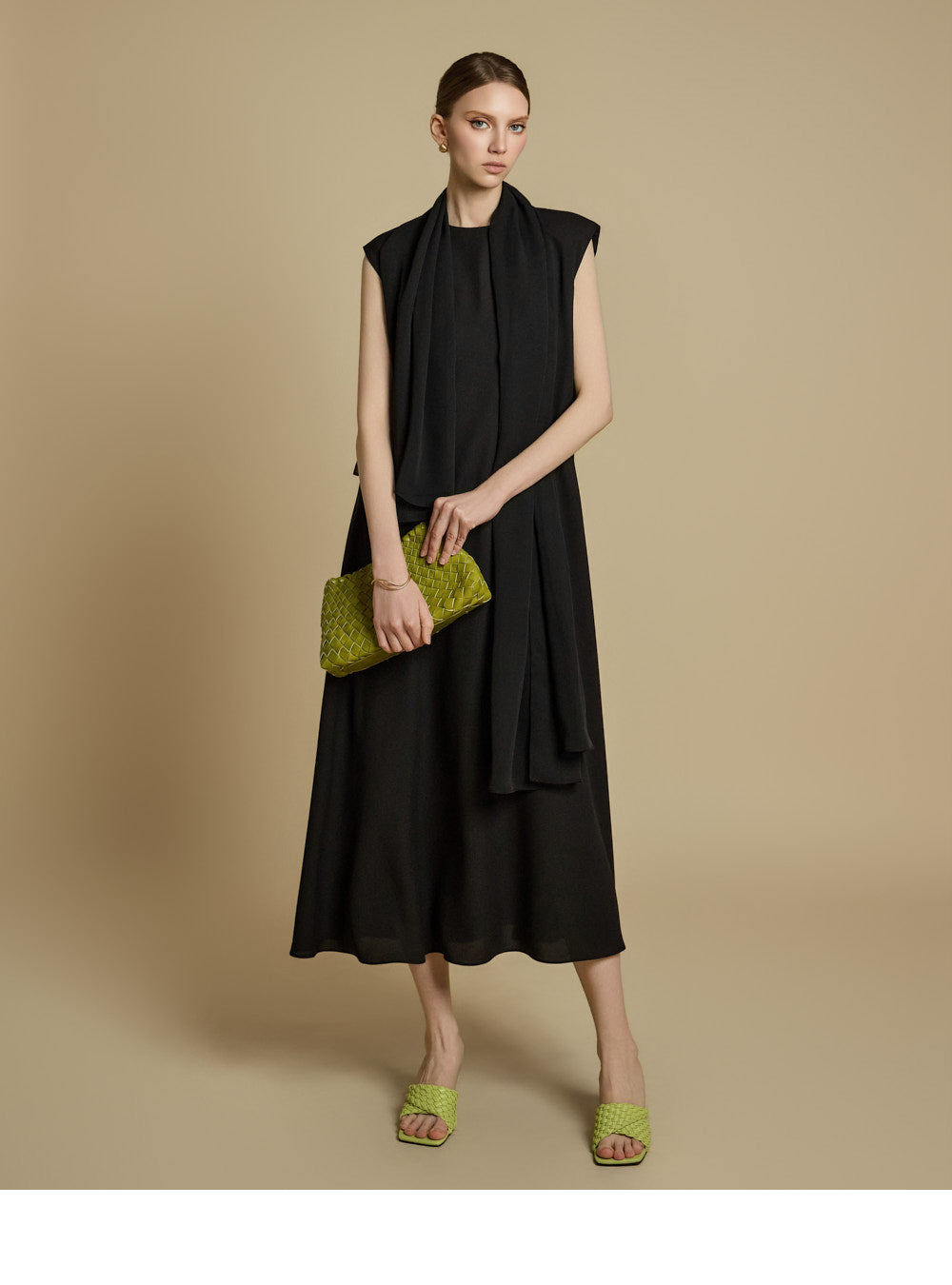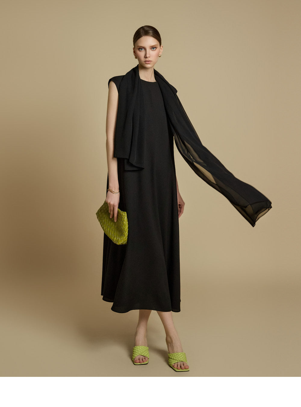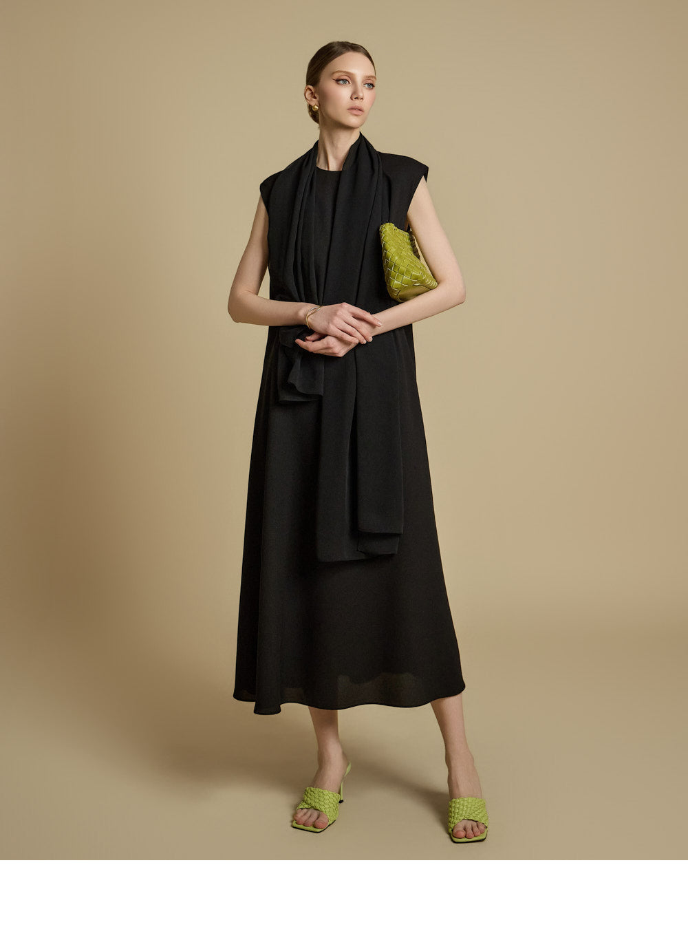 付属のショールはスタイリッシュなアクセントとして機能します。
