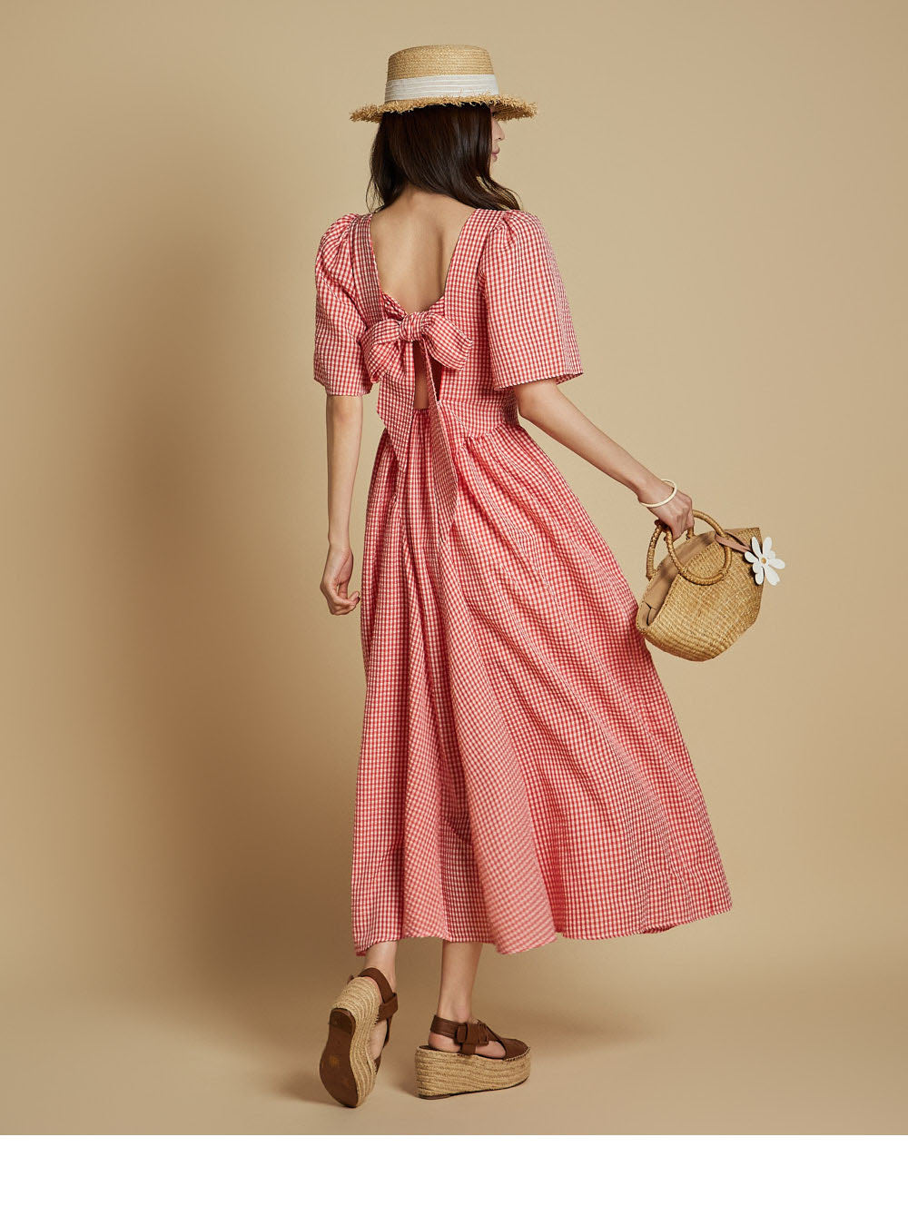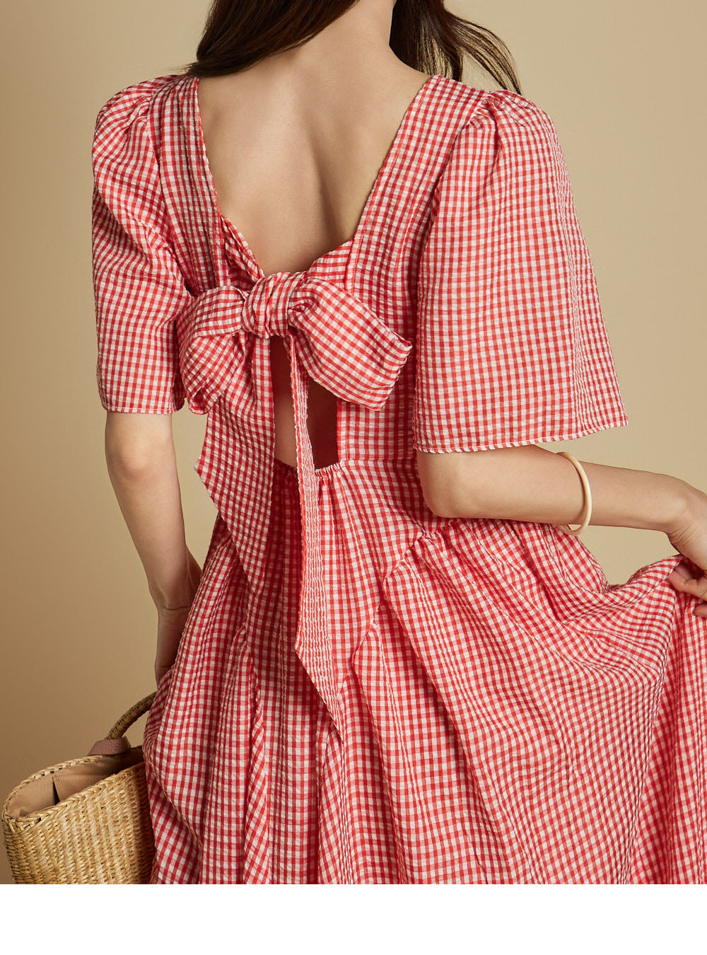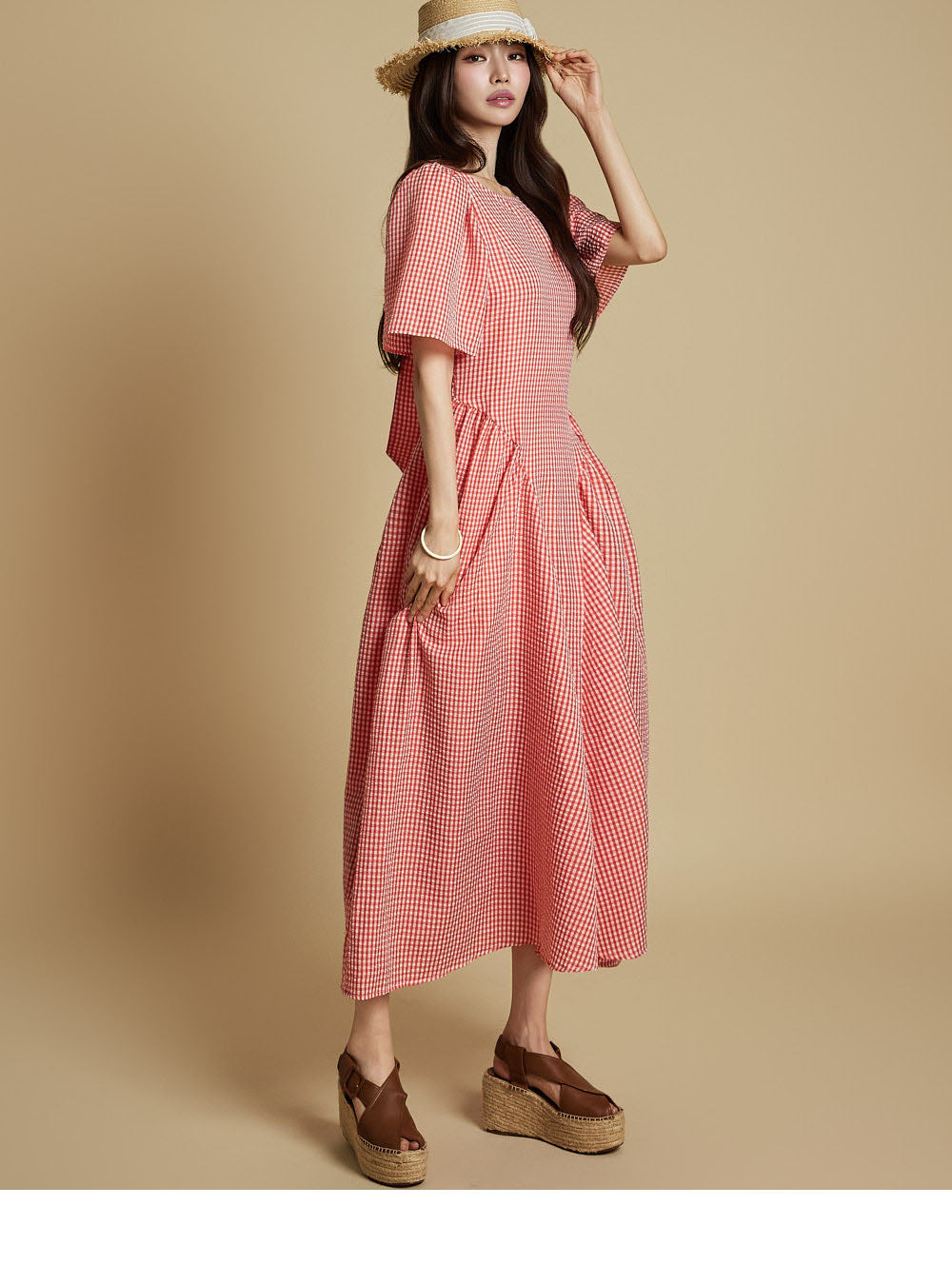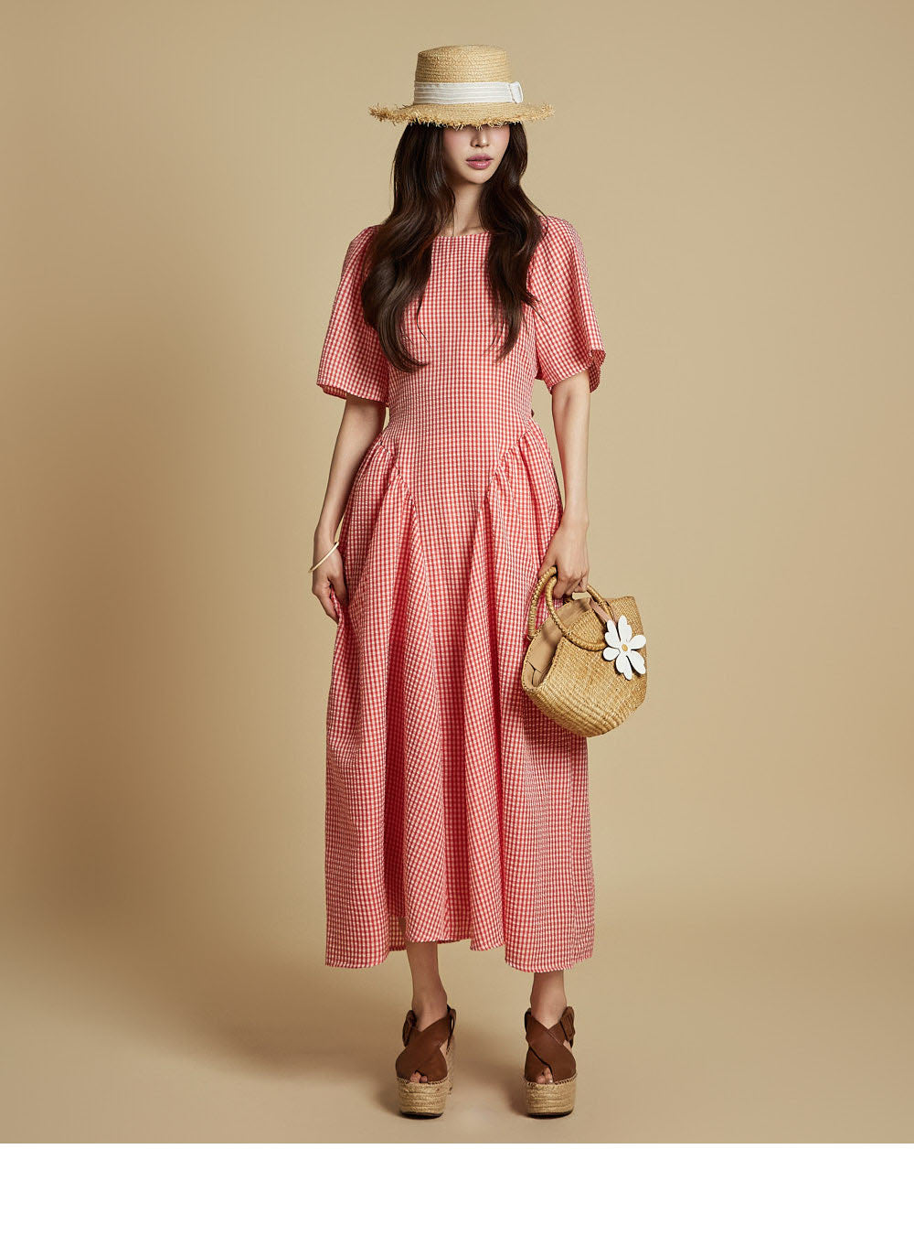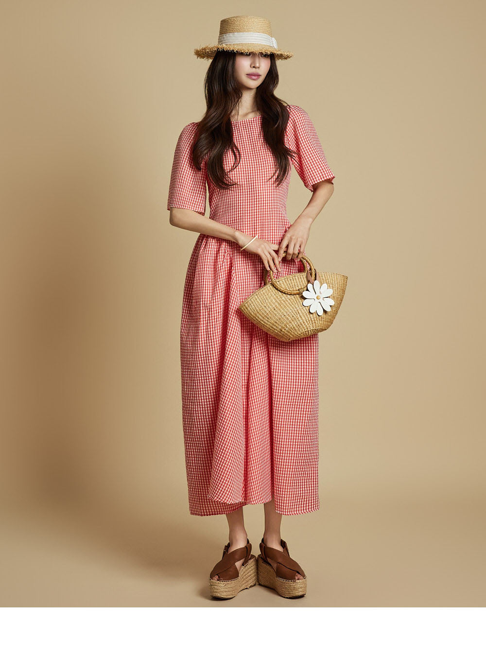 チェックのシャーリングワンピースは、活気と魅力あふれる雰囲気を演出します。