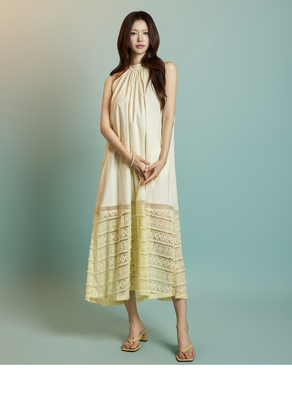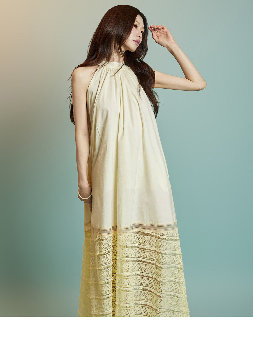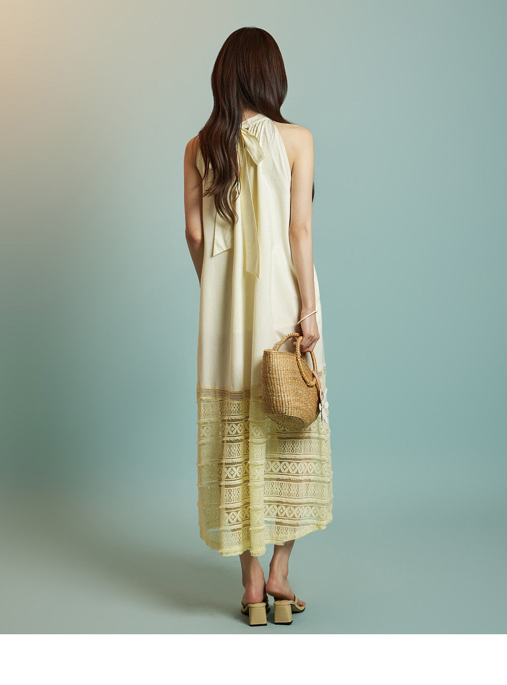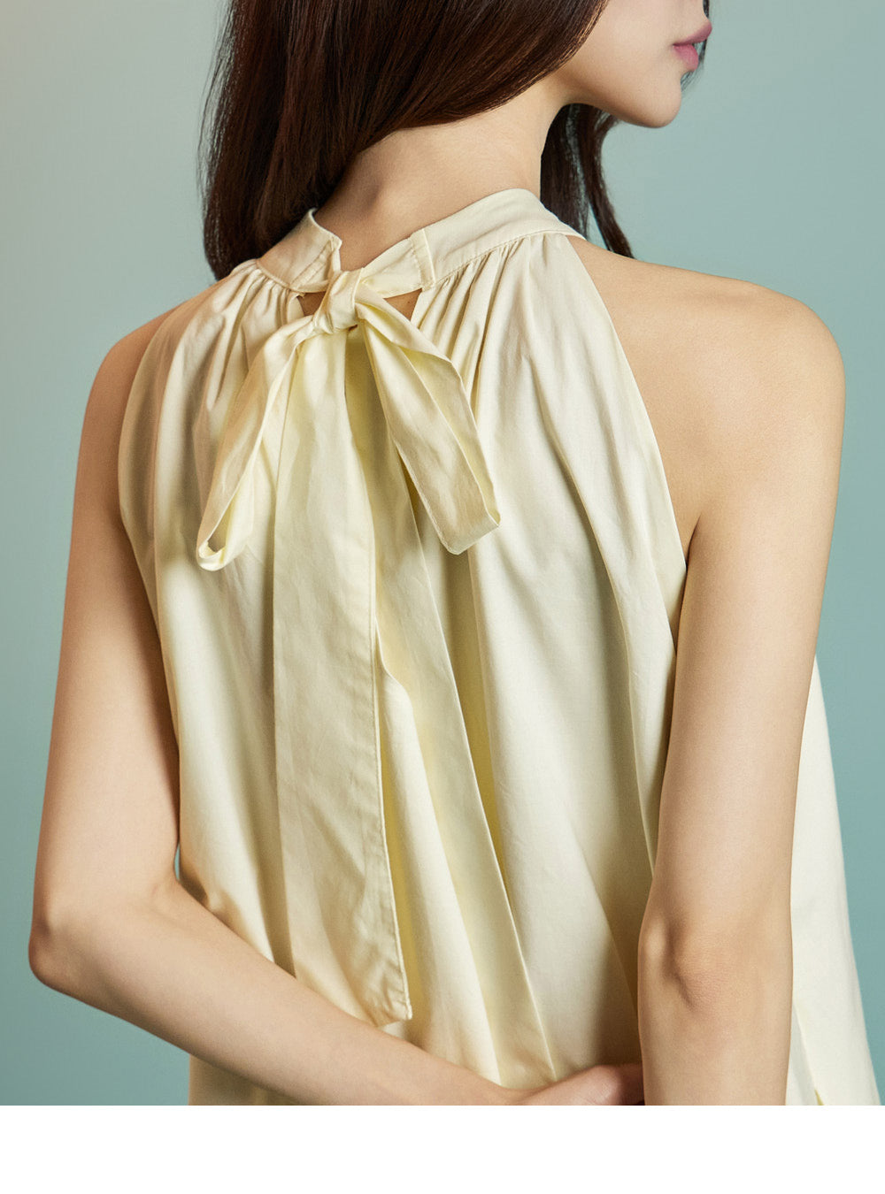 ホルターネックとオープンバックがクールでフェミニンな雰囲気を醸し出します。