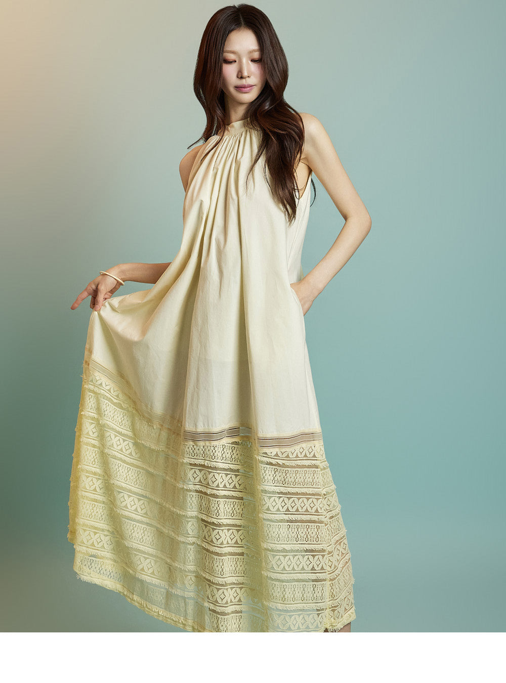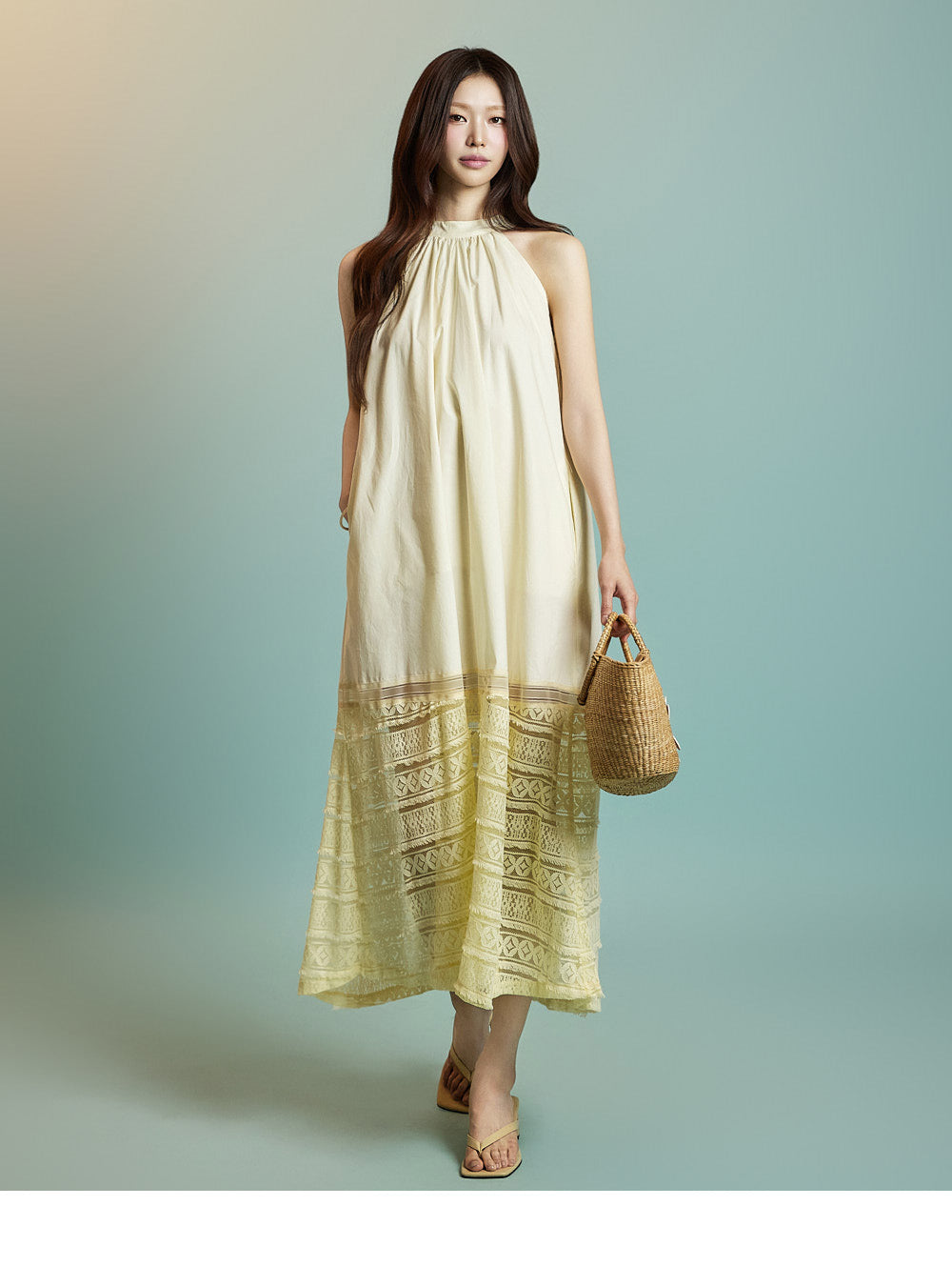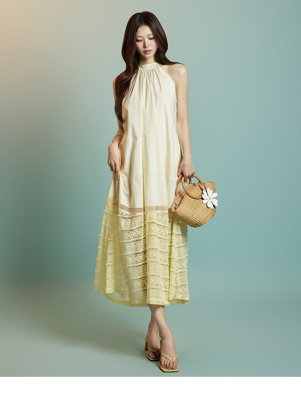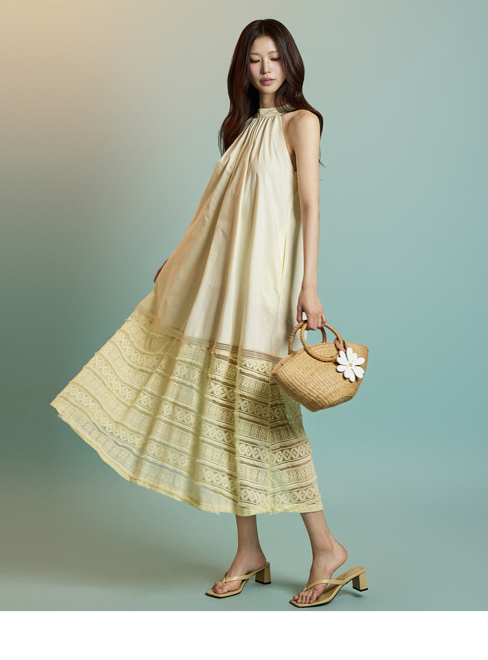 ホルターネックとオープンバックがクールでフェミニンな雰囲気を醸し出します。