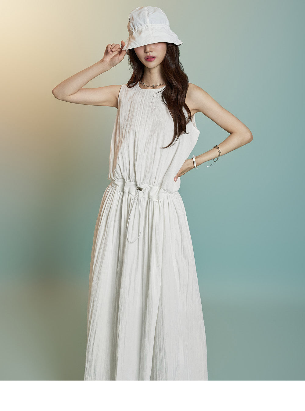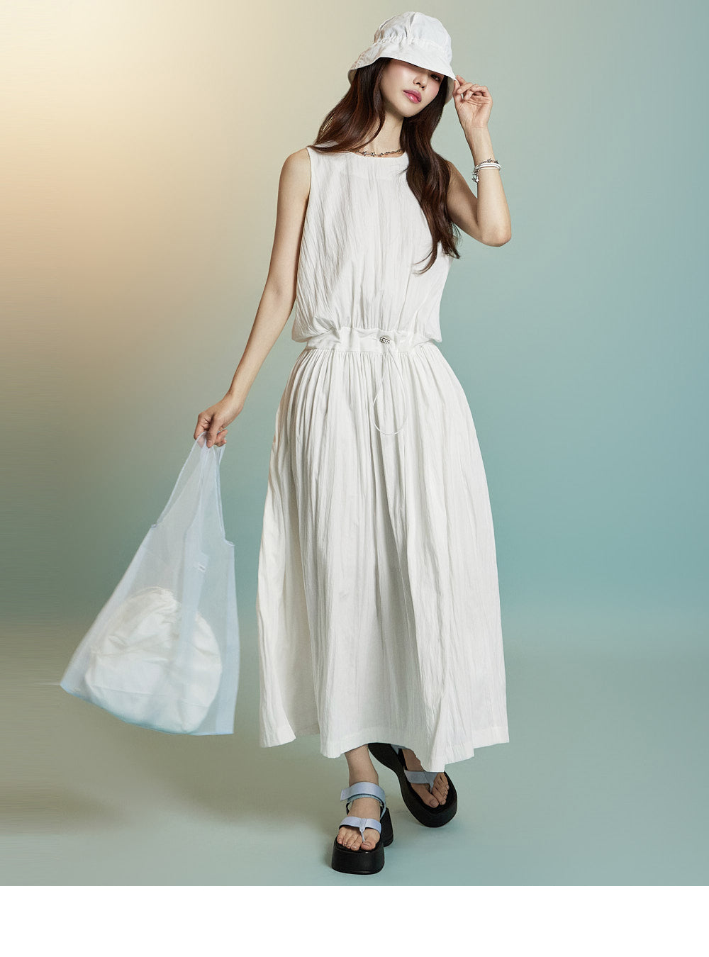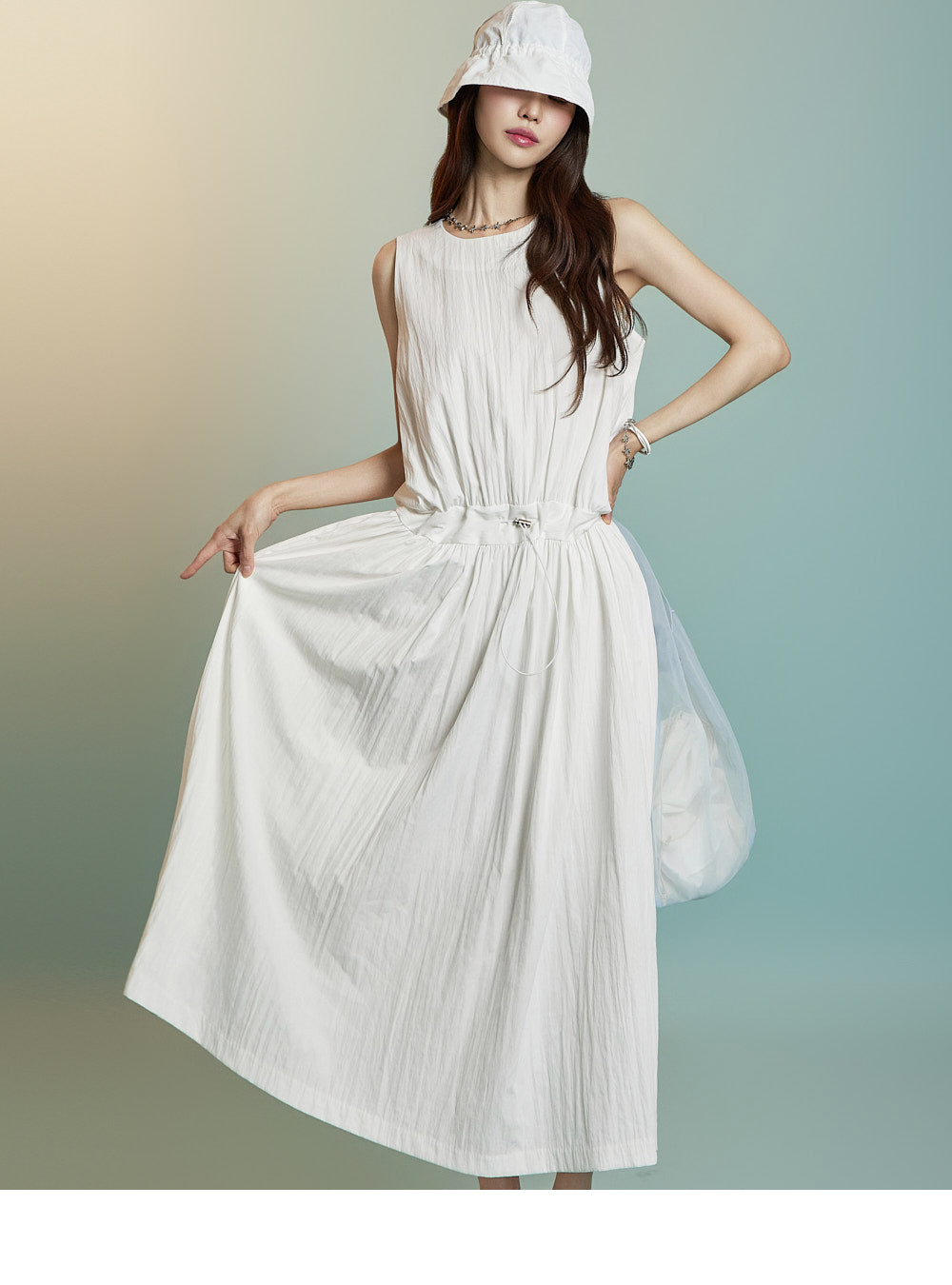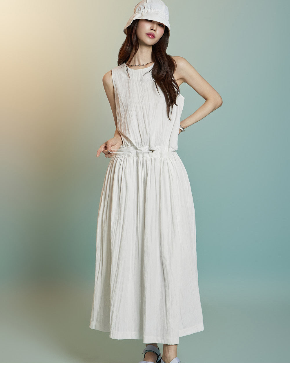 ノースリーブのロングシルエットが風通しを良くし、