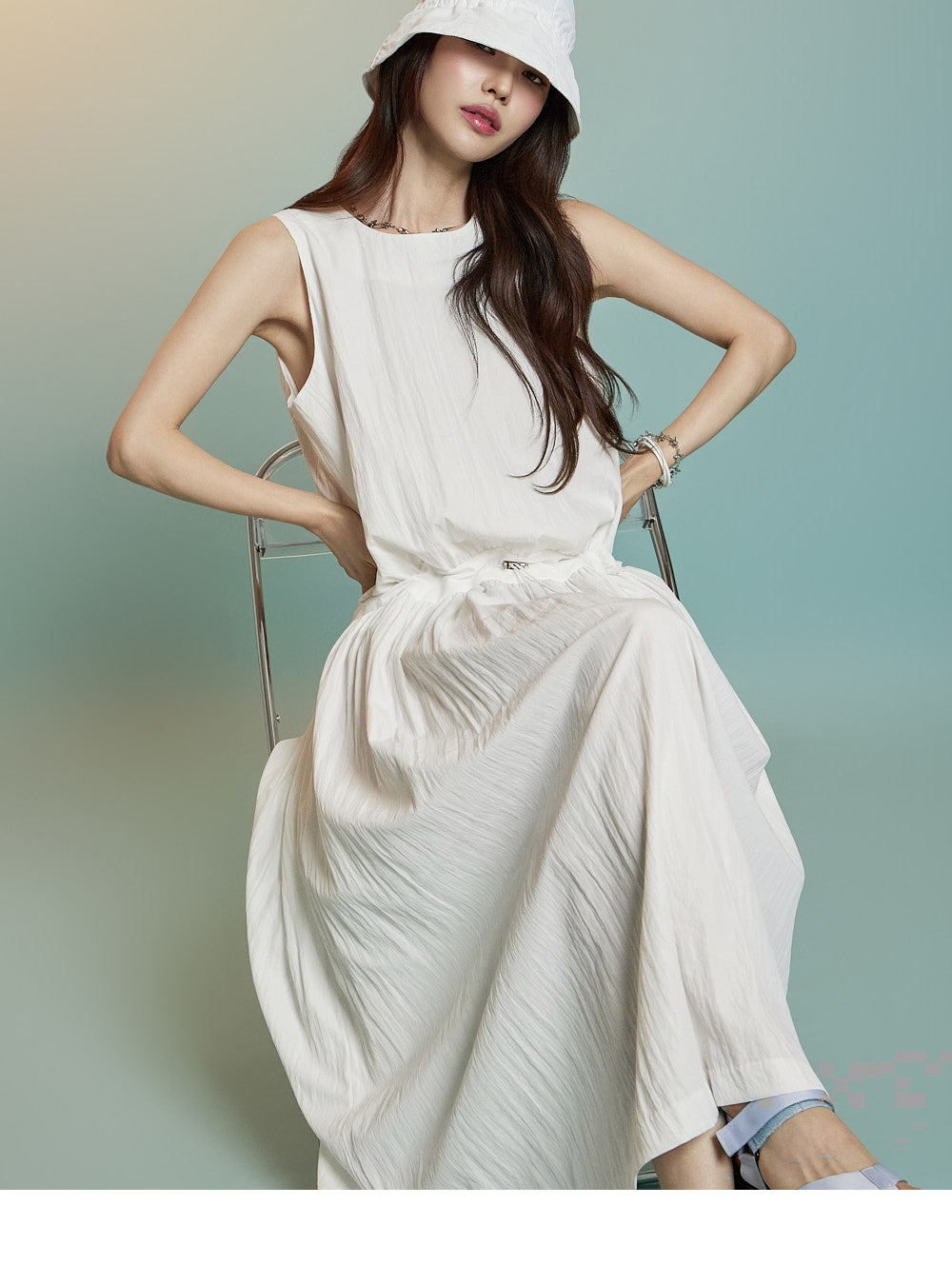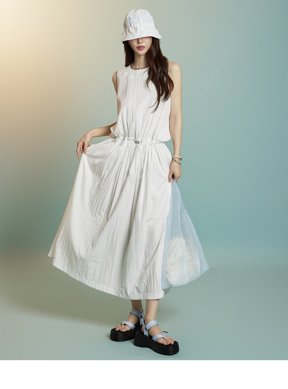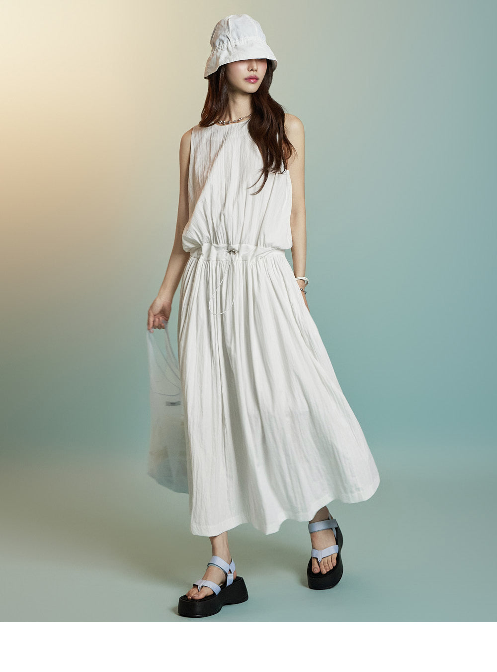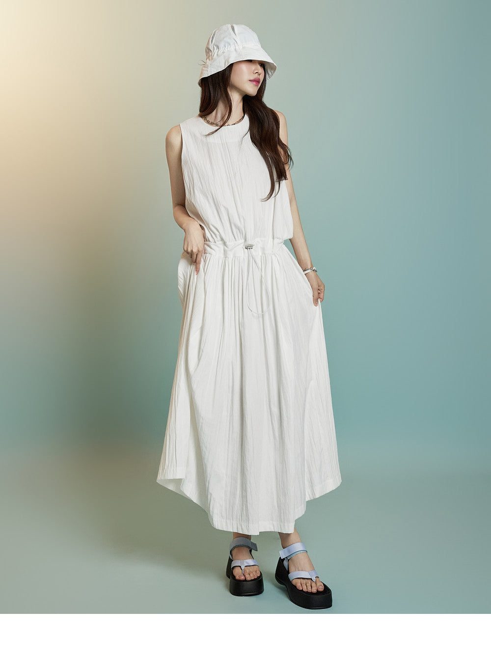 ノースリーブのロングシルエットが風通しを良くし、
