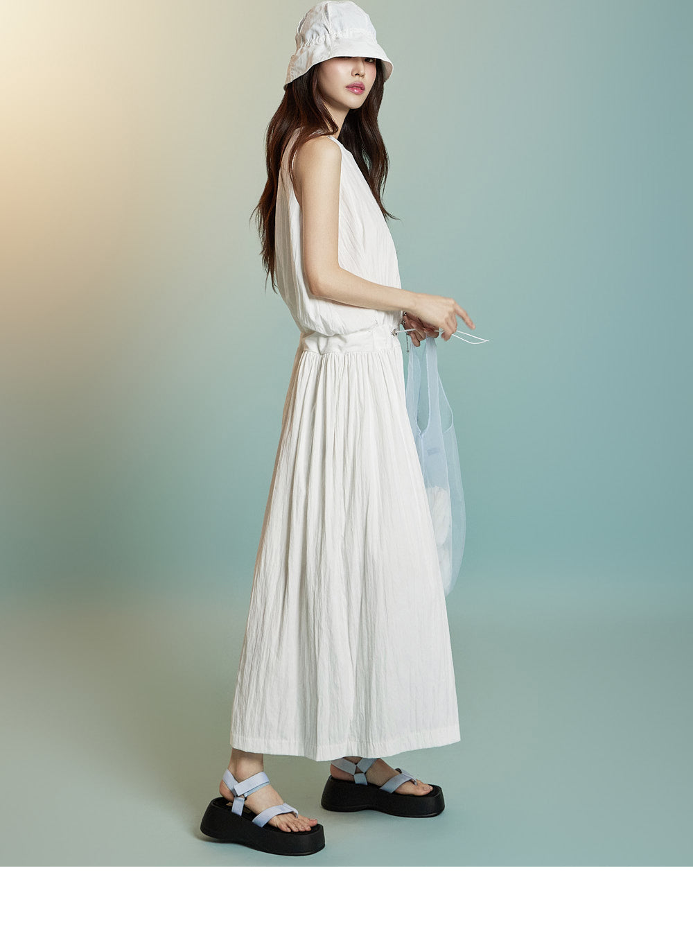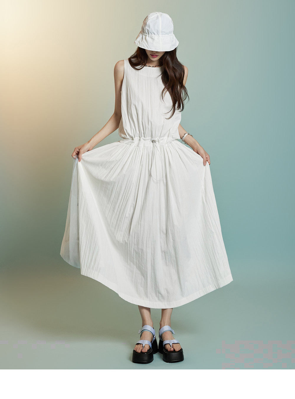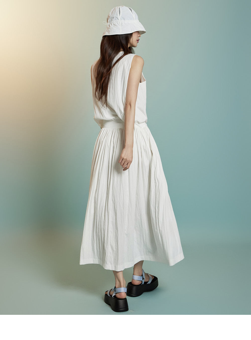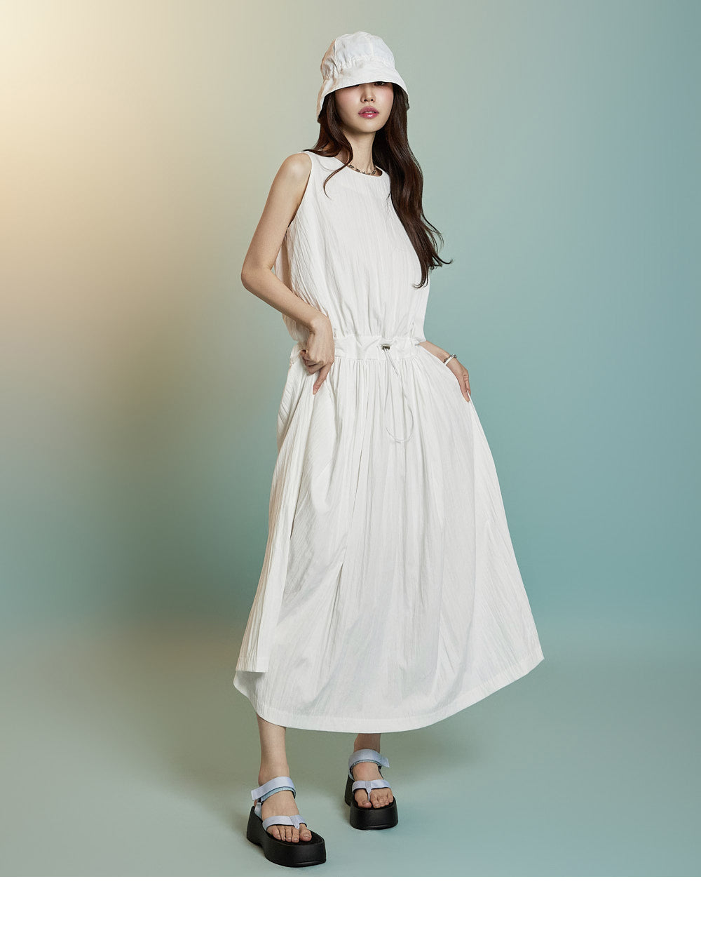 ノースリーブのロングシルエットが風通しを良くし、